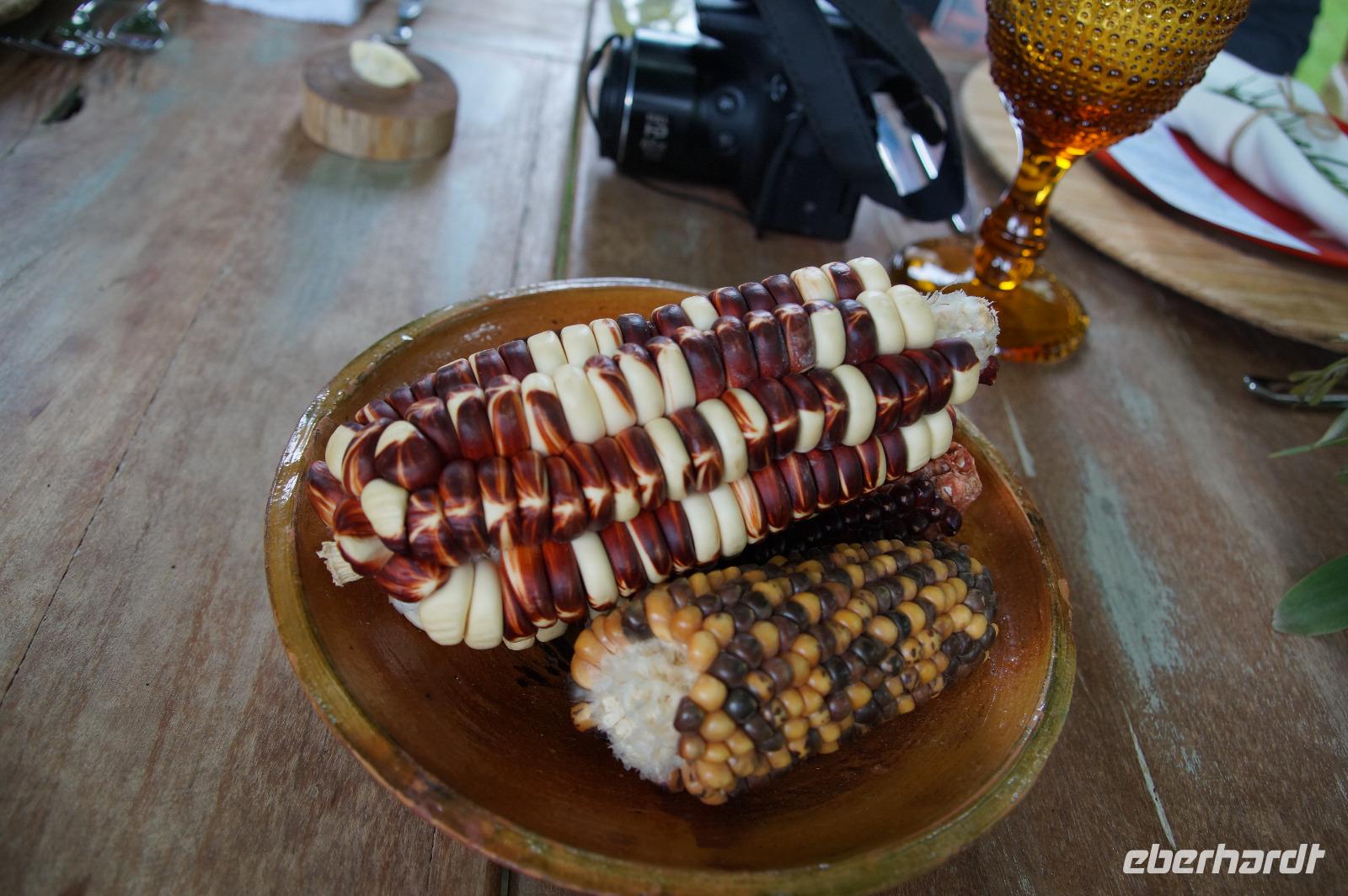 Die Hacienda Sarapampa ist unser nächstes Ziel, sie liegt bei Pisaq, von der Stadt durch den Urubamba getrennt. Hier haben wir eine Einladung zu einem Mittagessen, dass sich rund um den Mais dreht. Denn Mais ist das Hauptprodukt der Hacienda. Und wenn man Sarapampa auseinander nimmt, so ist das nichts weiter als das Quechua-Wort für Maisebene (sara, ‚Mais‘, pampa, ‚Ebene‘).