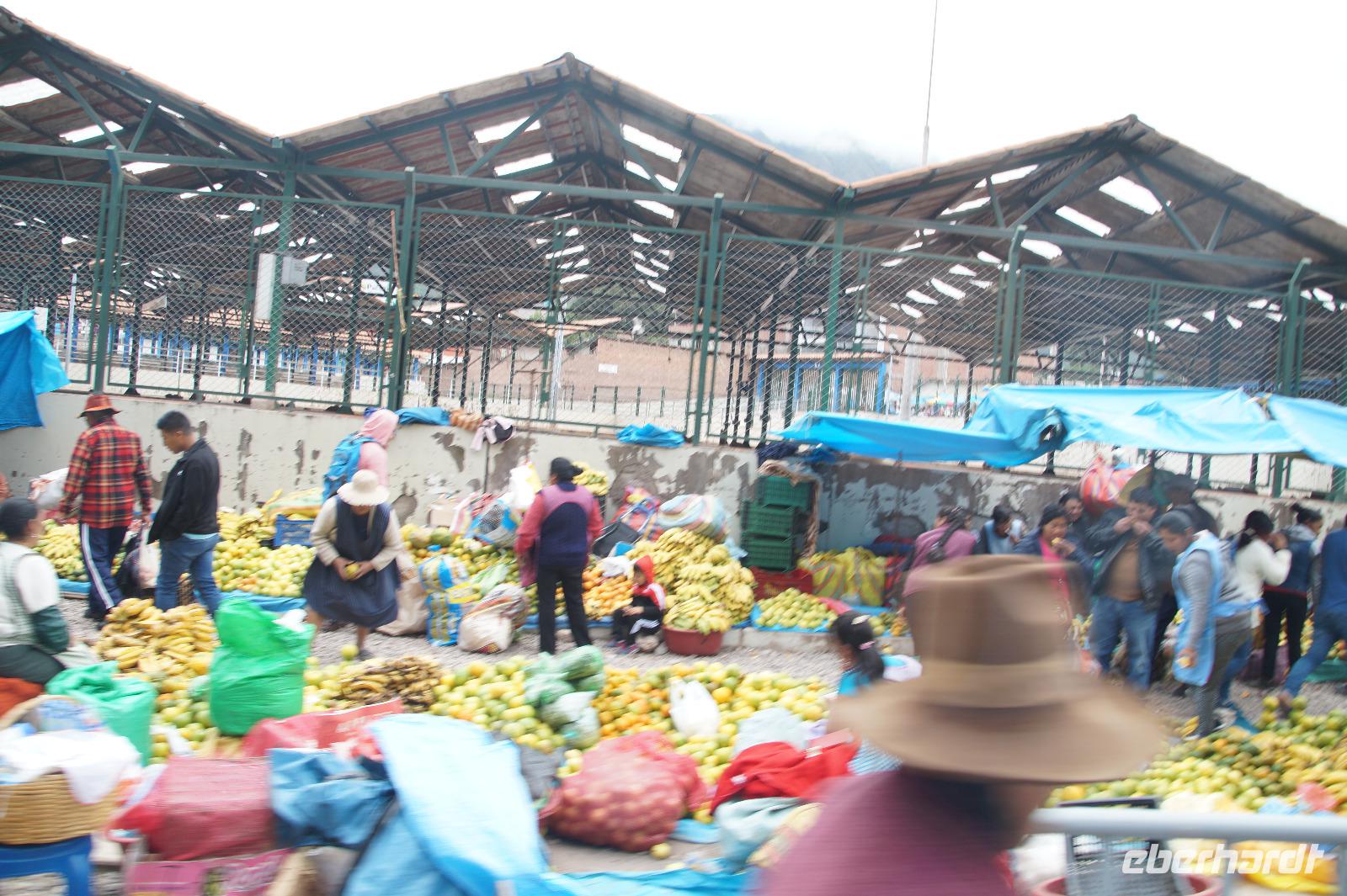 Der folgende Morgen führt uns mit reduziertem Gepäck nach Ollantaytambo. Der Ortsname Ollantaytambo ist nicht abschließend geklärt, man weiß soviel, dass der hintere Part -tambo (vom Quechua -tampu) so etwas wie Vorratslager heißt. Ollantay wird auf ein Aymara-Wort zurückgeführt, eine Sprache, die bereits von einer Vorinkakultur aus dem Heiligen Tal verdrängt wurde, und der wir am Titicacasee noch begegnen werden. Ollantay soll Aussichtsposten bedeuten. Der Hybrid bedeutete also gewissermaßen "Aussichtspostenlager". Natürlich, so wie für einen Deutsch- oder Spanischsprecher Ollantaytambo nur ein Ortsname ohne erkennbaren Bedeutungsinhalt ist, so bedeutete der vordere Teil den Quechua ungefähr so viel wie "Lager 'Ollantay'". Obwohl Ollantaytambo ebenfalls über eine beeindruckende Anlage inkaischer (und wohl auch bereits früherer) Herkunft verfügt, ist es für die meisten Passanten - so auch uns - in erster Linie eine Station auf dem Weg nach Machu Picchu. Denn nach Machu Picchu kommt man auf zwei Wegen: Mehrtägiger Fußmarsch mit vereinzelten Gipfelstürmereien über den Inka-Trail (auch dies ist immer mal wieder im Reiseprogramm von Eberhardt Travel enthalten) oder - die meisten Touristen erreichen die lange unentdeckte Stadt so - per Zug.
