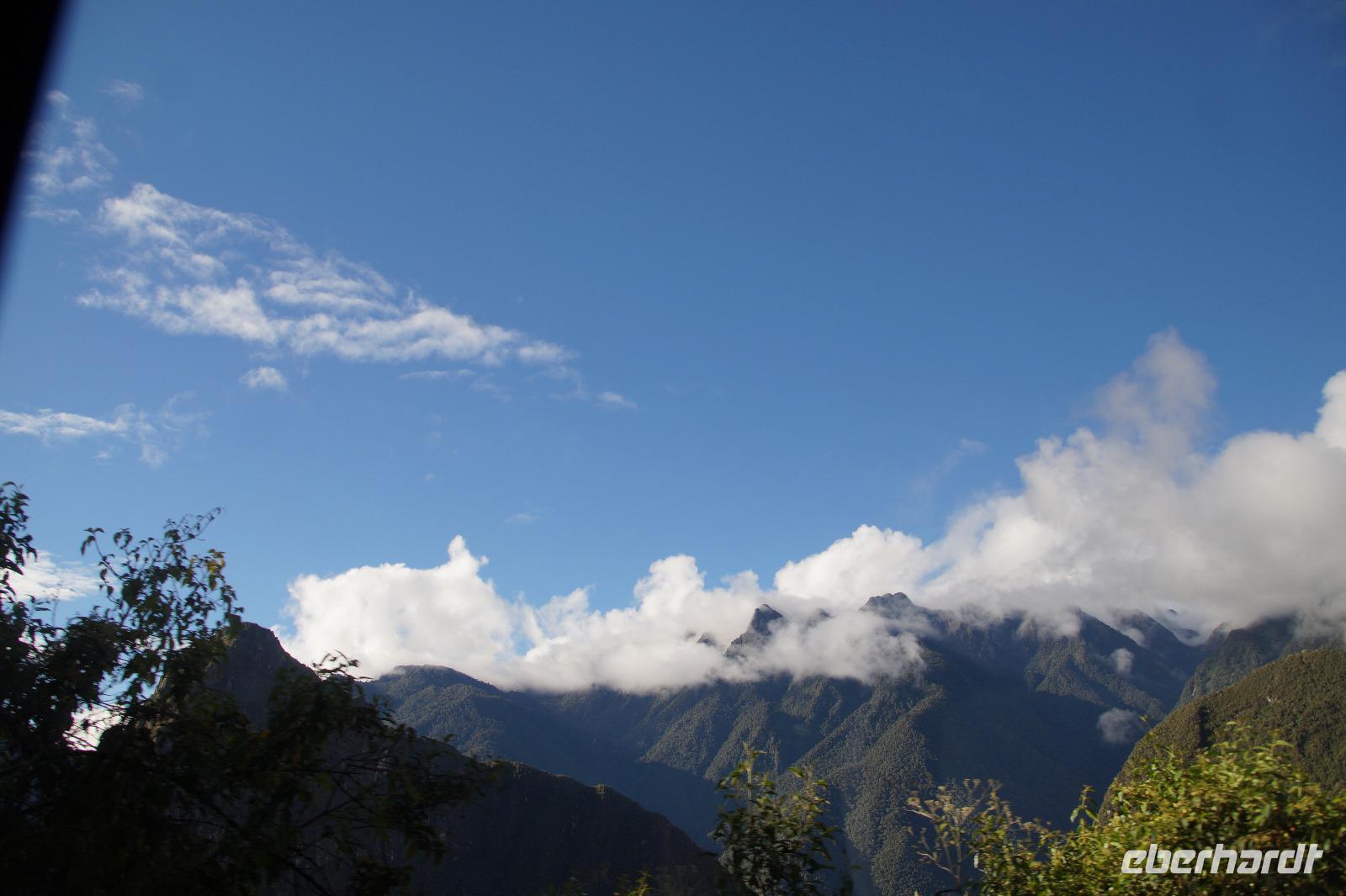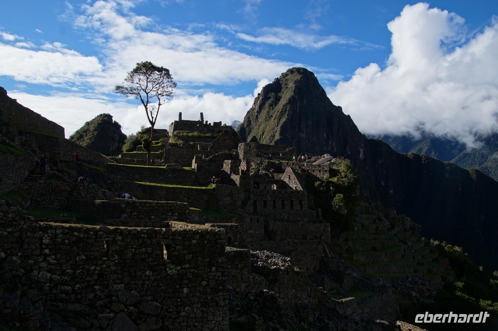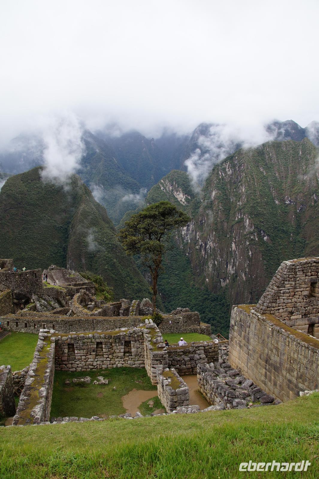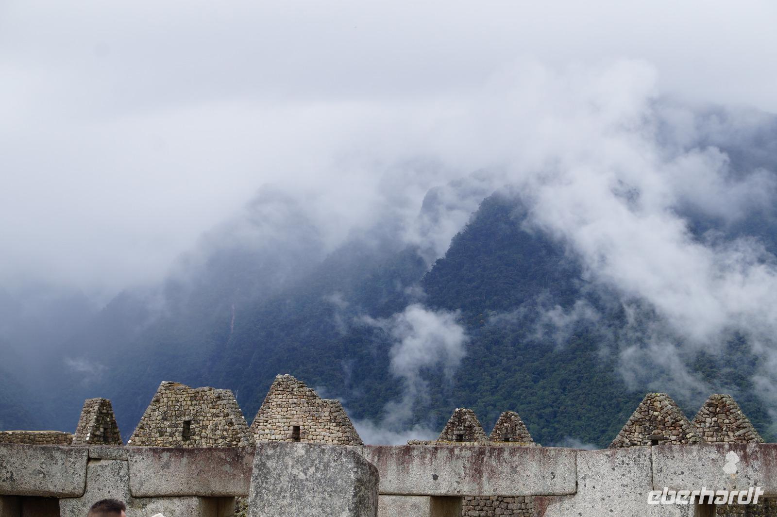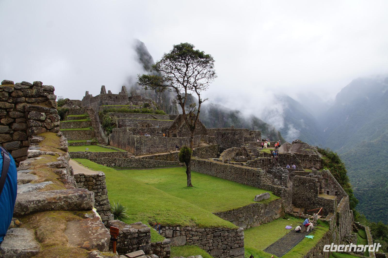 Am Bahnhof nehmen uns Bedienstete unseres Hotels unser Übernachtungsgepäck ab - wir haben vorgesorgt und wirklich nur das Gepäck für eine Nacht dabei - und wir fahren direkt hoch nach Machu Picchu. Heute ist es zwar bewölkt, aber zum Glück nicht nebelig. Obwohl der Nebel auch einen Teil der Mystik dieses Ortes ausmacht. Er hat nur den Nachteil... dass man keine Panoramafotos machen kann.
