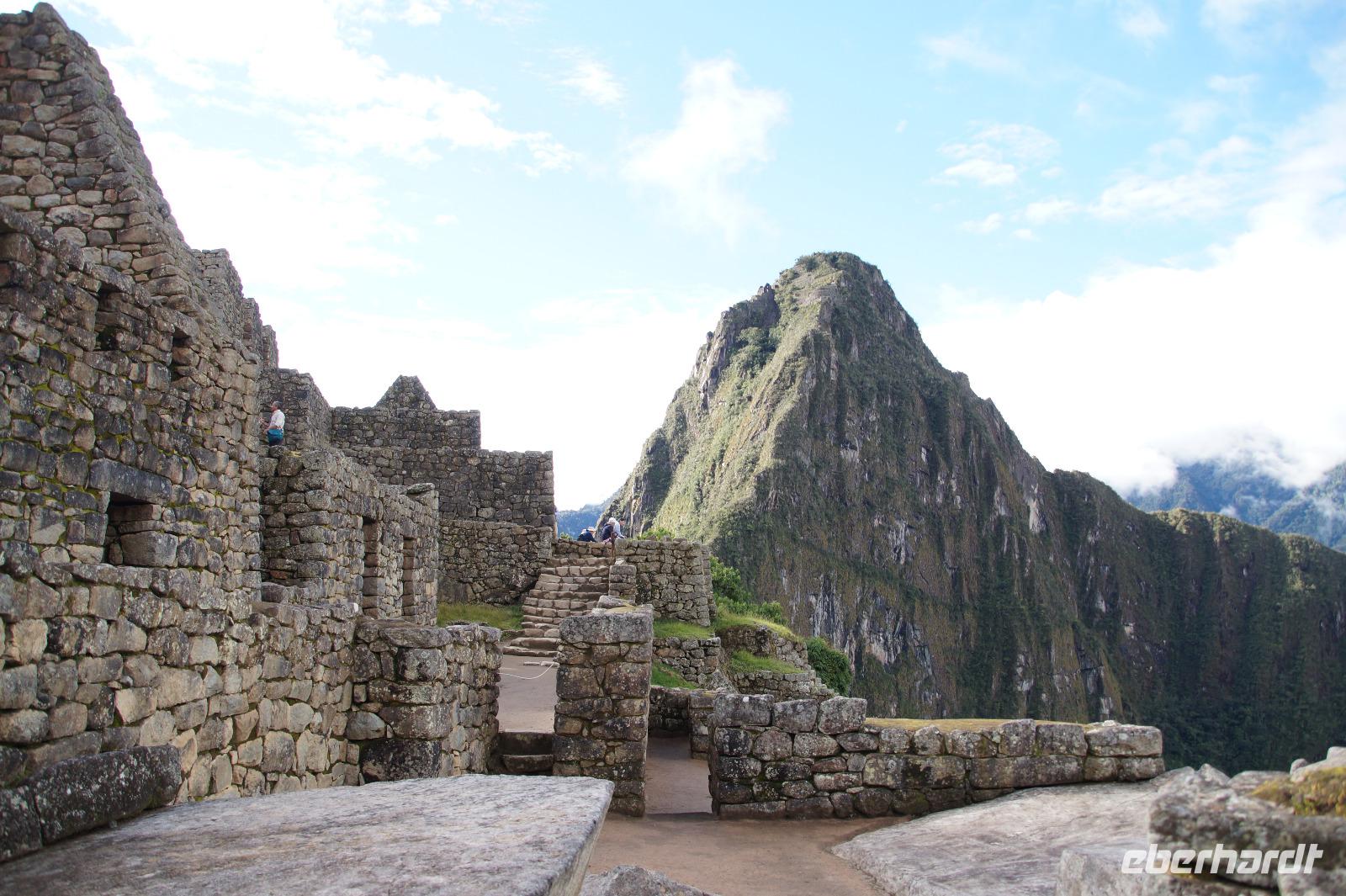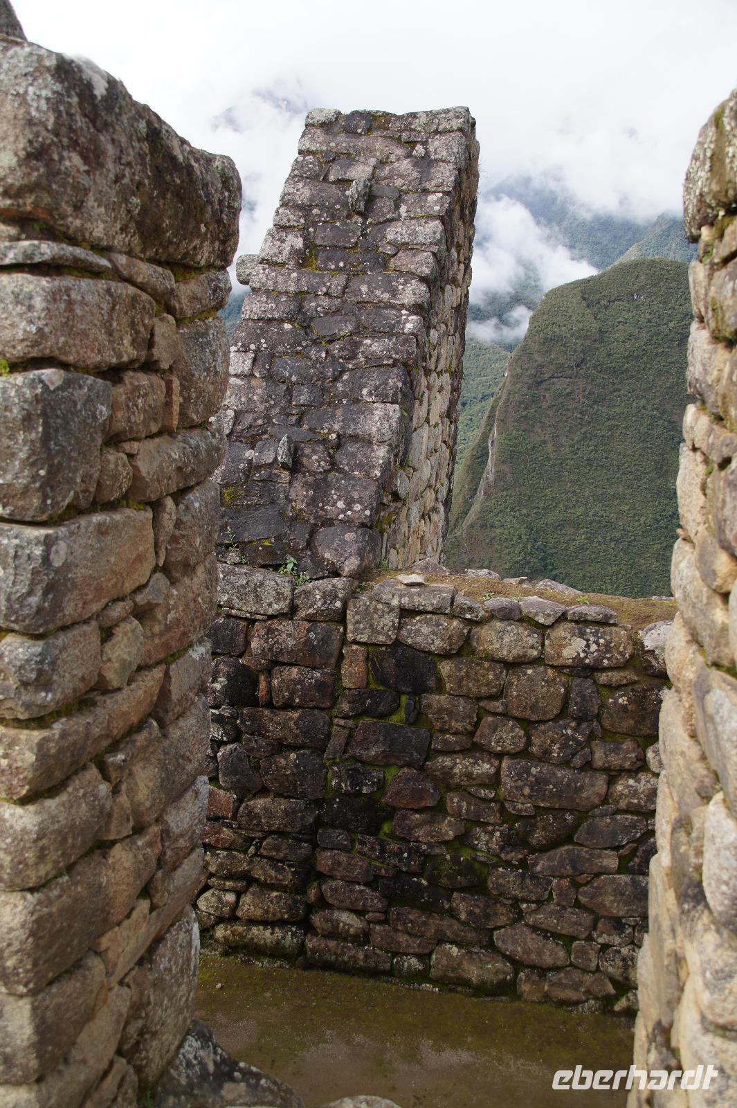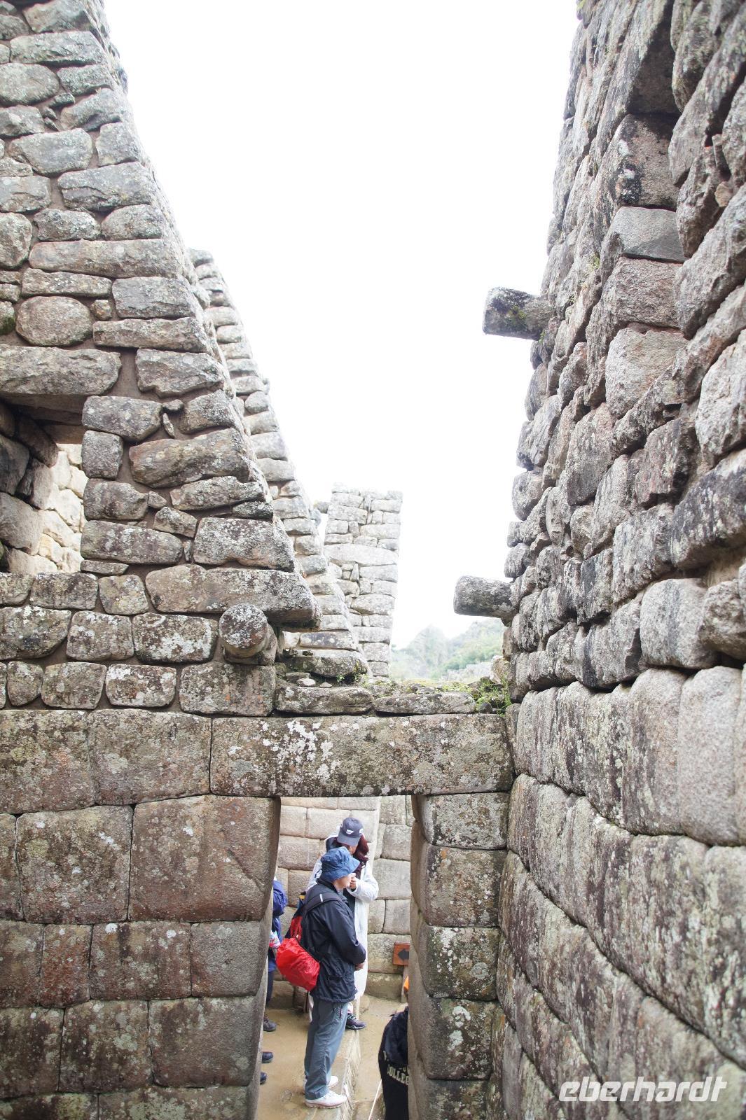 Wir kehren wieder zurück nach Machu Picchu, beim Stadttor trennen wir uns. Es ist heiß, die anderen beiden freuen sich auf ein kühles Blondes in Aguas Calientes und streben dem Ausgang zu, sie wollen nicht den Bus nach unten nehmen, sondern laufen. Das mit dem kühlen Blonden ist zwar verführerisch, aber ich will noch auf eigene Faust ein wenig durch die Inkaanlage streifen und das tue ich auch.