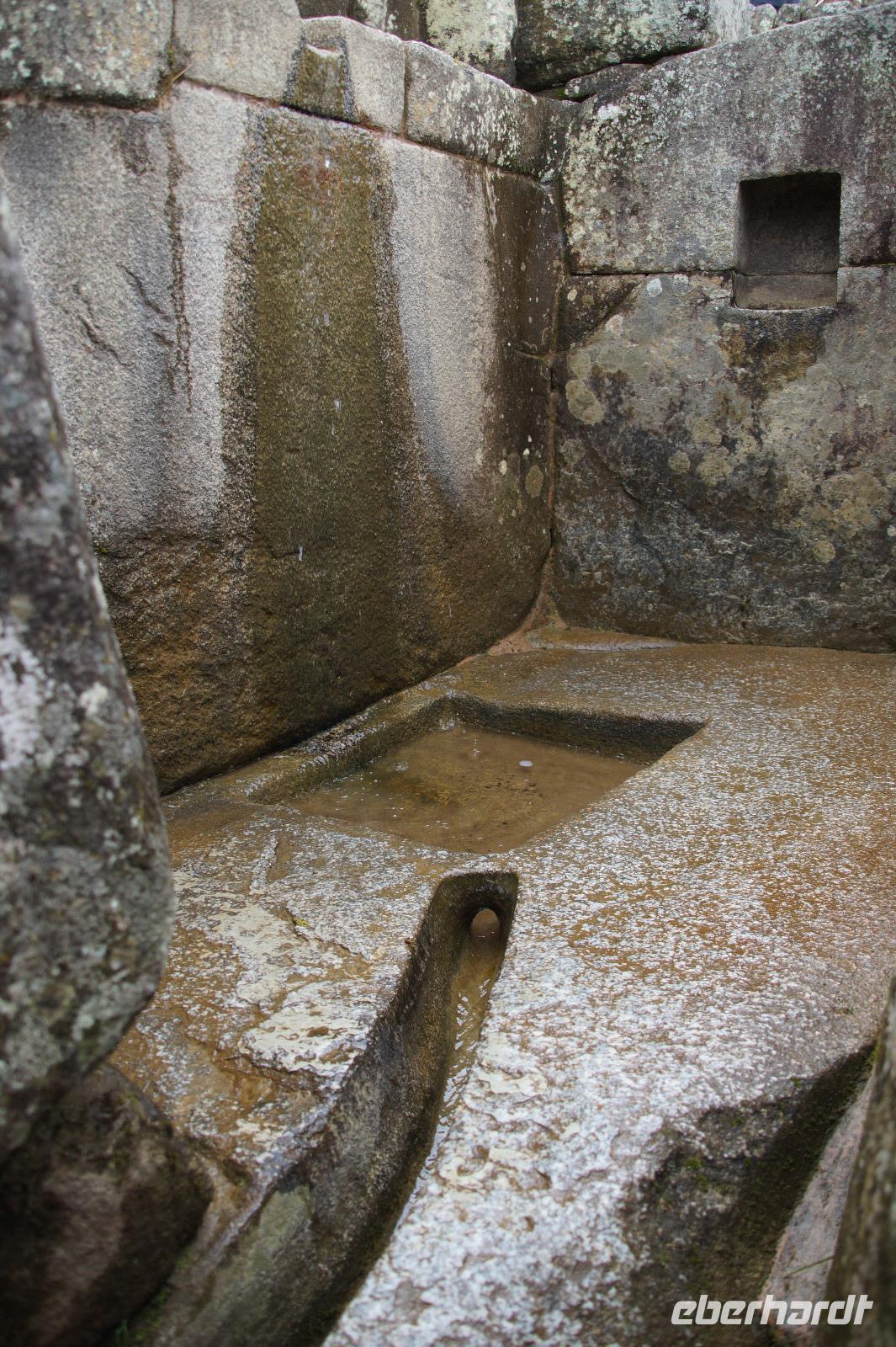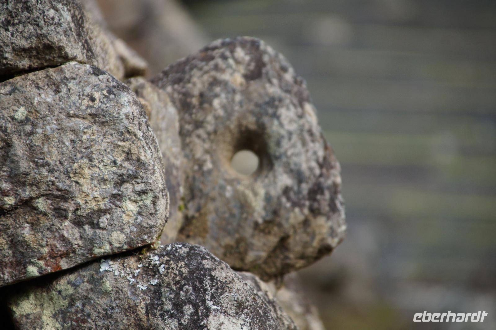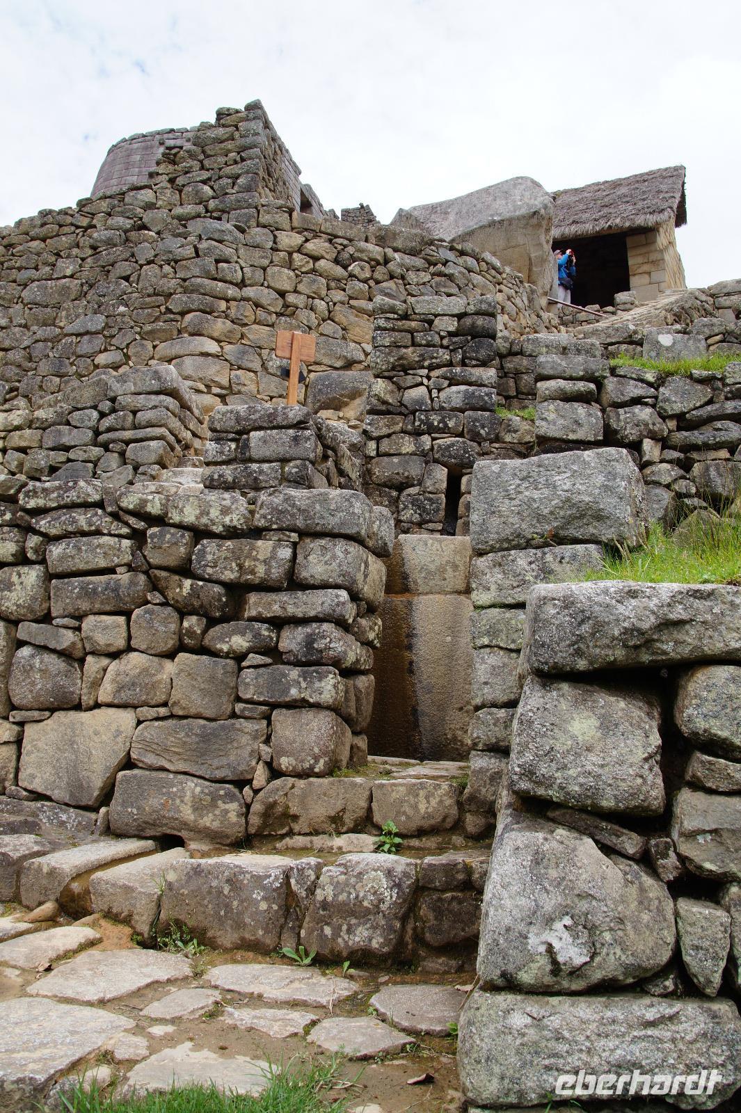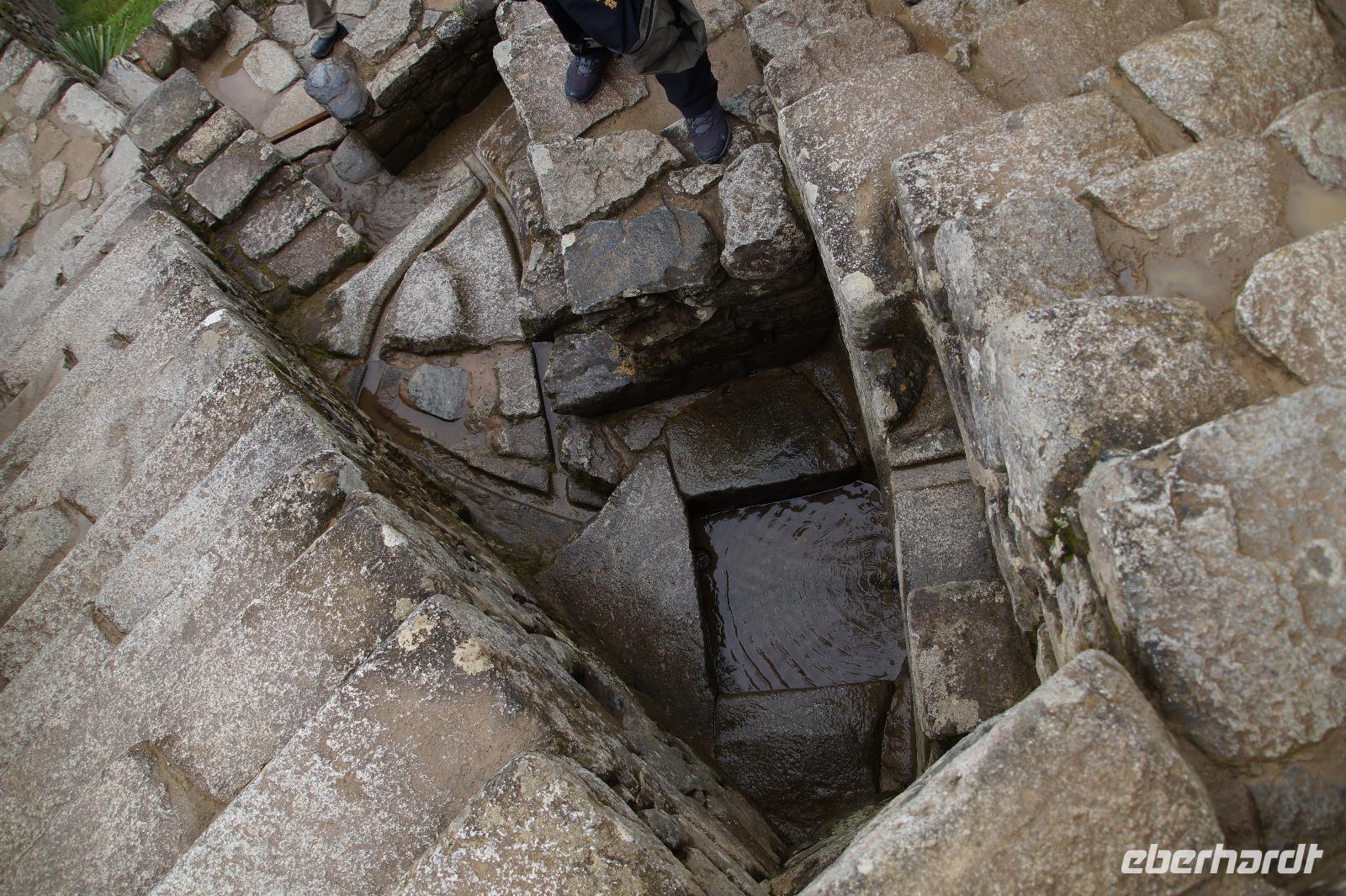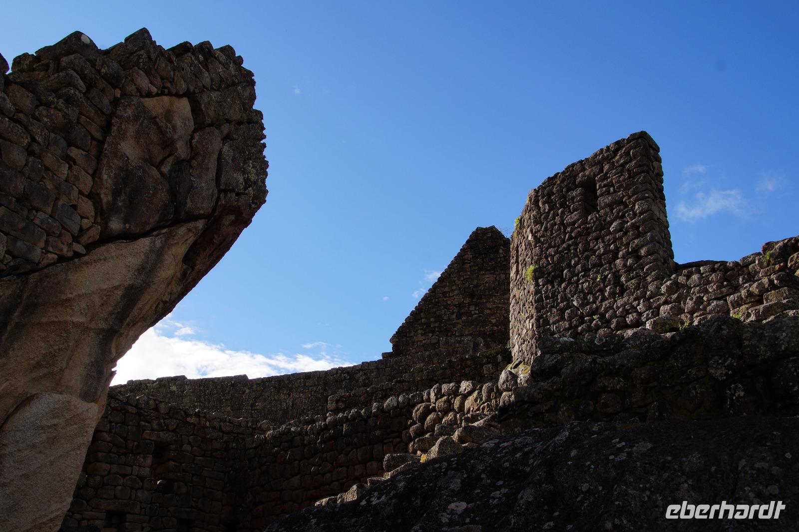 Wir steigen nun zum Intihuatana hoch. Alles, wo Inti drin steckt, hat etwas mit der Sonne zu tun. Intihuatana, gerne populär als "Sonnenuhr" bezeichnet, ist eigentlich der Ort, wo man die Sonne anbindet. Wie es heißt, hatten die Inka am kürzesten Tag des Jahres - dort der 21. Juni - Angst, dass die Sonne nicht mehr wiederkehren würde. Aus diesem Grund wollte man sie im übertragenen Sinne anbinden.