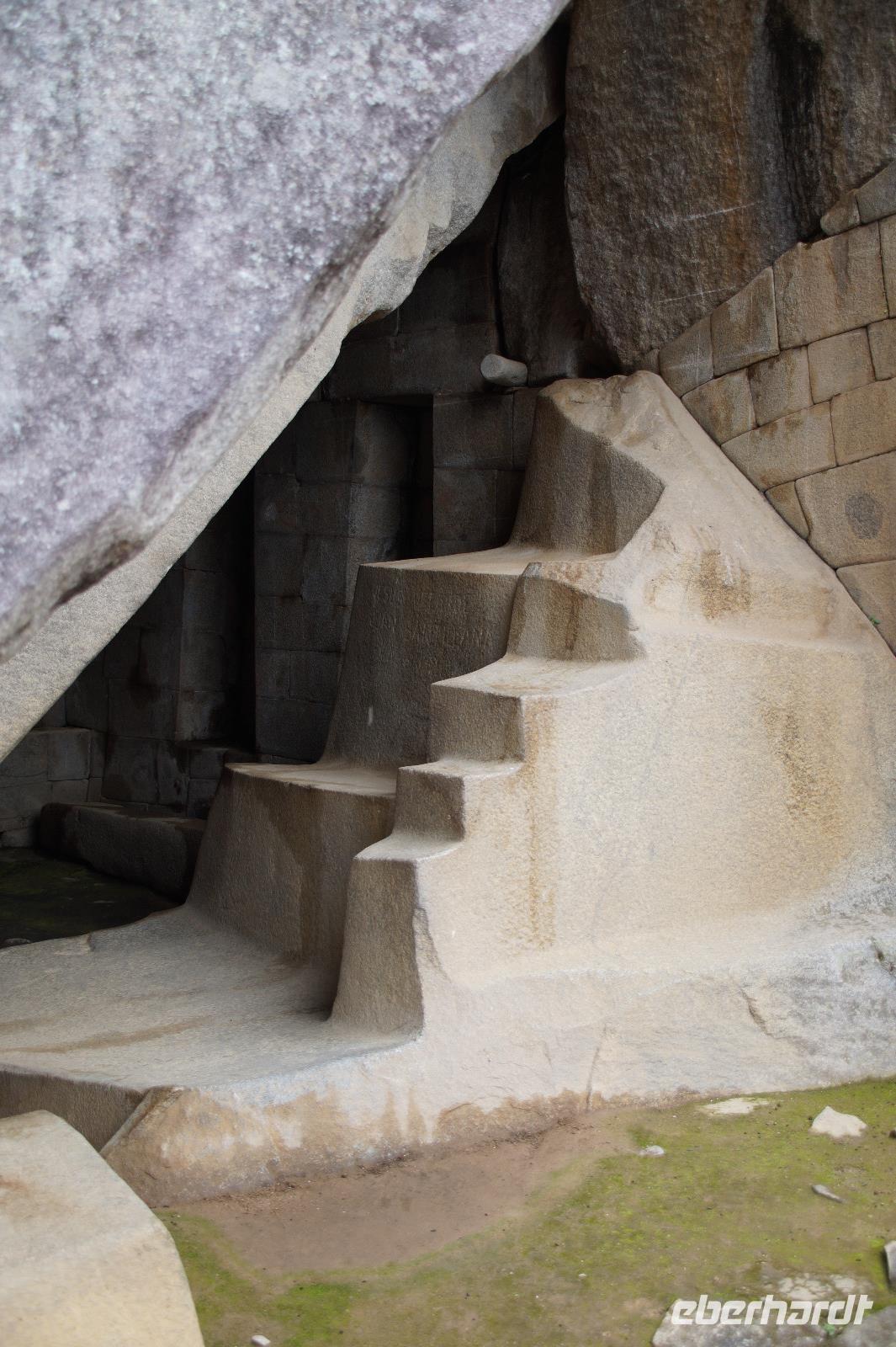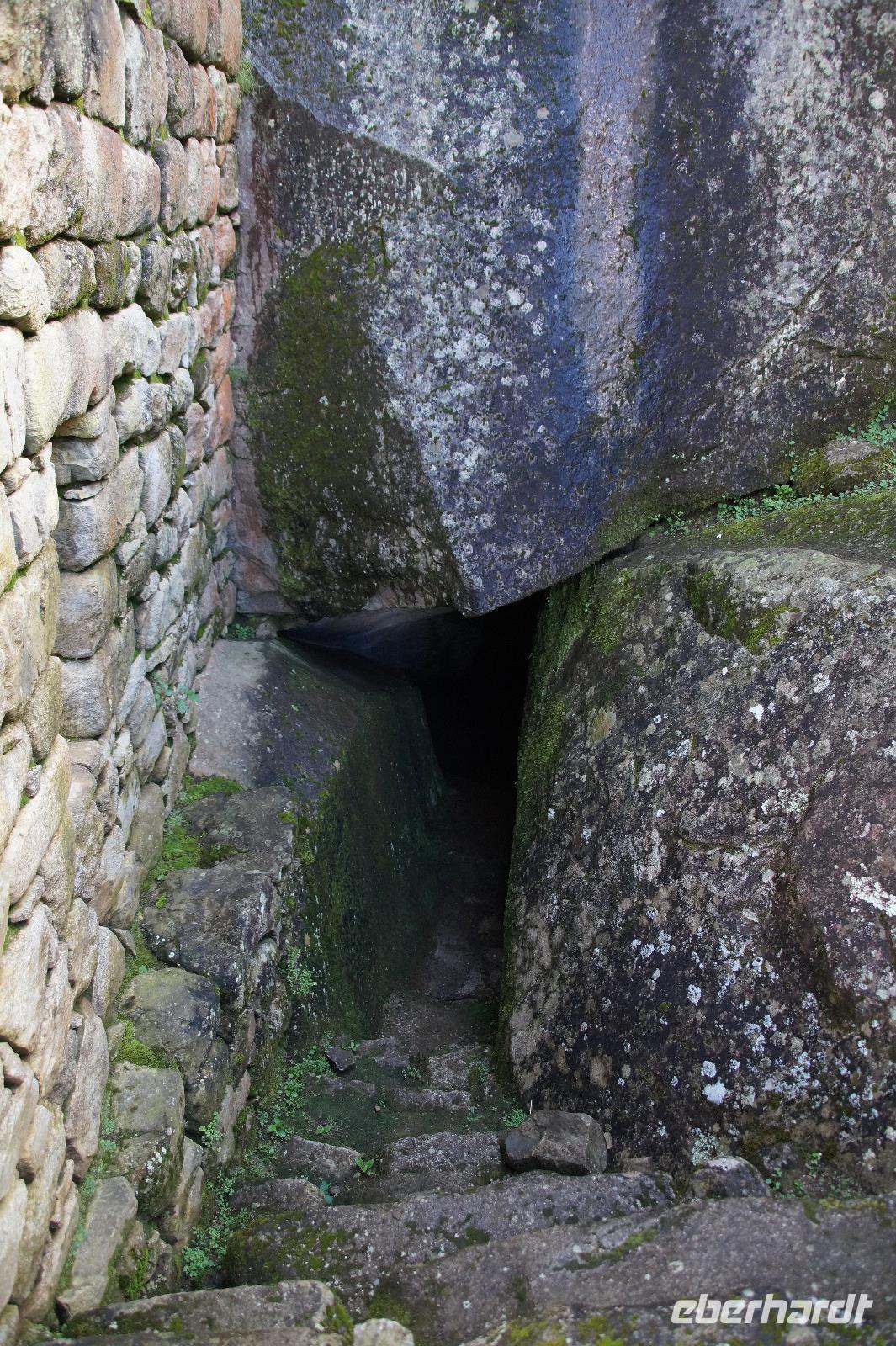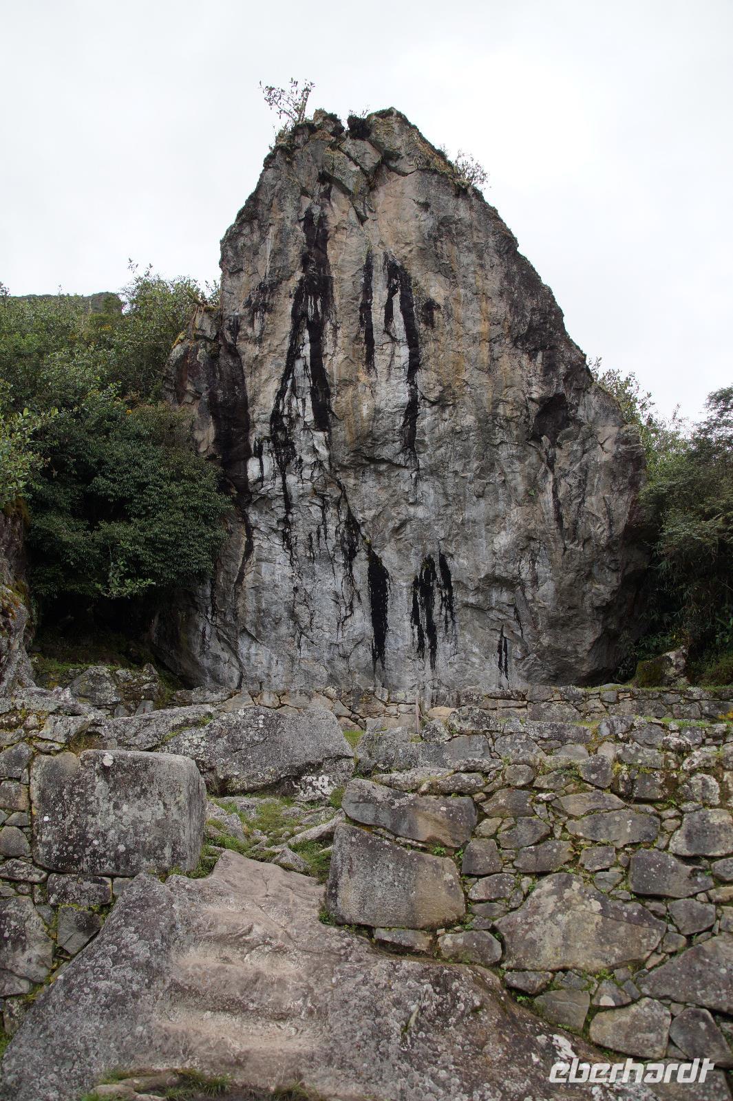 Von hier aus geht es zum heiligen Stein, der mit etwas Phantasie die Silhouette eines Meerschweinchens wiedergibt. Hinter dem Meerschweinchen befindet sich ein Weg zum Mondtempel, für den muss man aber extra angemeldet sein und nur eine reduzierte Menge von Menschen wird überhaupt dorthin hochgelassen. Der Weg soll nur für sehr Schwindelfreie etwas sein.