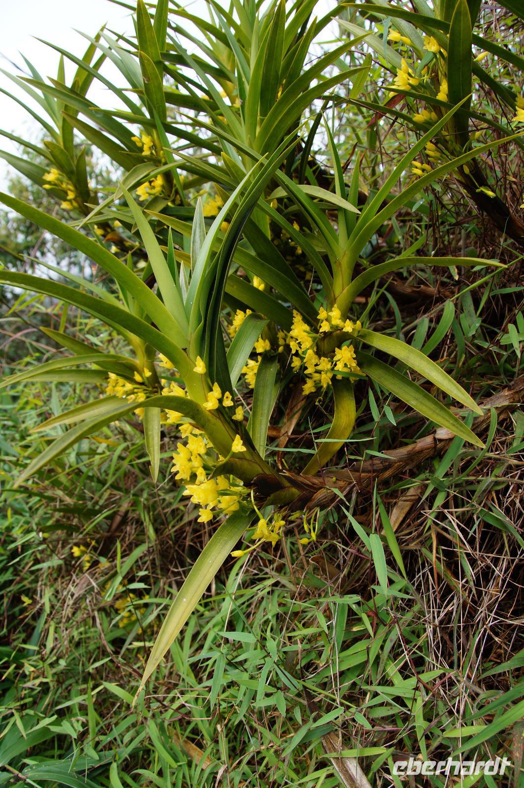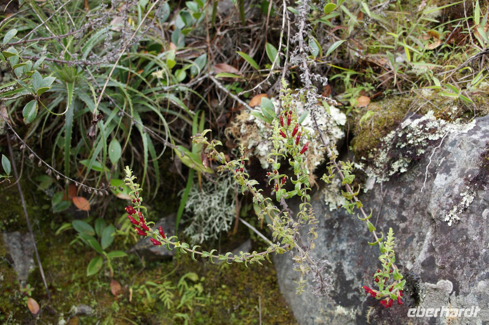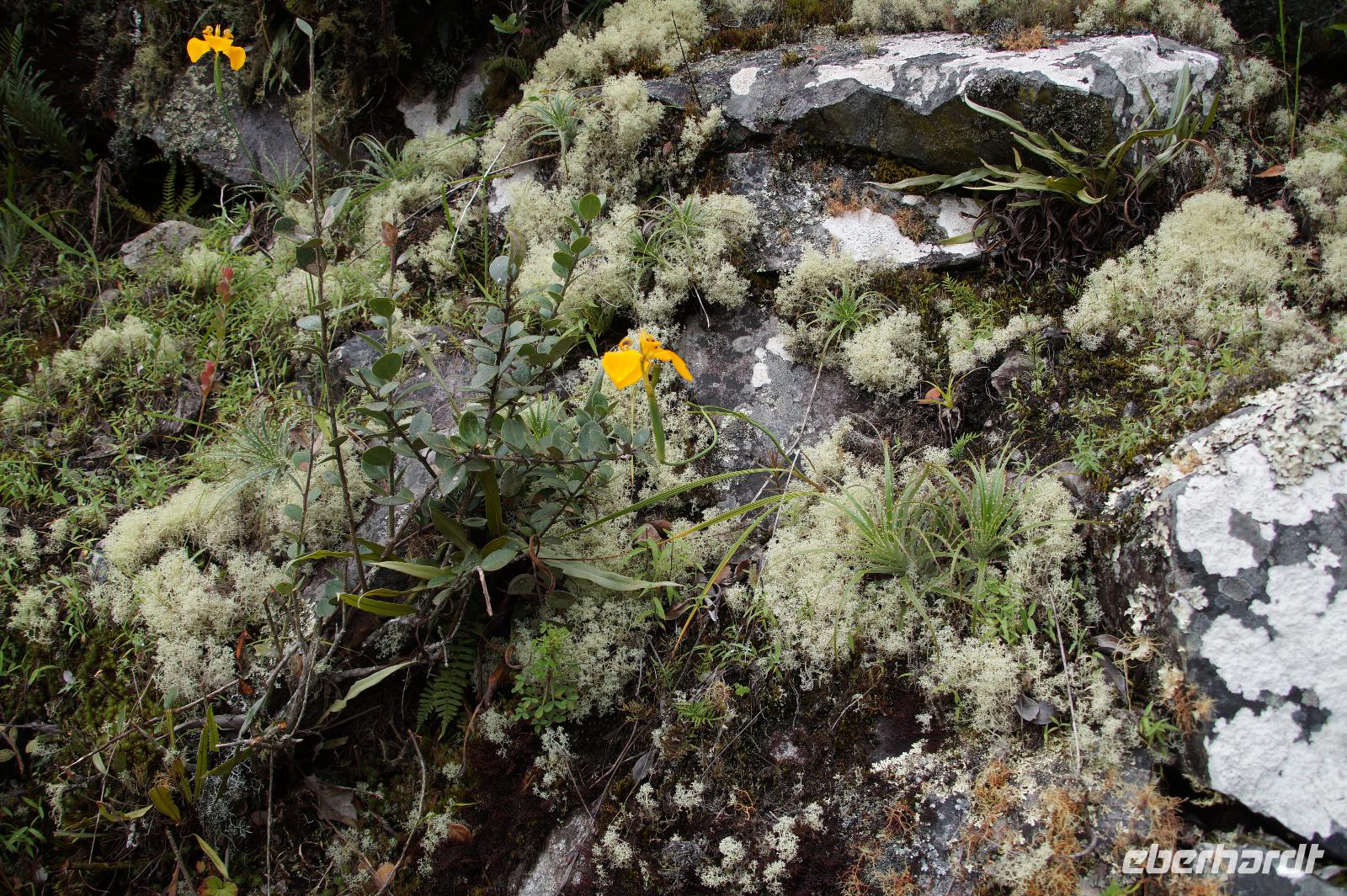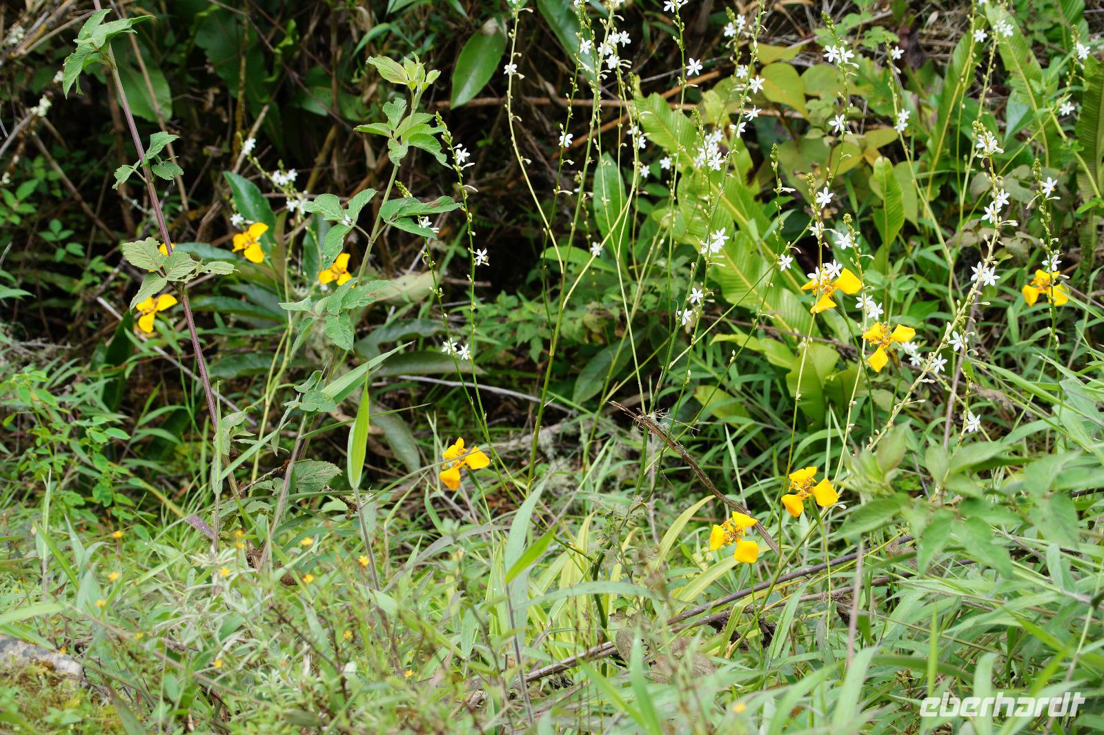 Wir kehren zurück nach Machu Picchu, von den anderen sehen wir nichts mehr. Unser nächstes Ziel ist die Inkabrücke. Ein schmaler Weg führt entlang des Steilhanges des eigentlichen Machu Picchu-Berges dorthin. Machu Picchu liegt eigentlich auf einen Bergrücken zwischen den Gipfeln Machu Picchu und Wayna (oder Huayna) Picchu und auf den meisten Fotos, die man von Machu Picchu kennt, v.a. auf den emblematischen Fotos, liegt der namensgebende Berg im Rücken des Betrachters, wohingegen der Gipfel des Huayna Picchu - sofern nicht vernebelt oder wolkenverhangen - auf allen Fotos zu sehen ist. Wir sind jetzt also auf dem schmalen Steig am Rande des Steilhangs, der zur Inka-Brücke führt. Hin und wieder beobachten wir Vögel oder auch Schmetterlinge, besonders einer, der seine Fressfeinde verwirrt, indem er je nach Flügelschlag blau oder gelb aussieht, fasziniert uns. Aber er ist zu schnell oder weit weg, um ihn auf das Fotopapier zu bannen. Eine Einheimische raunt mir zu, das sei der Machu Picchu-Morpho. Bei der Inernetrecherche später finde ich viele Schmetterlinge der Gattung Morpho, diesen speziellen aber nicht.