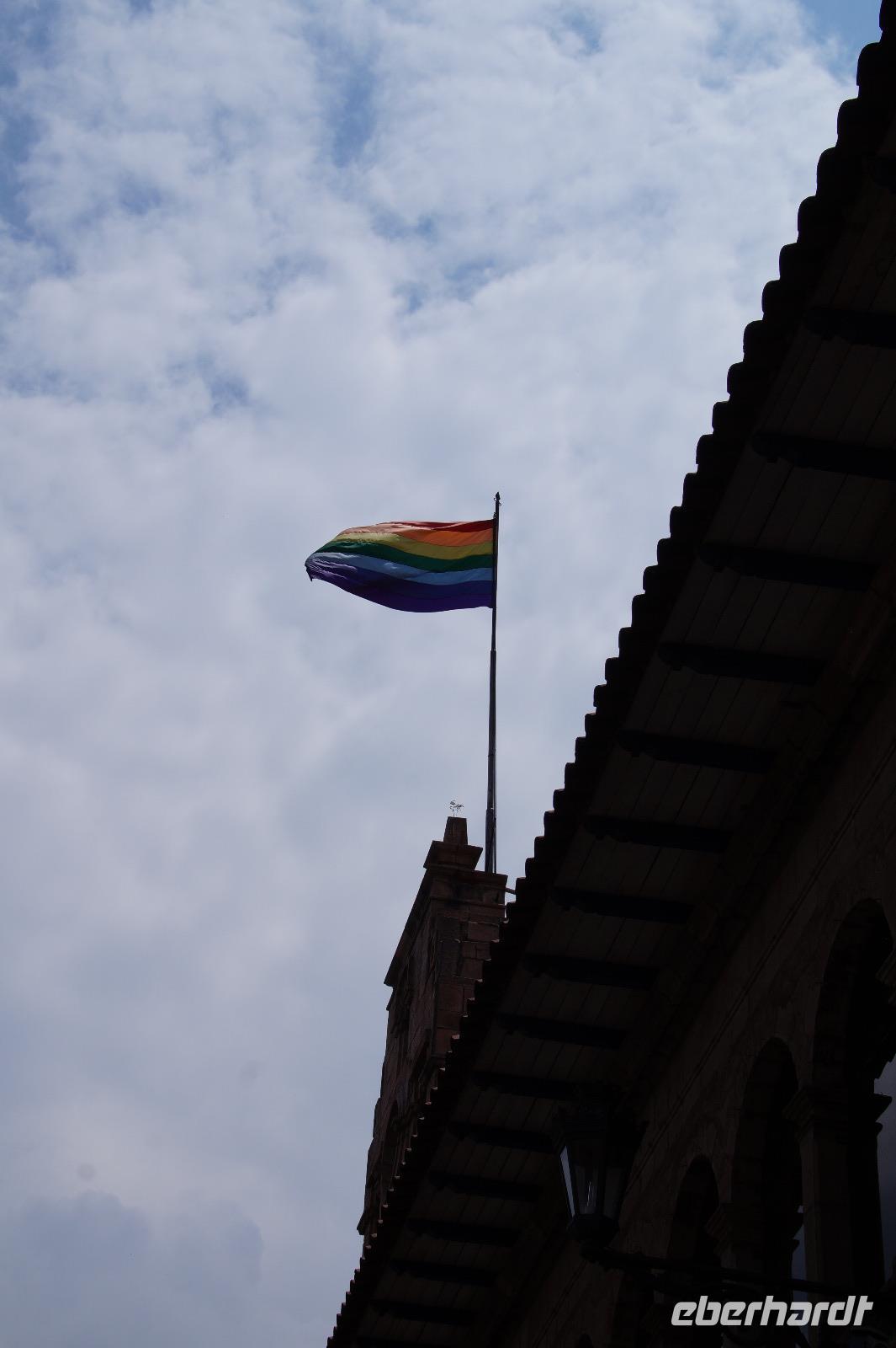 Ich spreche mit einem peruanischen Polizisten, wie lange er eigentlich so vor dem Präsidentenpalast Wache schiebe: Heute von 6:00 - 13:00 Uhr und dann noch mal von 19:00 - 2:00 Uhr. Ich bin beeindruckt.