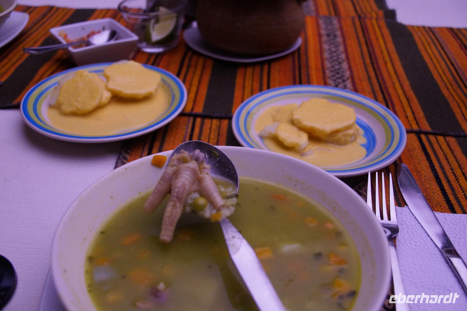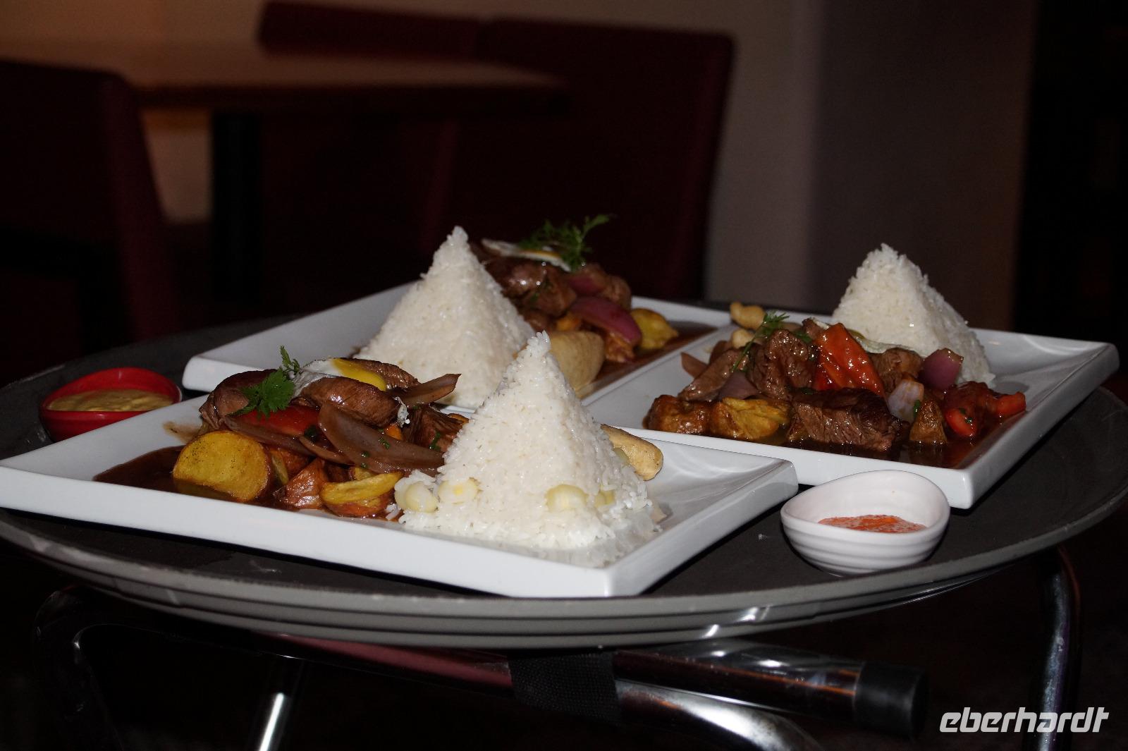 Da wir mit der República del Pisco vereinbart haben, dass wir nach der Pisco-Probe auch essen wollen und diese vor Beginn der Probe unsere Essensbestellungen aufgenommen haben, müssen wir nicht mehr lange auf unser Essen warten.
