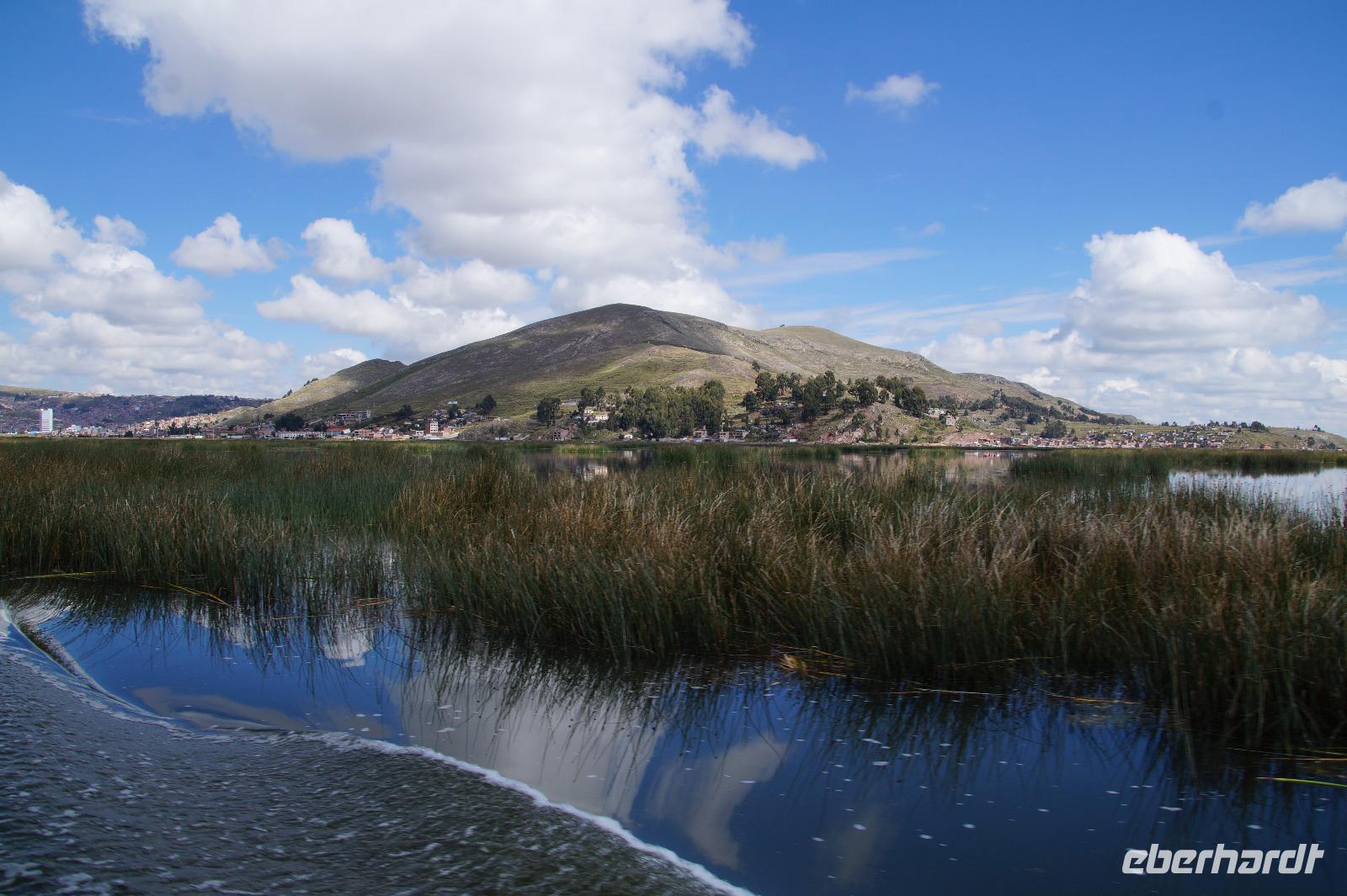 Wir begeben uns wieder zum Boot, nach kurzer Aufregung um eine verlorene Brille, die sich schnell wiederfindet, legen wir ab und fahren zurück in Richtung Puno. César lässt uns am hoteleigenen Steg aussteigen.