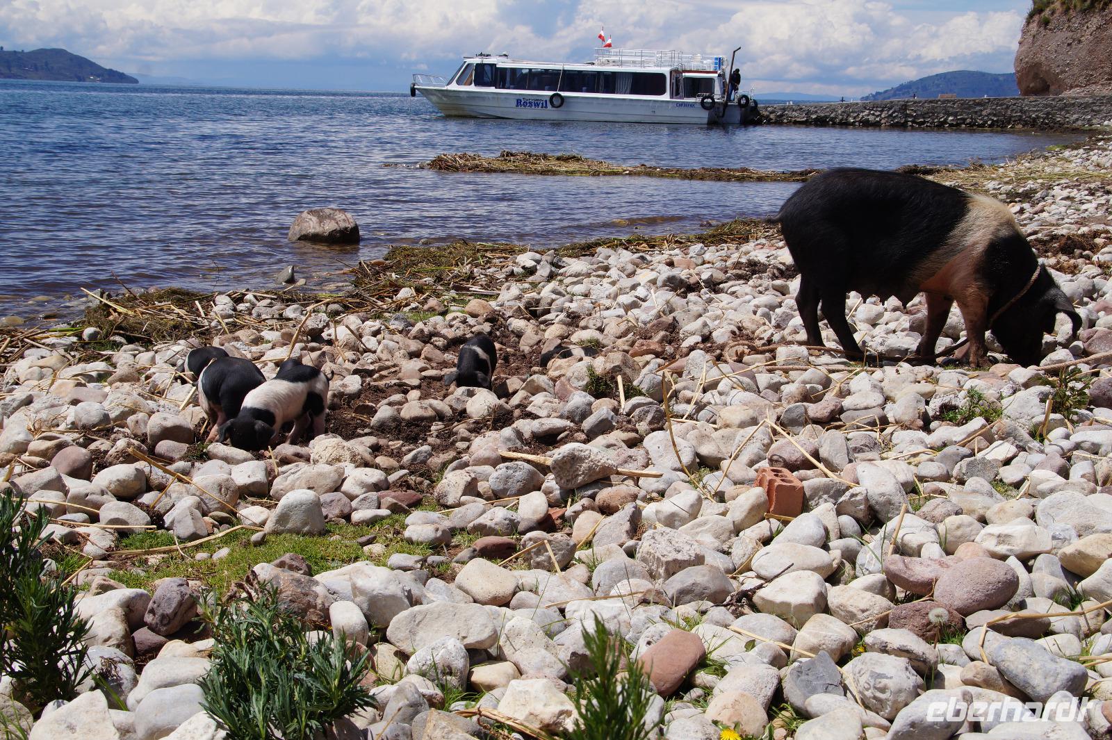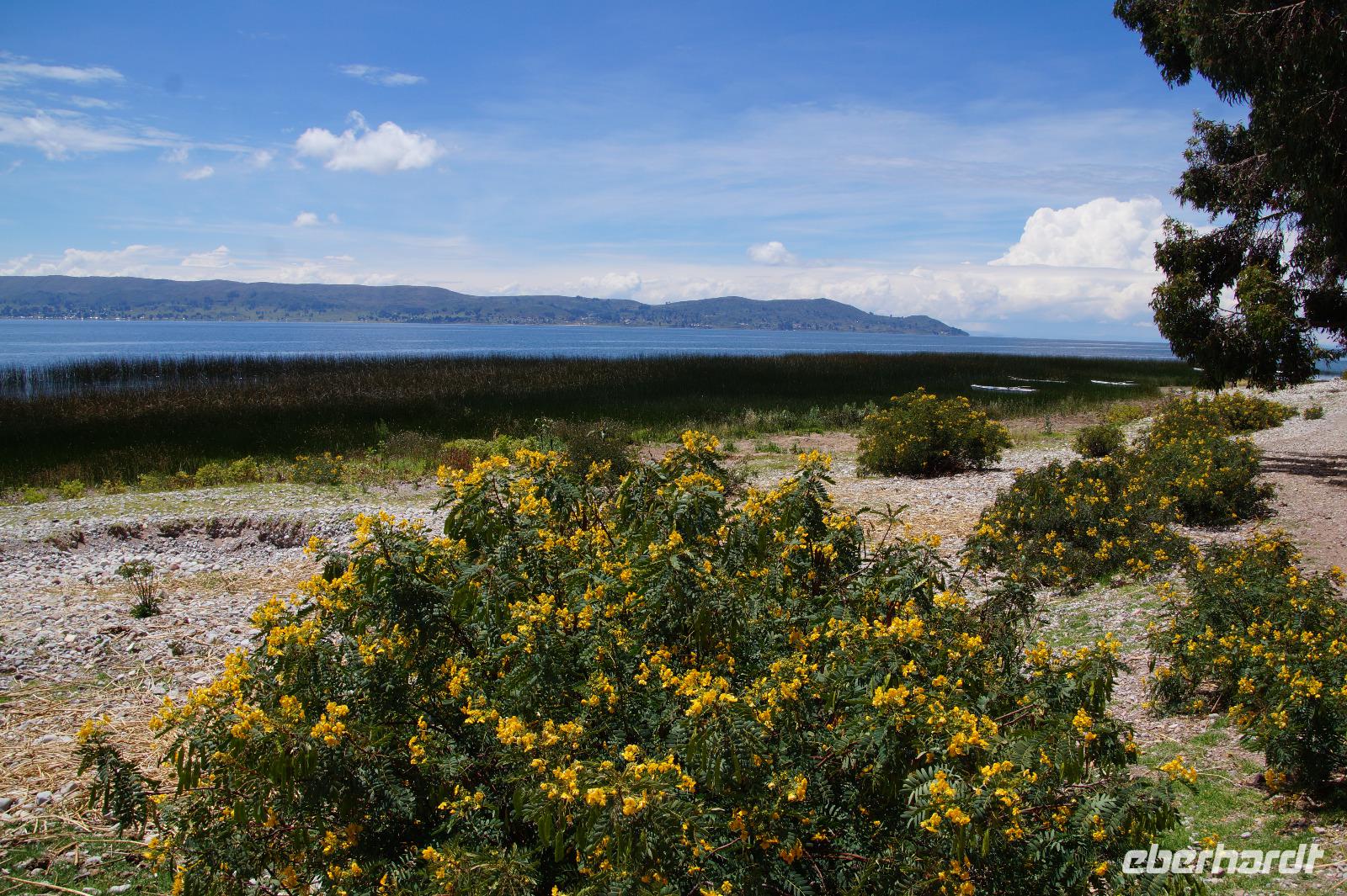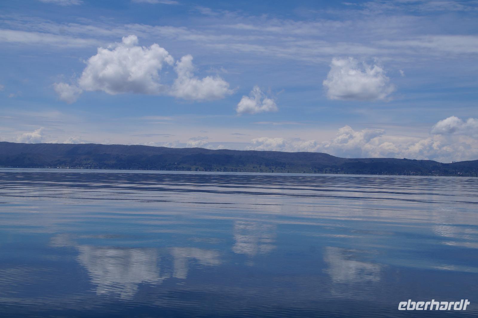 Auf dem Boot singt uns Raúls Sohn "Alle meine Entchen" vor, in einem Mix aus Deutsch und dem, was er für den korrekten Text hält. Da er nur Spanisch spricht, frage ich ihn, ob er auch etwas auf Aymara singen könne, er singt ein Lied, das wir kurz zuvor gehört haben. Und als ich ihn frage, ob er das ins Spanische (Español) übersetzen könne, sagt er mir, er wisse nicht was das ist. Ich variiere meine Frage, ob er das ins Kastilische (Castellano) übersetzen könne, was er zwar bejaht, aber nicht umsetzt.