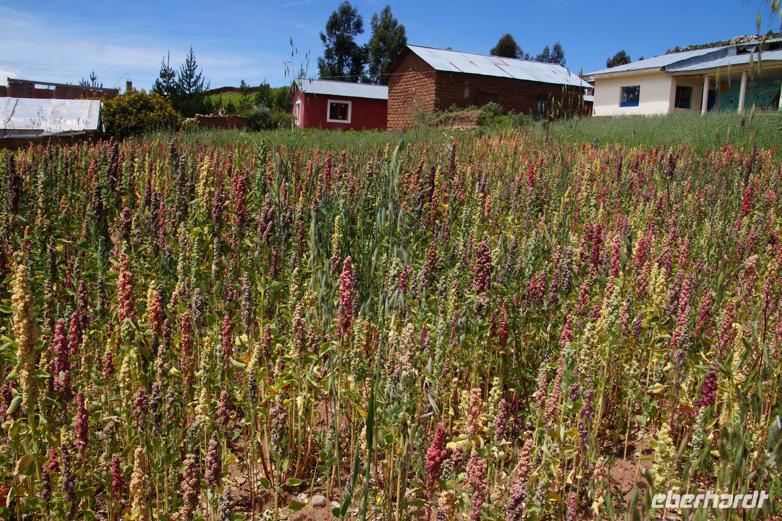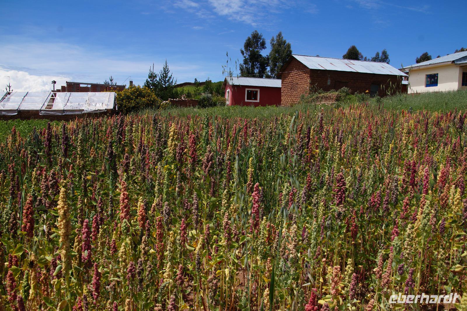 Ich weiß nicht, was ich von seiner Angabe zu halten habe, denn er selbst erzählt mir, dass er früher bei seinen Tanten gewohnt habe, die weiter draußen auf dem See wohnten, wo die Uros lebten, die keine Touristen empfangen wollten, er sei ins Dorf gezogen, um mit den Toruisten Geld zu verdienen, wie er unumwunden zugibt (ich finde das auch voll in Ordnung!). Also alle ursprünglich auf einer großen Insel oder doch verstreut?