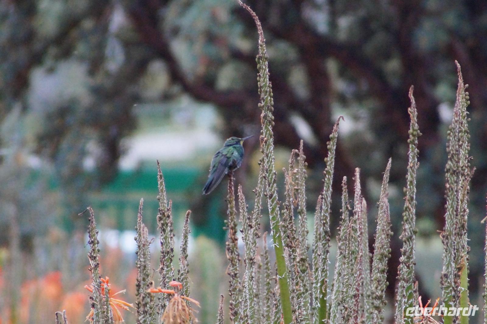 Zurück auf unserer Hacienda Concepción führt uns Mirko in den botanischen Garten, einer Sammlung der Medizinalpflanzen aus dem peruanischen Regenwald, plus einiger anderer mehr. Auf dem Weg dorthin versteckt sich ein Ameisenbär in einer Palme, wir bekommen ihn nicht mehr zu Gesicht.Vor dem übermäßigen Konsum von Lemon Gras warnt Mirko, vor allem die Männer: es mache den (kleinen) Freund traurig. Aber er weiß auch ein Gegenmittel. Eine Pflanze von der man die Blätter zu einem Sud kocht und diesen dann trinkt. Regenwald-Viagra. Er erklärt uns den Koka-Strauch und präsentiert uns als Allheilmittel den Drachenblutbaum. Aber auch dieser Joker des Regenwaldes habe, wie jede im Übermaß genommene Medizin, sein Tücken. Mirkos Cousin habe mal, anstatt eines Tropfens vom Drachenblutbaumblut eigenen ganzen Löffel genommen, die Folge war ein rasender Kopfschmerz, der sich angefühlt habe, wie loderndes Feuer.