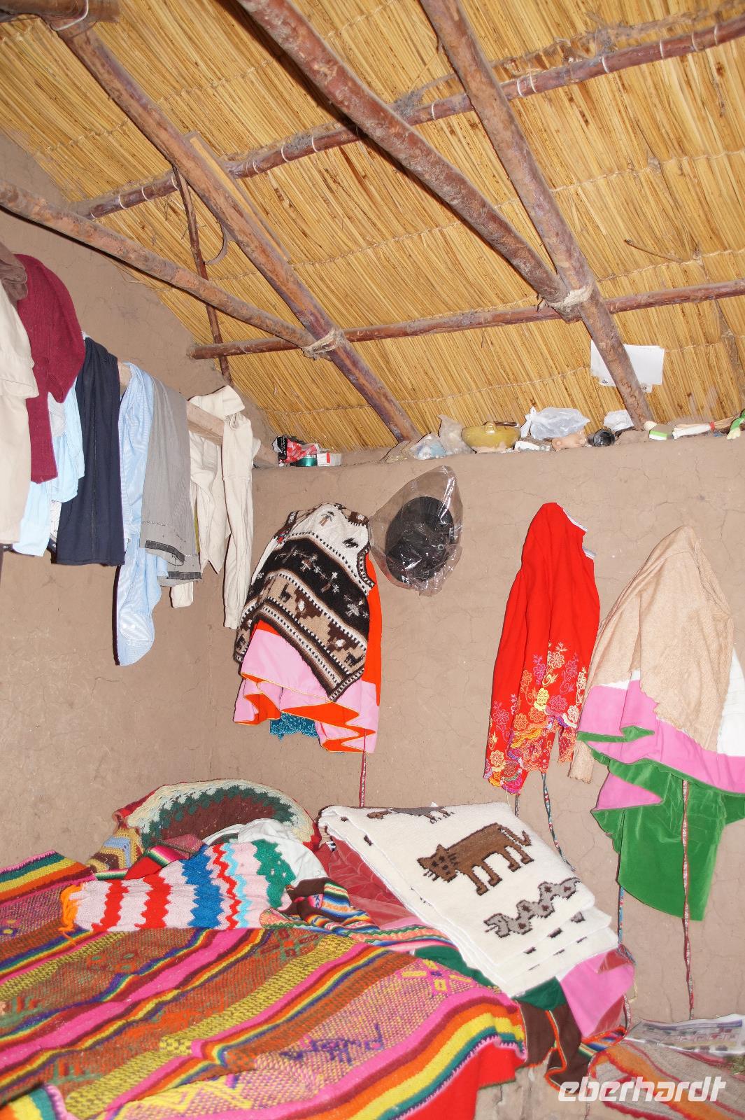 Dann dürfen wir uns die Insel an-, auch gerne in die Hütten hineinschauen. Ich stehe etwas dumm in der Gegend herum - es ist mir unangenehm, in fremde Hütten zu spähe - da kommt Raúl zu mir, der plötzlich sehr gut Spanisch sprechen kann. Ich frage ihn, da viele Inseln beieinander liegen und nur wenige abseits des Uro-Dorfes, ob der Tourismus der Grund sei, warum sie so nahe beieinander lebten. Er antwortet mir, dass der Tourismus der Grund sei, warum die Uros alle auf getrennten Inseln und nicht alle auf einer gemeinsamen großen Insel leben. Das sei schade, sage ich. Der Tourismus ist eben ein zweischneidiges Schwert: Er bringt den Uros Geld, aber er verändert ihr Leben nicht nur zum Guten. Aber vielleicht sichert er ihr kulturelles Überleben und die Ökologie des Titicacasees.