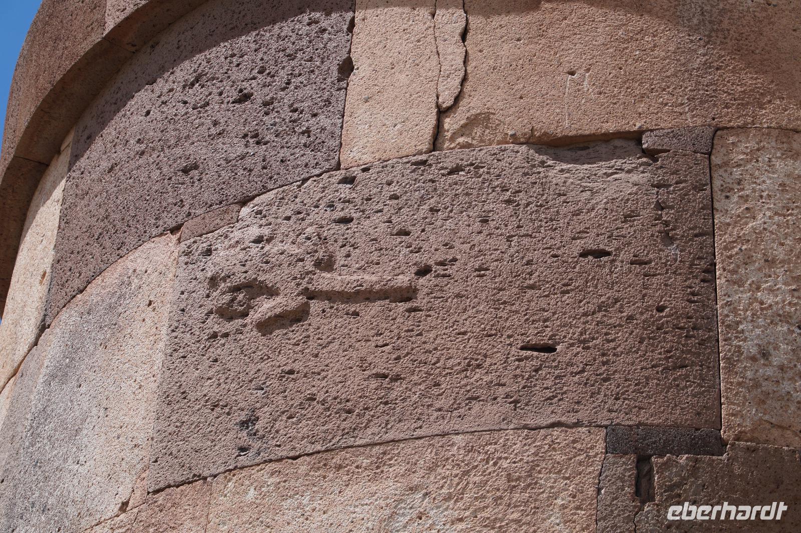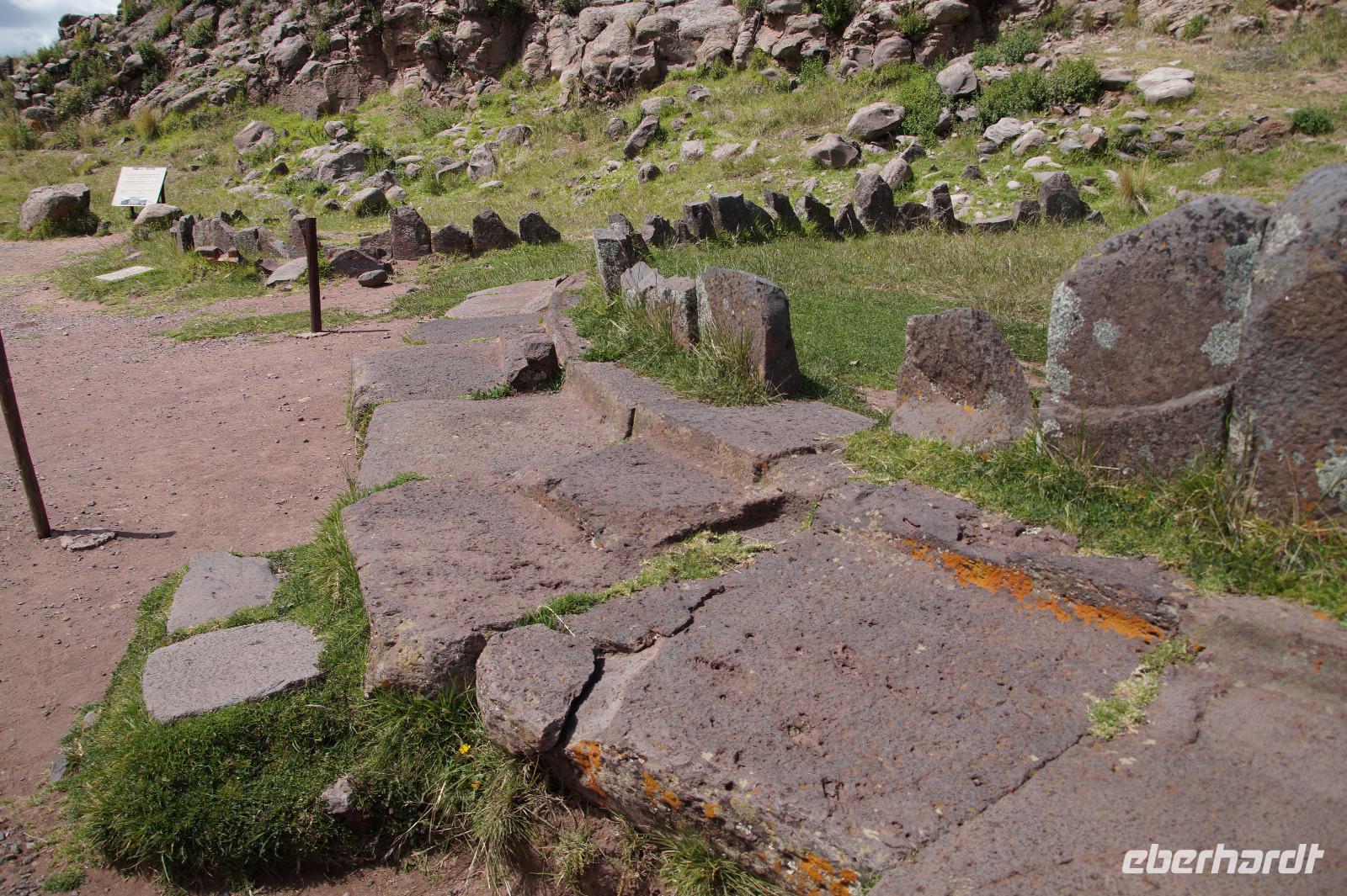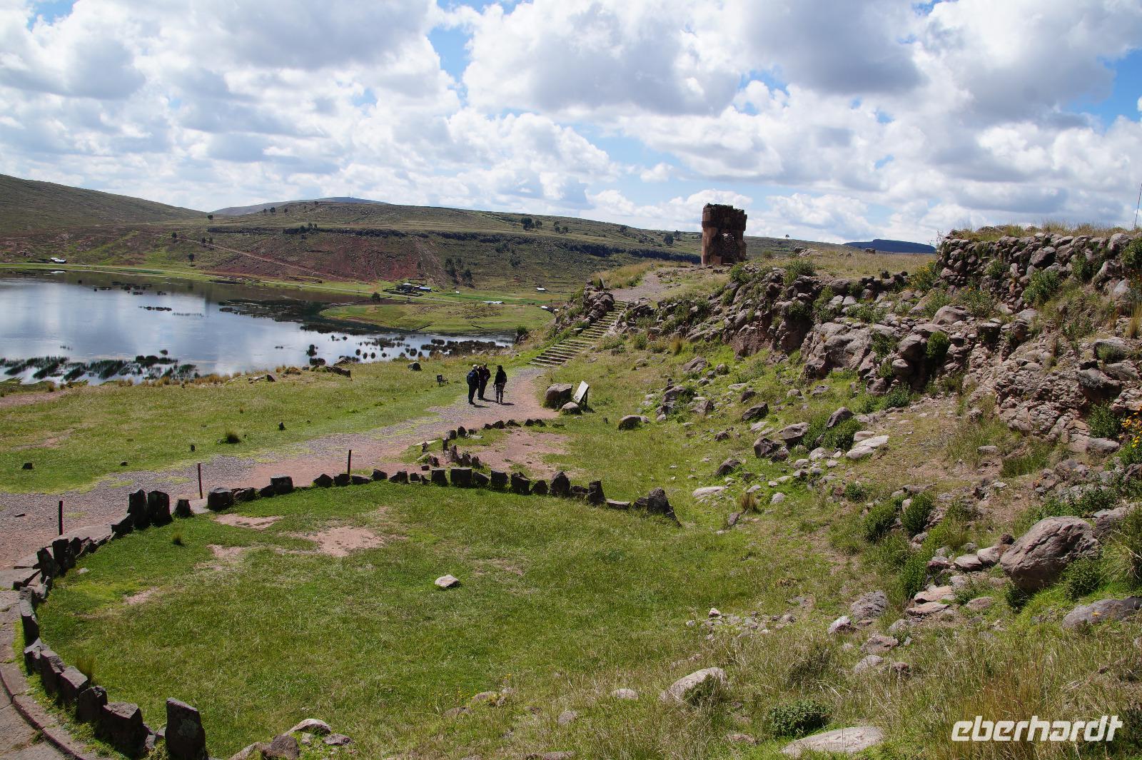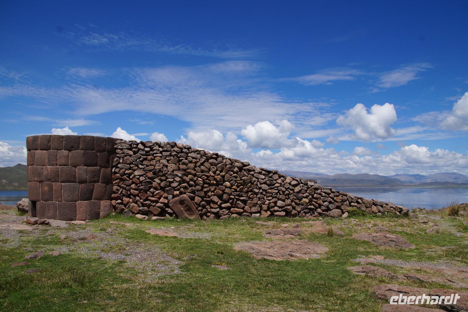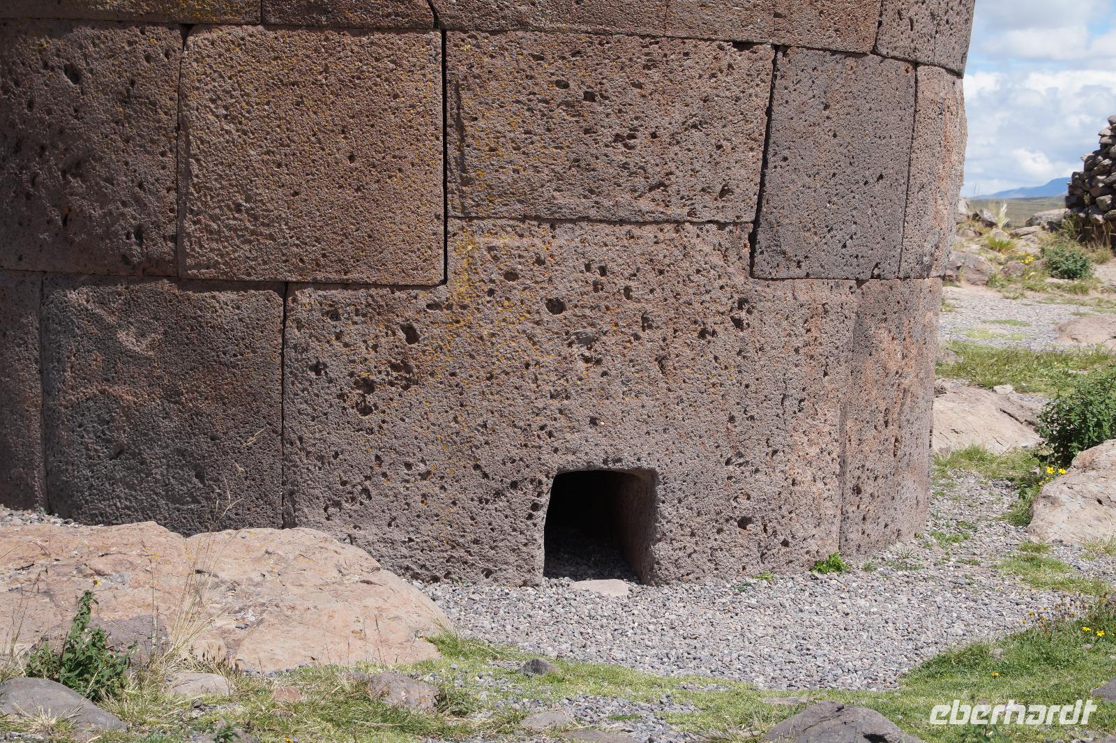 Nach kurzem Aufenthalt müssen wir weiter, um die Grabtürme zu besichtigen. Es handelt sich dabei um den Friedhof der Adeligen der Colla-Kultur. Aufgrund der Perfektion mancher der Grabtürme hat man manche der Türme früher auf die Inka-Zeit datiert, inzwischen weiß man aber, dass auch die perfekt gebauten Grabtürme bereits prä-inka sind. Dementsprechend glauben manche, dass die perfekt polierten Mauern, wie wir sie von den Inka kennen, auf einer Technik basieren, welche die Colla entwickelt haben und welche die Inka ihnen abschauten.