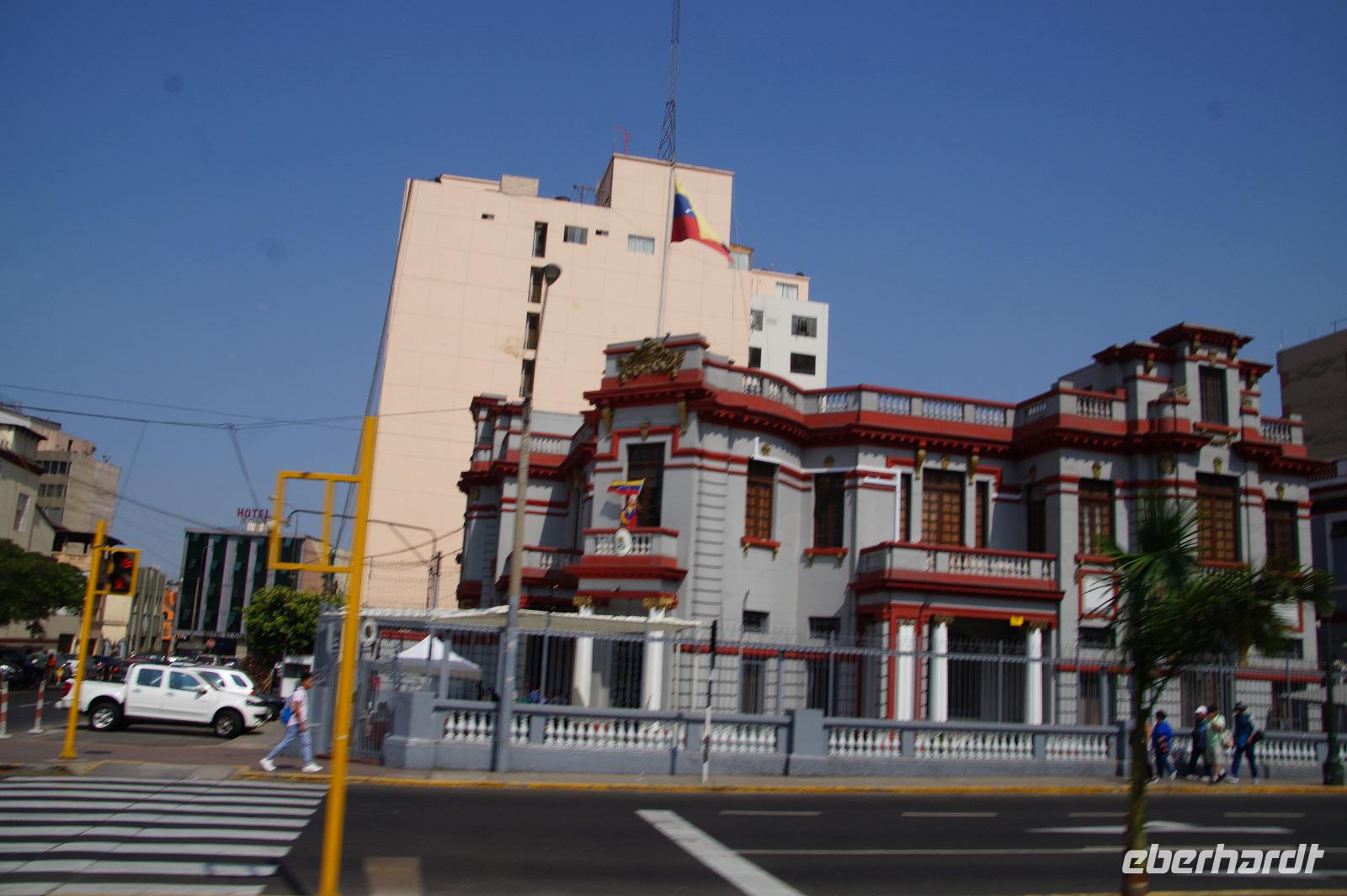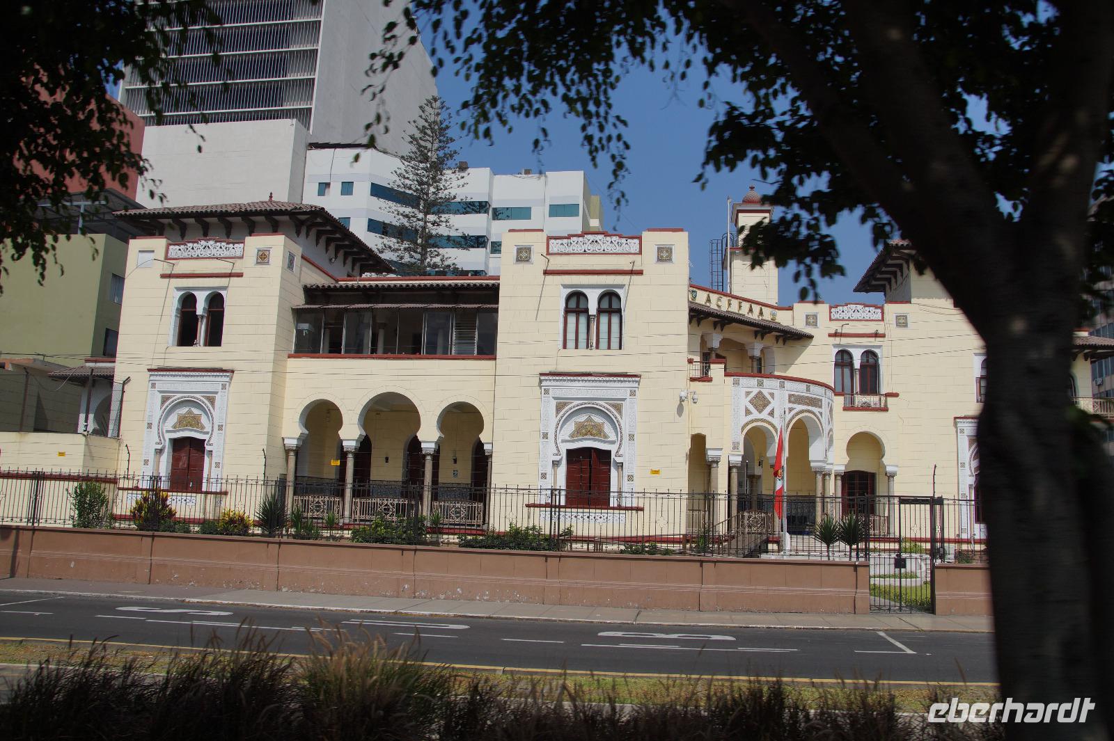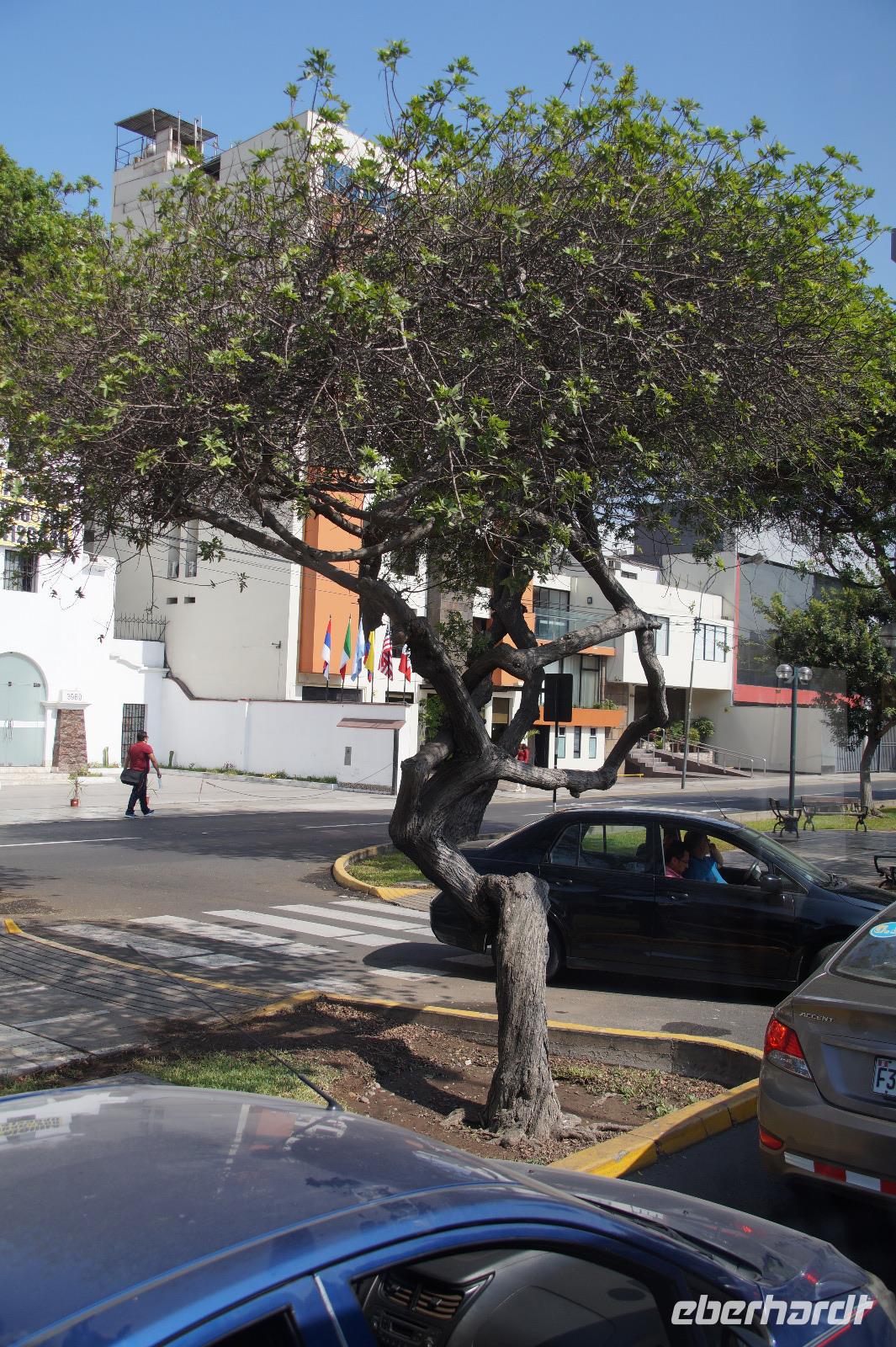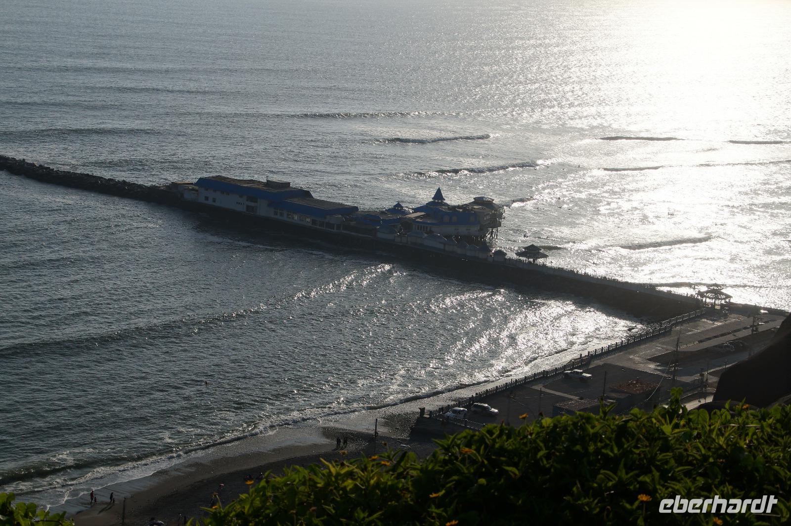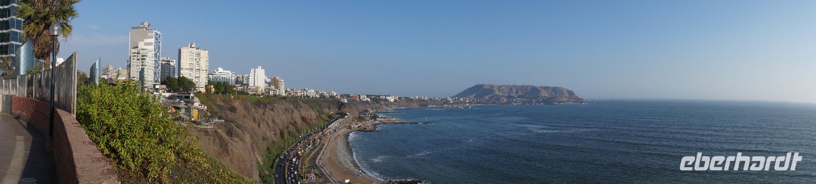 Unser letzter Tag ist angebrochen, zumindest in Perú. Nach dem Frühstück holt uns Franz zu einer Stadtrundfahrt ab. Zunächst ging es durch Miraflores, das Stadtviertel der Reichen und Schönen, welches ursprünglich mal als Ausflugsort für Sommerfrischler gegründet worden war. Damals lag Miraflores noch sieben Kilometer außerhalb von Lima. Etwas weniger reich und etwas weniger schön: San Isidro, nicht mehr direkt am Meer gelegen, aber zwischen Miraflores und Lima. Hier fanden sich viele Häuse im exotischen Stil, wobei das exotisch aus peruanischer Sicht zu bewerten ist: Also nicht spanischer Kolonialstil bzw. Neokolonialstil, sondern beispielsweise im britischen Tudor Style, also Fachwerk. Heute sind hier auch einige Banken und Botschaften untergebracht.