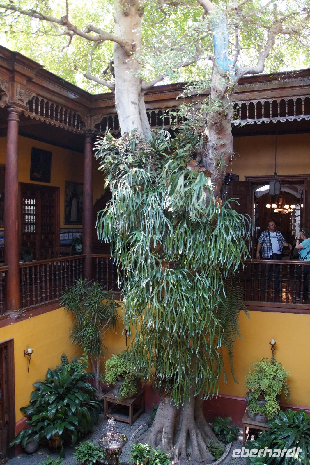 Franz wartet auf uns an der Ecke zwischen Rathaus und Präsidentenpalast, denn unser jetziges Ziel ist die Casa de Aliaga, in die man nur mit vorheriger Anmeldung kommt. Familie Aliaga wohnt hier, seitdem Francisco de Pizarro, der Chef der Conquista Perús, seinem Freund Jerónimo de Aliaga hier, ganze nahe seiner eigenen Residenz, die heute vom Präsidentenpalast überbaut ist, 1535 ein Haus bzw. eine Parzelle zugewiesen hat, heute in der 17. Generation. Und obwohl die Familie hier noch wohnt, ist das Haus zu gewissen Zeiten und nach vorheriger Anmeldung für den Besucherverkehr geöffnet. In seiner grundsätzlichen Architektur ist das Haus, das - wie auch die Katehdrale - auf einer alten Pyramide steht, noch dasselbe, wie im 16. Jhdt., auch wenn man das auf den ersten Blick natürlich nicht sieht. Hervorstechend ist vor allem das Mobiliar und die Wandverkleidungen aus dem 19. oder 20. Jahrhundert.