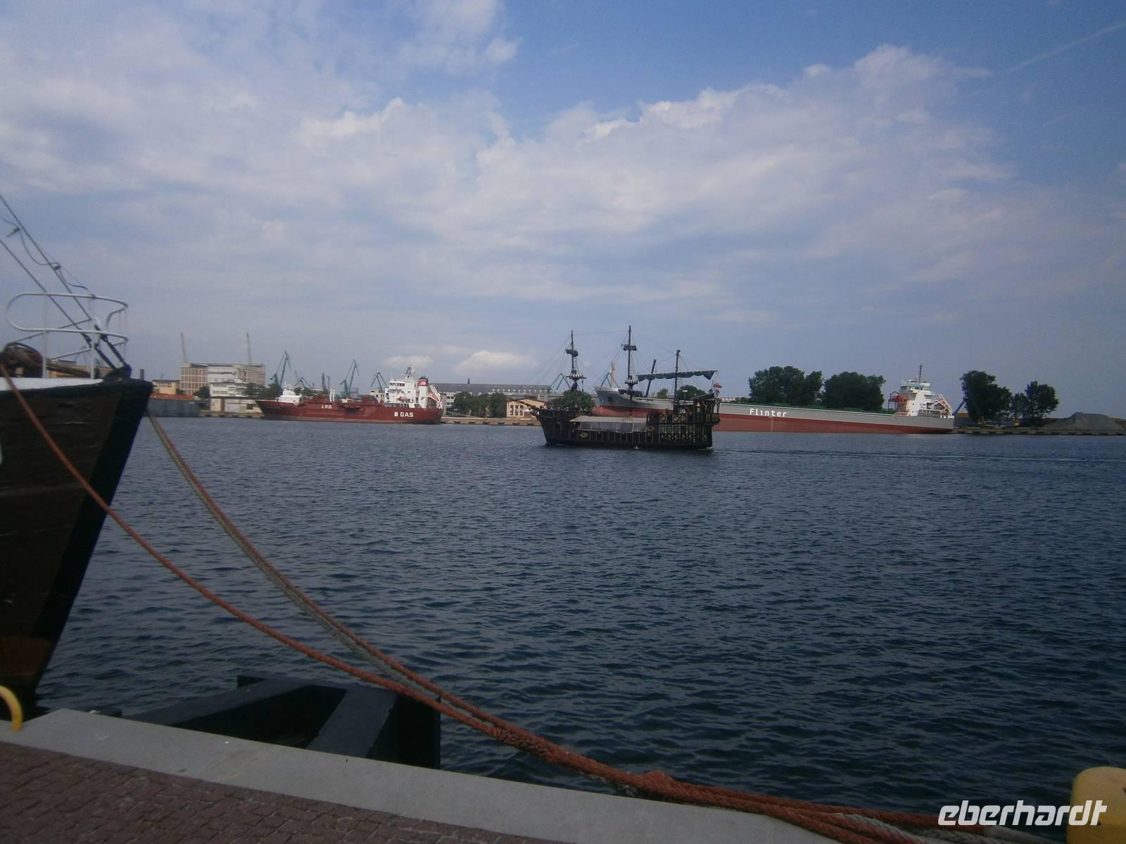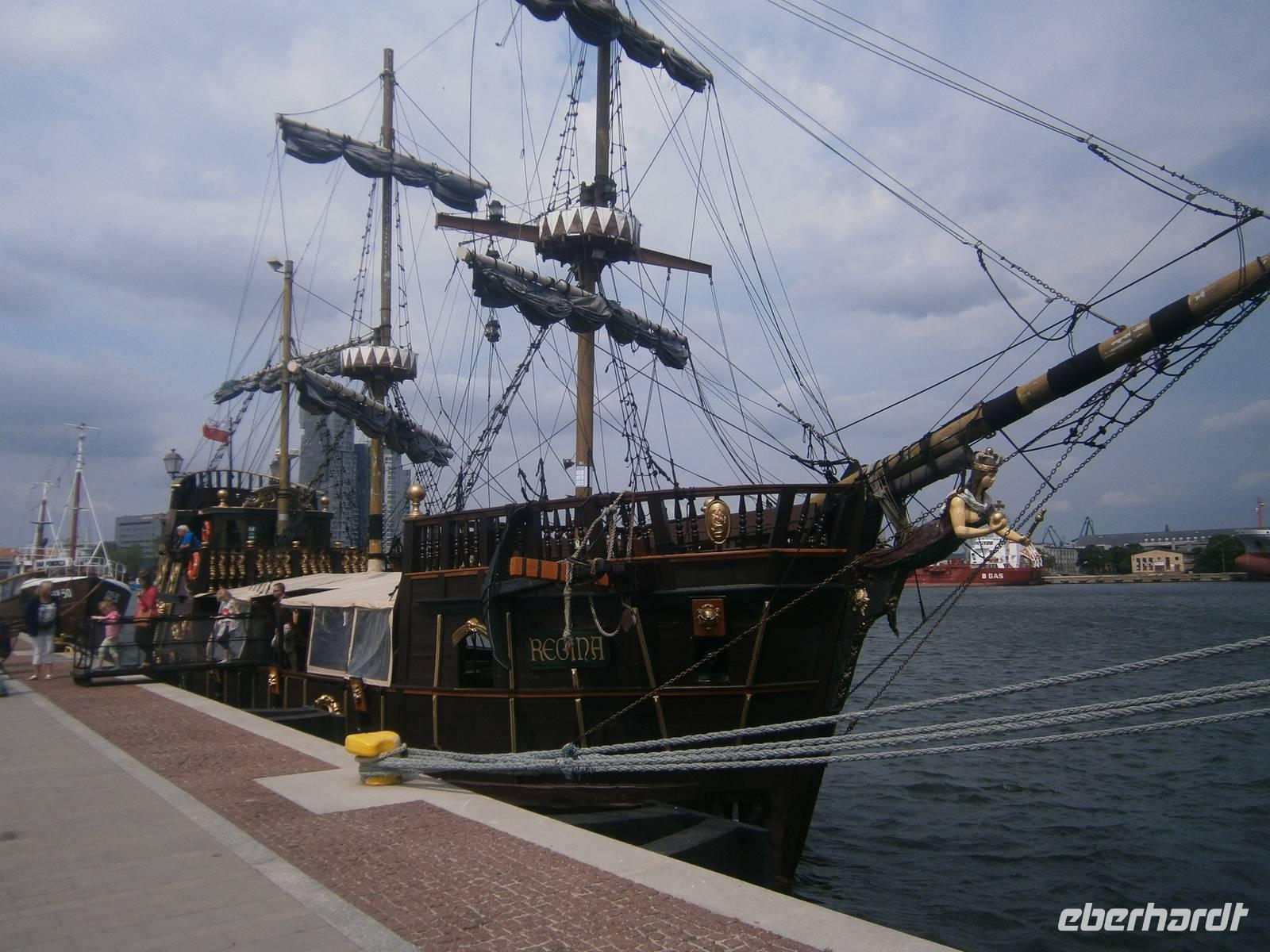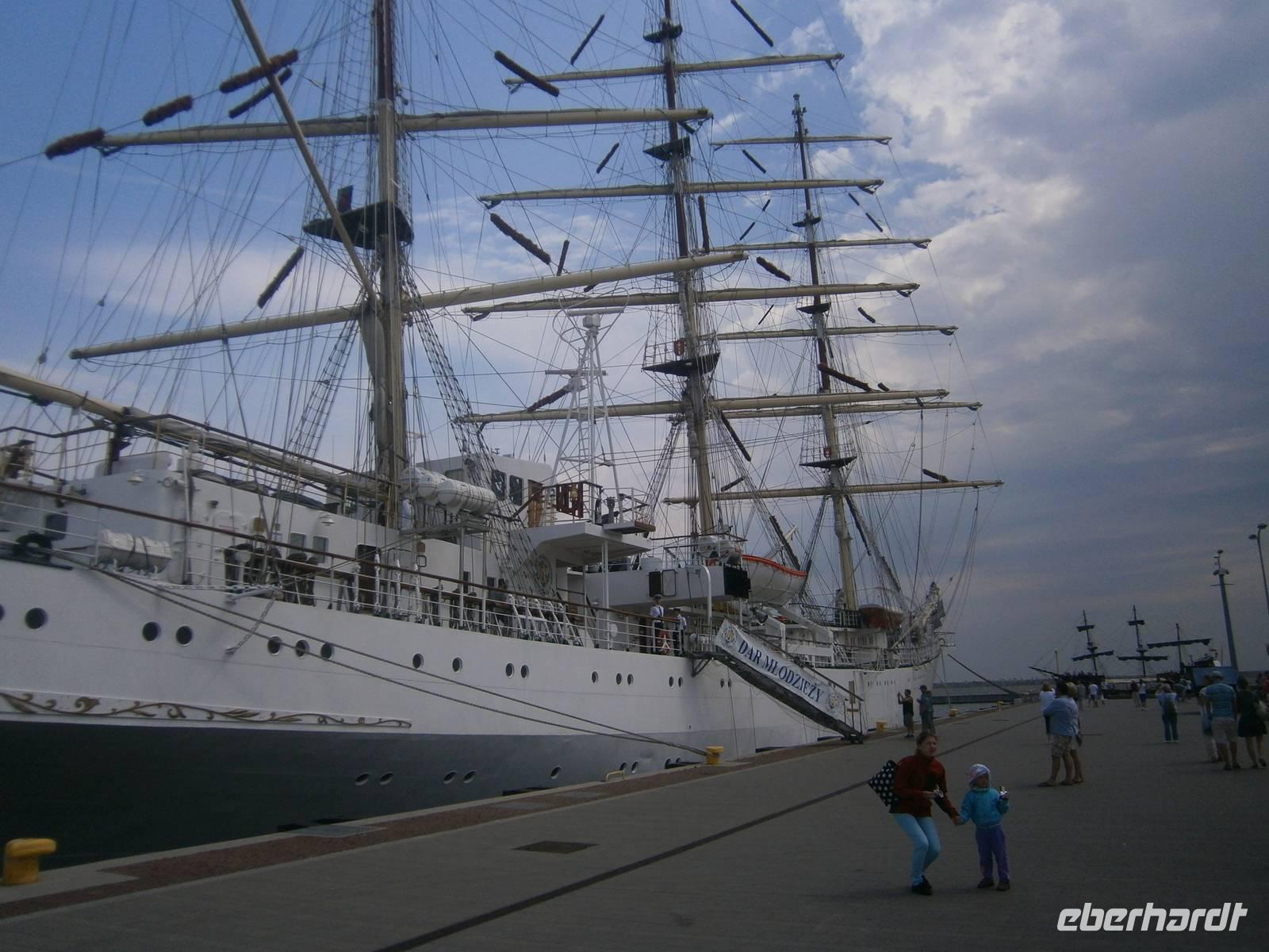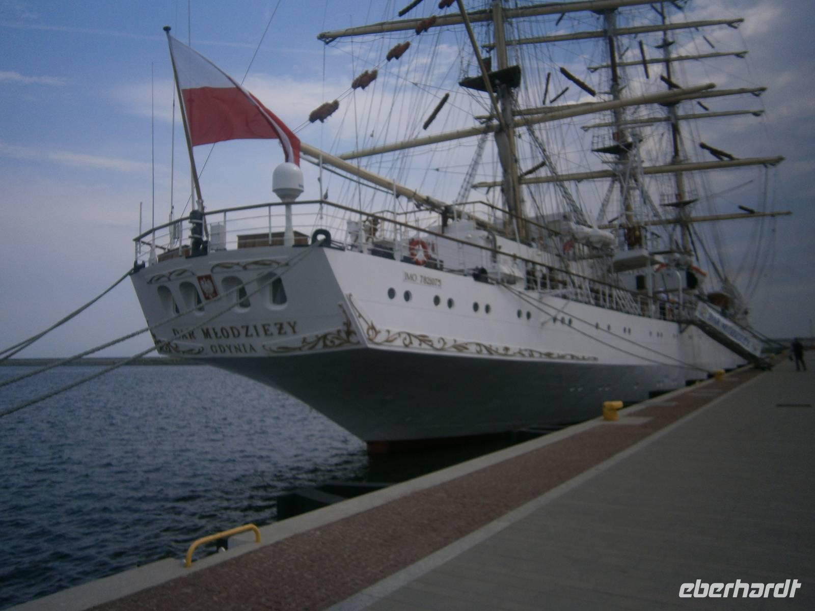 In Gdansk fuhren wir zuerst ab Hotel mit dem Bus über Sopot nach Gdynia, wo wir einen Fotostop im Hafen machten. Die zwei, dort vor Anker liegenden Museumsschiffe und das aktuelle Segelschulschiff des Landes, waren begehrte Fotoobjekte. Auf der Fahrt dorthin erzählte uns unser Stadtführerin Beata vieles zur Geschichte der Dreistadt Gdansk, Sopot und Gdynia.