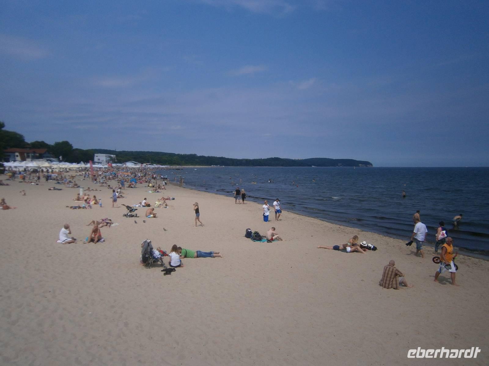 In Sopot beeindrucken die aus Holz gezimmerte 150 Jahre alte, 500 m in die Ostsee ragende Mole, das Grand Hotel, das neu gestaltete Kurzentrum mit seinen vielen Möglichkeiten der Erholung und Entspannung sowie das rege Treiben auf der Strandpromenade. Viele Gaststätten, Restaurants und Cafe's runden das Bild ab.