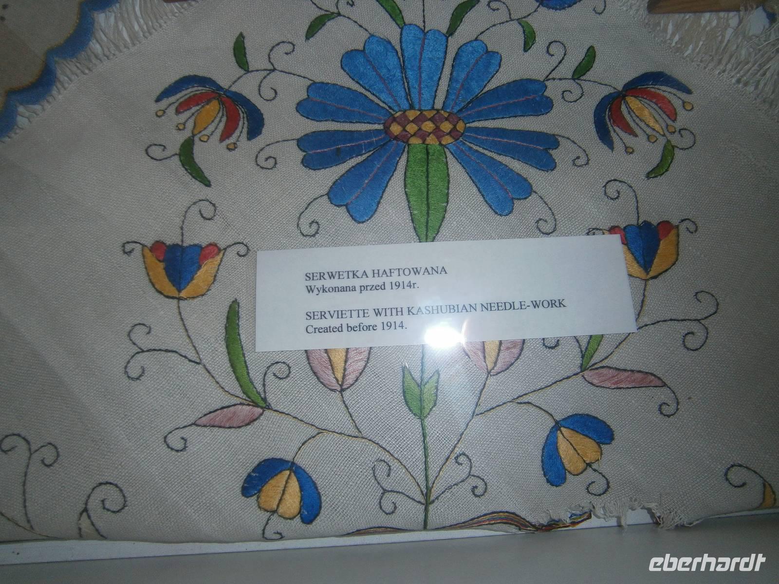 Am vierten Tag unserer Reise besuchten wir diese zweisprachige ethnografische Region, die sich nördlich der Tucheler Heide bis zur Ostseeküste erstreckt. Beim Besuch des „Kaschubischen Museums" in Kartuzy, dem Hauptort dieses Gebietes, machten wir uns mit Geschichte und Leben der Angehörigen dieser Volksgruppe vertraut. Leider konnten wir die Abteikirche des Karthäuser-Ordens in Kartuzy nicht von Innen besichtigen, da gerade ein Gottesdienst stattfand. Die notwendigen Erläuterungen zu den Außenanlagen und der Kirche gab uns unsere örtliche Reiseleiterin Beata. Entsprechende Informationen besorgten sich unsere Gäste auch im vorhandenen Ifo-Zentrum. In Chmielno, gelegen an einem der Radunski-Seen, nutzten die Reiseteilnehmer die Freizeit für den Besuch einer Töpferei, einem Spaziergang oder einem Mittagessen in einem Restaurant am Ufer des Sees.