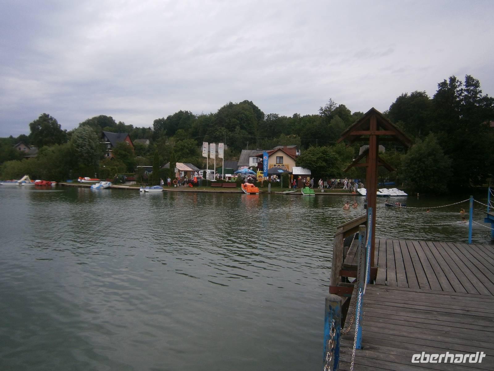 In Stolemek, gelegen am Ostrzyckie-See, machten wir eine weitere Freizeit. Hier konnte man Baden, ein Tretboot ausleihen, ein Eis schlecken, einen Spaziergang machen oder sich ganz einfach entspannen. Der See hat eine Fläche von 328,95 ha, ist 21 m tief, die Länge beträgt 6360 m und die größte Breite 760 m. Leider kippte das Wetter und es begann kräftig zu regnen. Der Bus brachte uns anschließend nach Zuckowo. Dort erfolgte in einem örtlichen Restaurant das kaschubisches Abendessen mit der dazugehörigen Folklore. Die Mutigsten besuchten bei strömenden Regen vorher noch das „Norbertinnen-Kloster" im Ort.