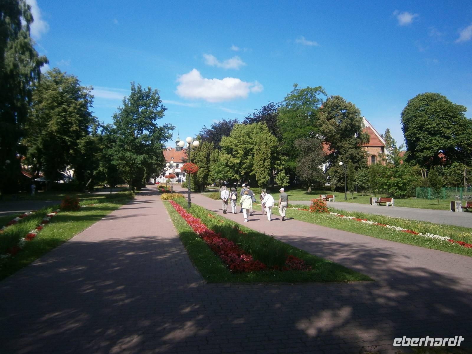 Der nächste Tag war den nördlichen Masuren vorbehalten. Zuerst besuchten wir das Städtchen Mragowo. Lukas, unserer Reiseleiter, erklärte uns alles zu seiner Heimatstadt. Wir sahen den Magistratssee, die Mole, das Rathaus sowie die Evangelische und Katholische Kirche und den „Polenmarkt". Informiert wurde auch über die ehemalige Synagoge.
