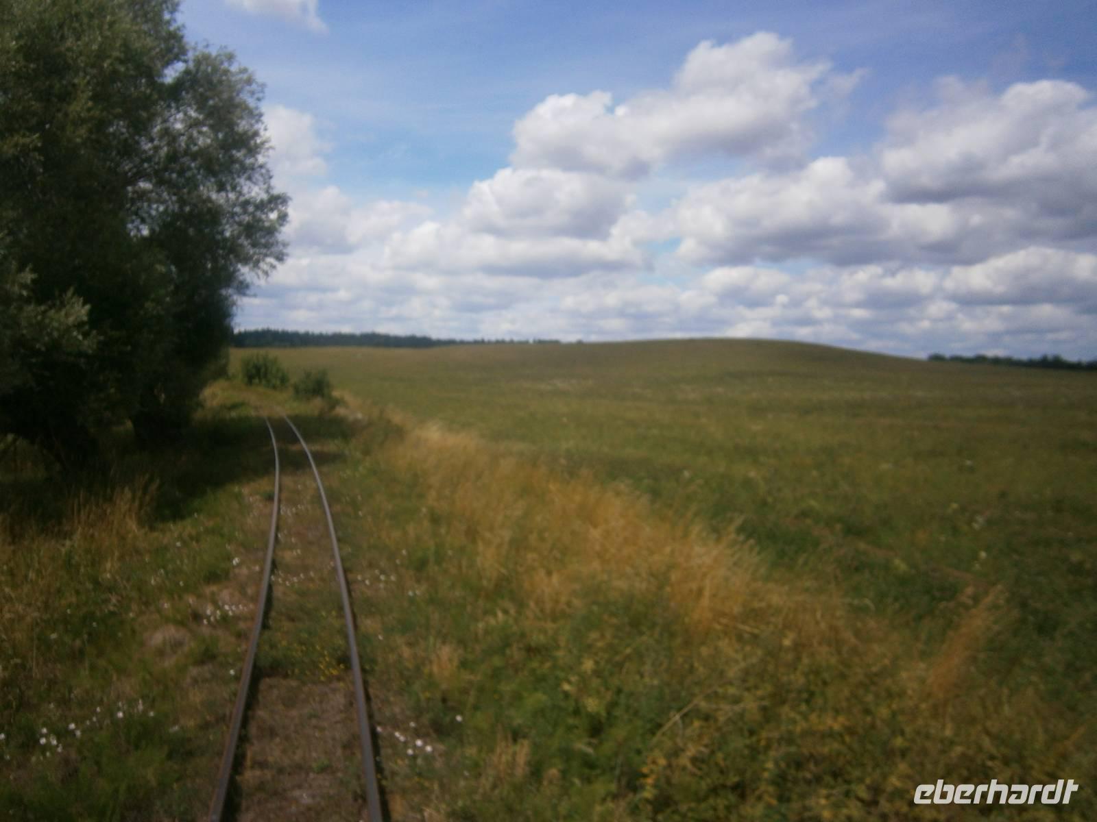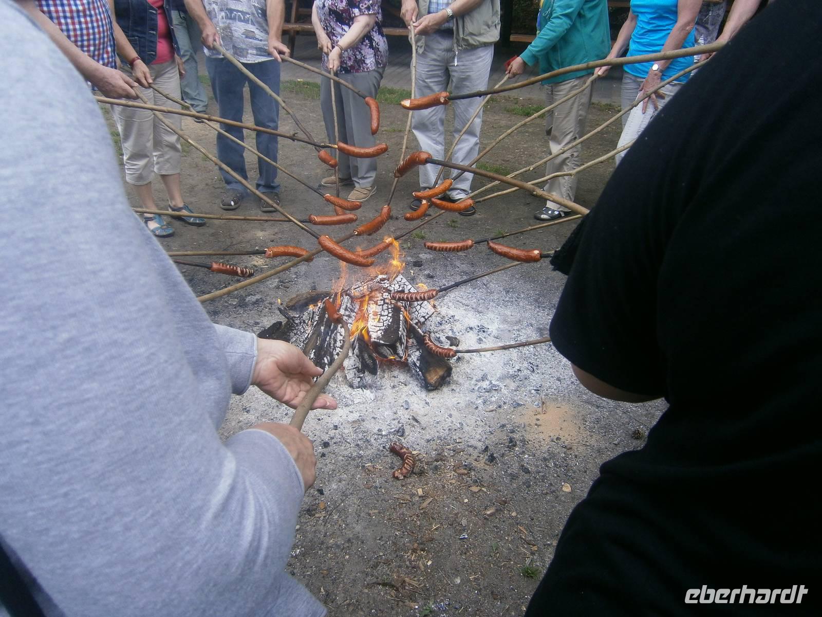 Mit einem, von einer Diesellok gezogenen Zug, begaben wir uns auf eine Fahrt durch die sog. „Buckelmasuren" nach Sypitki, wo im Wald ein Picknick für uns vorbereitet war. Bei Akkordeonklängen, verspeisten wir das polnische Nationalgericht Bigos und jeder Gast bereitete sich am Lagerfeuer eine leckere Wurst zu. Dazu gab es Bier, Wodka, alkoholfreie Getränke und Kaffee. Die Fotografen unter unseren Gästen nutzten die zahlreichen Fotomotive, die der Picknickplatz, der Haltepunkt und der nahe gelegene Fluß boten.