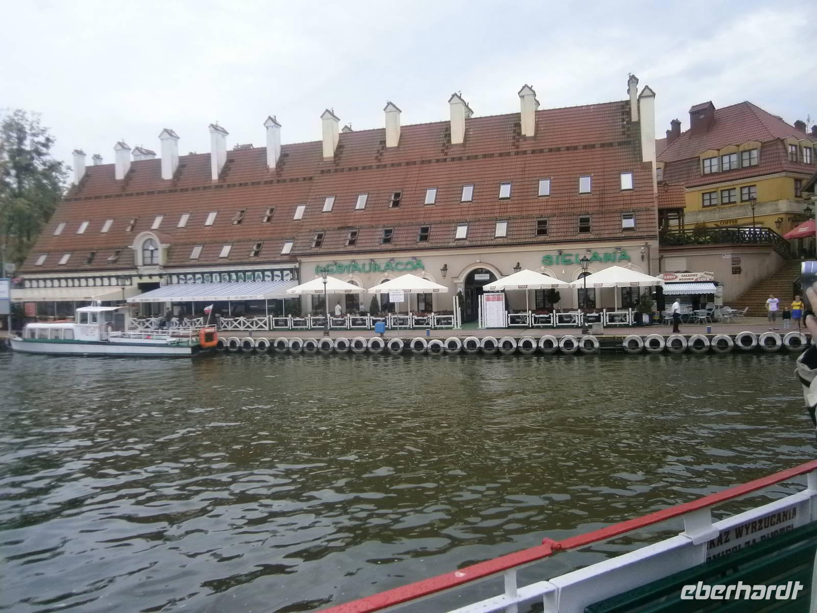 Weiter ging die Reise nach Mikolajki, dem „Venedig des Nordens". Hier in diesem Urlaubsort bestiegen wir ein Motorschiff und schipperten über den Mikolajkener See zum Spirdingsee, dem größten, der Masurischen Seen, und wieder zurück. Da sich das Wetter gebessert hatte erfolgte im Anschluß durch Lukas, unserem masurischen Reiseleiter, der Rundgang durch Mikolajki. In einem gemütlichen Fischlokal im Zentrum des Ortes nahmen unsere Gäste ihr Fischessen, Zander mit Pfifferlingen, ein. Die noch zur Verfügung stehende Freizeit nutzten die Mitglieder der Reisegruppe für persönliche Unternehmungen.