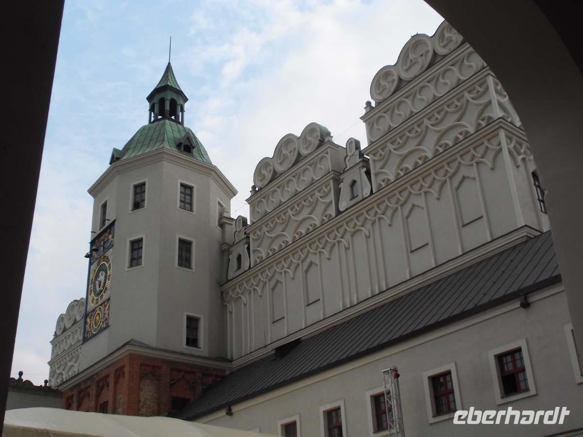 Wir reisen zunächst nach Norden über Berlin und durch die Uckermark nach Stettin. An der Grenze schnell noch Geld tauschen, etwas essen und schon sind wir am Nachmittag in Stettin, der alten Hansestadt. Berlins Hafen nannte man die Stadt vor dem 2. Weltkrieg. Dieser hat dem Ort schwer zugesetzt. Doch unsere Gästeführerin zeigt uns die schönen Ecken, die erhalten bleiben. So z. B. die Haken Terrassen, das Wahrzeichen der Stadt, so benannt nach dem am längsten amtierenden Bürgermeister hier. Auch das wieder schön errichtete Schloss der Grafen von Pommern, sowie den Alten Markt nehmen wir in Augenschein. Kreuz und quer geht es durch die grüne Stadt mit den schönen Parks und Villenvierteln. Doch der erste Reisetag vergeht nun wie im Flug. Unser schickes Hotel direkt im Zentrum haben wir schon am Nachmittag bezogen. Nun nehmen wir unser opulentes Abendmenü ein und haben danach noch Zeit ein zweites mal in die Stadt zu schauen, oder aber die größte Shoppingmall Polens mit über 180 Geschäften zu besuchen, die direkt hinter unserem Gebäude liegt.