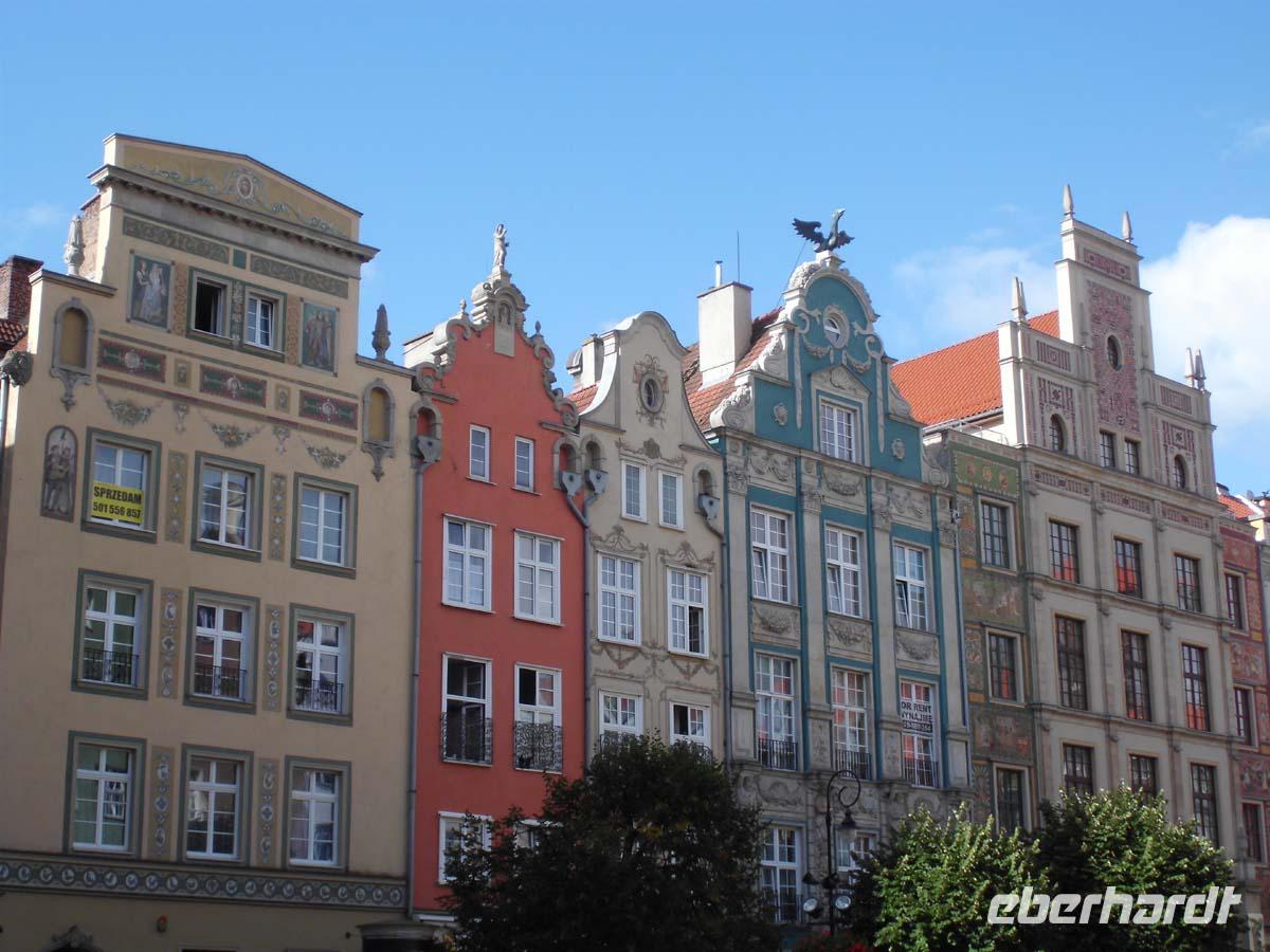Uns zieht es weiter nach Nordosten. Über Karlino reisen wir nach Stolp, dem heutigen Slupsk. Während einer ausgedehnten Mittagspause bestaunen wir das riesige Rathaus im neogotischen Stil. Aber auch ein altes Stadttor und die Stadtkirche in echter Backsteingotik haben sich erhalten. Hinter Köslin erreichen wir den östlichsten Teil der Pommerschen Seenplatte: die Landschaft Kaschubien. Es wird hügeliger in der so genannten kaschubischen Schweiz. Eingebettet in der welligen Landschaft liegt das uralte Kartäuserkloster Kartaus (Kartuzy). Die Kirche aus dem Jahr 1380 trägt ein seltenes barockes Walmdach. Und im Innern lässt sich ein so reich geschnitztes Chorgestühl sehen, das es seinesgleichen sucht. Schon ist es Nachmittag als wir Danzig erreichen. Wir beziehen unser Hotel direkt neben der Altstadt. So ist noch Zeit, sofort in die riesige Altstadt zu gehen und sich von der wiedererstandenen Pracht der reichen Bürgerhäuser und himmelstrebenden Kirchen beeindrucken zu lassen. Wir beschließen den Tag bei einem opulenten Abendmenü.