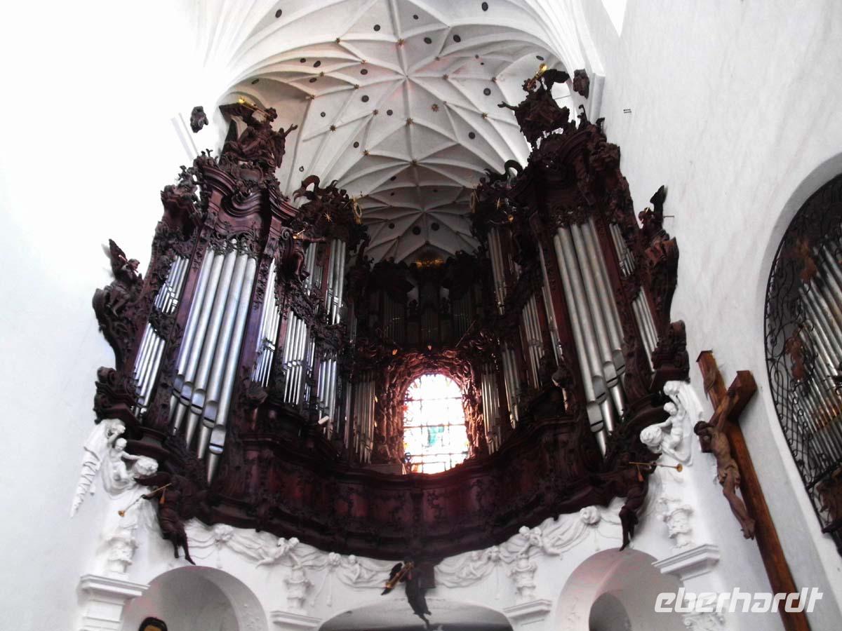 Nach dem Büffet des Frühstücks treffen wir unseren örtlichen Guide und gleich fahren wir in die Stadt. Die Sonne steht günstig und so bietet sich das Panorama Danzigs mit den mächtigen Kirchen, dem Krantor und Giebelhäusern an der Mottlau in seiner gesamten Pracht dar. Wir schreiten durch das Frauentor, schlendern durch die Gassen über den Königsweg, am Rathaus vorbei, und werfen einen Blick in die Marienkirche, der größten Backsteinkirche der Welt. Ein wenig Freizeit lockt uns nach dem Besuch einer Bernsteinschleiferin noch in die vielen Cafes. Die prächtigen Fassaden erinnern an die Hansezeit und lassen fast vergessen, dass hier 1945 kein Stein mehr auf dem anderen stand. Nun begeben wir uns nach Gdingen, dem heutigen Gdynia an den Hafen. Hier liegen gleich drei Museumsschiffe vor Anker. Doch nun reisen wir zum Mittag nach Sopot, dem berühmtesten Seebad Polens mit ielen schicken Villen. Es liegt in der Mitte der Dreistadt, wie Gdansk, Gdynia und Sopot auch genannt werden. Nach der Inaugenscheinnahme der längsten Holzmole Europas ist Zeit, sich mit Süßem, oder leckerem Fisch etwas zum Mittag zu besorgen. Danach steht ein Besuch des Doms von Oliwa an, einer alten Zisterzienserkirche, die seit 1927 als Bischofssitz zur Kathedrale erhoben wurde. Die Orgel dort ist einzigartig und hat Register, die kaum eine andere besitzt, wie Vogelstimmen, Donner etc. Sie wurde in über 20 Jahren in der zweiten Hälfte des 18. Jh. von Johann Wulf geschaffen. Wir dürfen uns dem Klang, und auch den Bewegungen der Figuren am Schnitzwerkgehäuse während eines Konzertes hingeben. Die Kraft dieser Orgel würde auch für den Kölner Dom reichen. Am späten Nachmittag reicht es noch einmal für einen individuellen Gang in die Stadt, bevor das leckere Abendbüffet lockt.