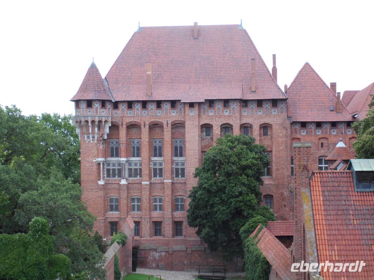 Unser Weg von Danzig nach Sensburg führt uns heute zum größten Ziegelsteinbauwerk der Welt, der Marienburg. In der 2. Hälfte des 12. Jh. begonnen, war die Burg ab 1309 Sitz des Hochmeisters des Deutschen Ordens. Nachdem 1398 der Bau des Hochmeisterpalastes abgeschlossen war, hatte man 120 Jahre lang an ihr gebaut. 21 Hektar umfasst das gesamte Burggelände. Das Hochschloss mit der Marienkirche bildet den Kern. Es ist das eigentliche Kloster. Vorgelagert ist das Mittelschloss mit dem Palast, in dem sich auch die Repräsentationsräume befinden. Davor befanden und befinden sich Wirtschaftsgebäude, die heute unterschiedlich genutzt werden. Ein überwältigender Anblick empfängt den Besucher schon vom gegenüberliegenden Ufer der Nogat. Drinnen merkt man schnell, das ein ganzer Tag fast nicht ausreicht, um alles zu erfassen. Bestaunenswert sind die verschiednen Ziegelformen, die Kunstfertigkeiten in der Architektur und die kluge Fußbodenheizung in verschiedenen Räumen. Es wird noch lange dauern, bis alles halbwegs wieder in Stand gesetzt ist, was der Zahn der Zeit oder kriegerische Handlungen zerstört haben. Am späten Nachmittag erreichen wir unser Hotel in Mragowo. Direkt am See gelegen genießen wir ein wirklich sehr reichhaltiges Abendbuffet und danach die himmlische Ruhe.