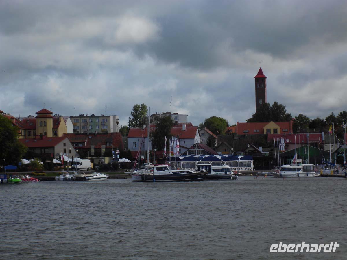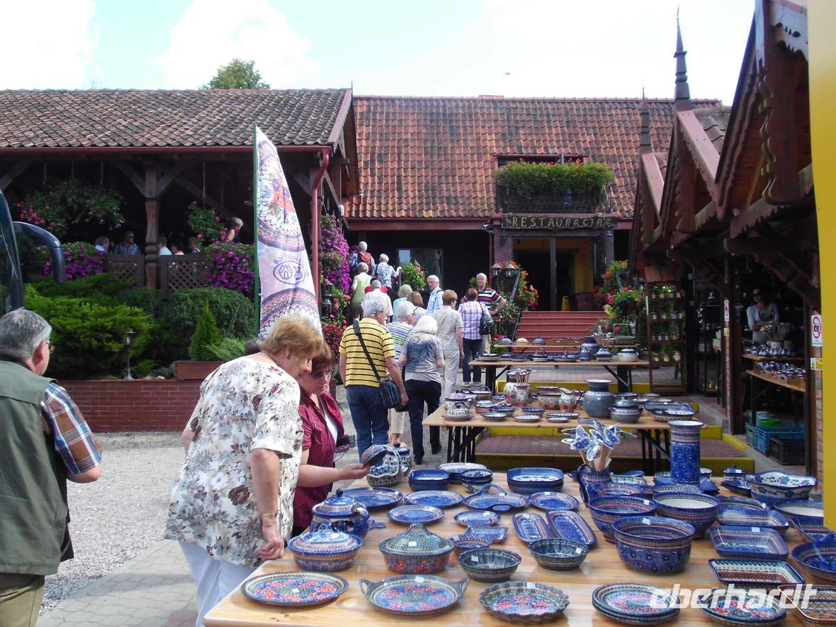 Wir unternehmen zunächst einen Spaziergang durch Sensburg. Entlang am See geht es an der uralten Kirche vorbei durch die Stadt auf einen Markt, wo man neben Kleidung und Lebensmittel auch Anglerbedarf und vieles anderes erwerben kann. Unser nächstes Ziel heißt Kleinort, der Geburtsstätte des Schriftstellers Ernst Wiechert. Das alte Forsthaus liegt mitten in der Johannisburger Heide, dem größten Waldgebiet Masurens. Hier wächst vornehmlich die Masurische Kiefer, welche bis zu 40 m hoch wird. Das Mittagessen nehmen wir in Form von wohlschmeckenden Zander in einem Restaurant in Kruttinen ein. Von hier aus sind es nur wenige Schritte bis zum Fluß Kruttyina, wo schon die Boote auf uns warten. Eine Staakenbootsfahrt auf dem Fluß ist phantastisch. Perlmuscheln funkeln im glasklaren Wasser und Biber haben am Ufer Bäume gefällt. Es umfängt uns eine urwüchsige Landschaft die fast völlig unberührt scheint. Am Nachmittag sind wir zu einer polnischen „Bauernhochzeit" eingeladen. Mit der Pferdekutsche geht es durch den tiefen Wald voller Pilze. Wir erreichen den Hof und werden mit einem Schnäpschen empfangen. Es gibt reichlich Essen, Musik und auch Tanz. Es dunkelt schon, als wir uns auf dem Heimweg machen. So erreichen wir unser Hotel bei einem glutroten masurischen Sonnenuntergang.