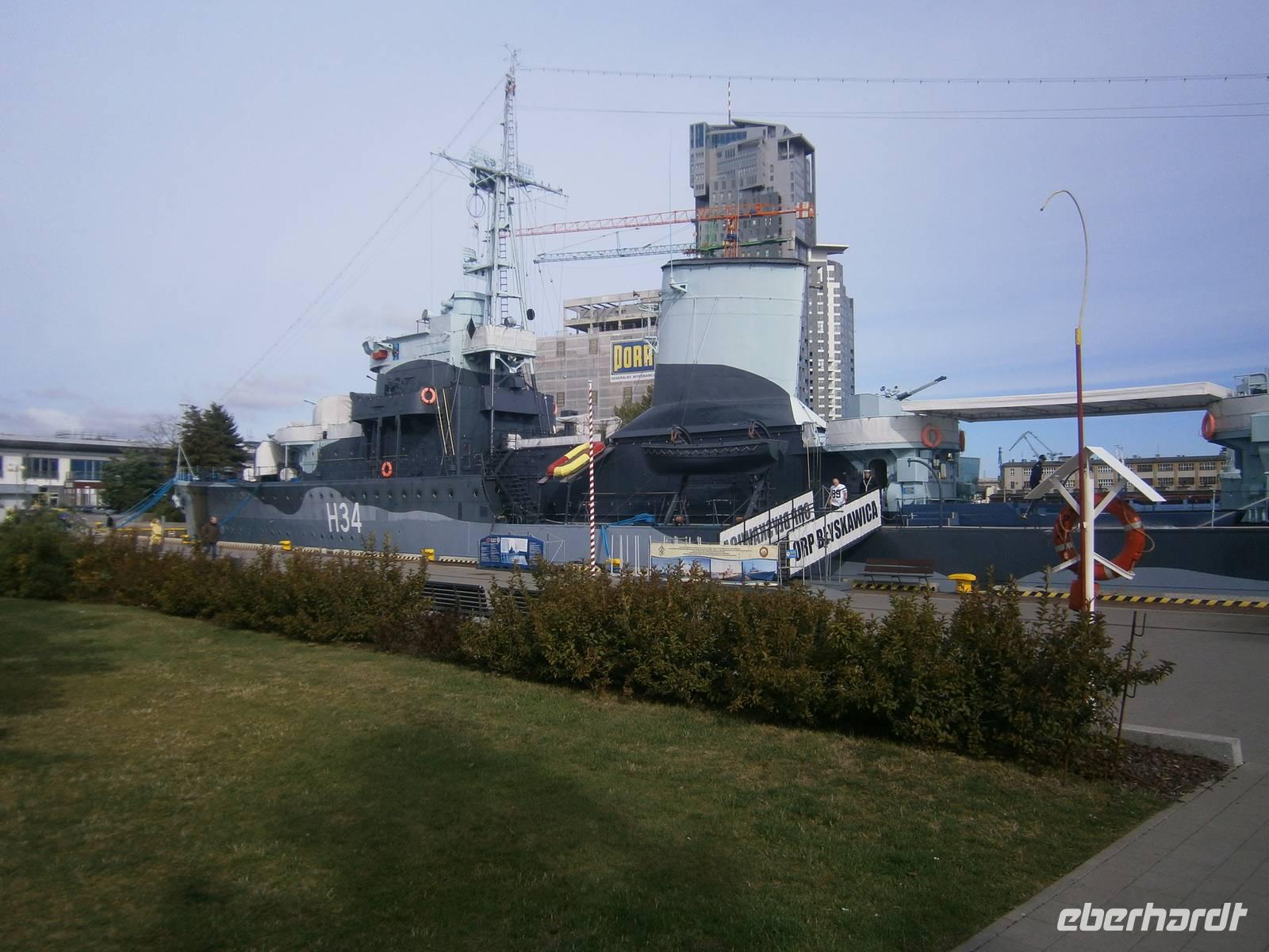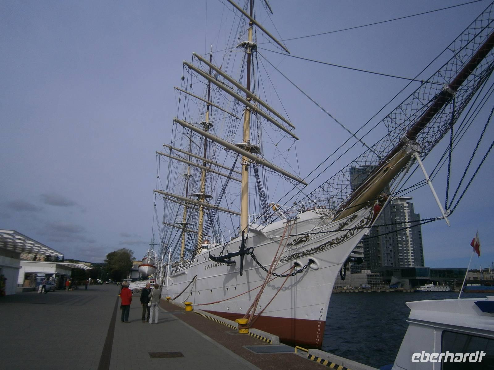 In Gdansk fuhren wir zuerst ab Hotel mit dem Bus über Sopot nach Gdynia, wo wir einen Fotostop im Hafen machten. Die zwei, dort vor Anker liegenden Museumsschiffe, waren begehrte Fotoobjekte. Auf der Fahrt dorthin erzählte uns unser Stadtführer Krysztow einiges zur Geschichte der Dreistadt Gdansk, Sopot und Gdynia.