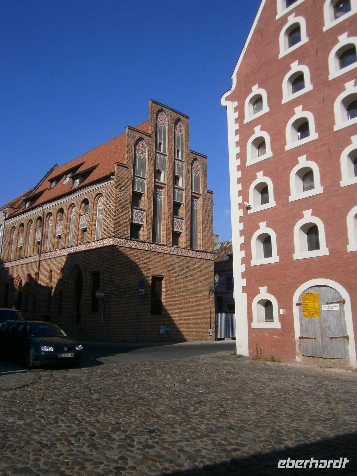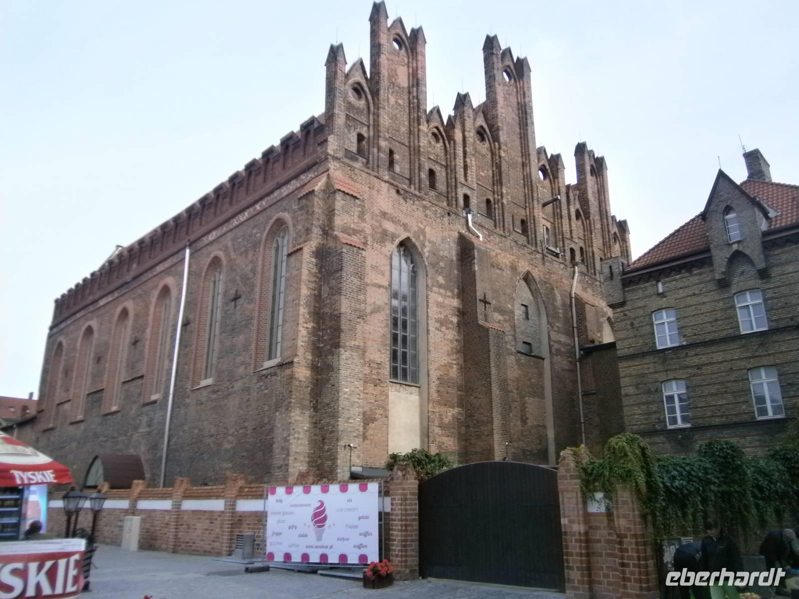 Unsere Rückreise erfolgte über Olsztyn, Ostroda, Lubawa und Brodnica nach Torun, der Stadt, die 1997 in die UNESCO-Liste des Weltkulturerbes eingetragen wurde. Am 19. Februar des Jahres1473 wurde hier Nikolaus Kopernikus geboren. Sein Geburtshaus sahen unsere Gäste bei einem kleinen Stadtspaziergang, der sie auch zur Marienkirche, dem Marktplatz mit dem Rathaus und dem Kopernikusdenkmal, den Artushof, der Johanniskirche, dem „Schiefen Turm" und dem Klostertor in Weichselnähe führte. In der Altstadt ist die Bausubstanz sehr gut erhalten geblieben, da die Stadt weder Kriegszerstörungen noch Hochwasserkatastrophen erlebt hat. Thorn, wie die Stadt früher hieß, war von 1264 bis 1411 Mitglied der Hanse und gehörte bis in das 17.Jh. zur Elite der europäischen Handelsstädte. Über Jahrhunderte war sie das Zentrum des Kornhandels. Das Getreide wurde von den Äckern Ostpolens auf der Weichsel nach Danzig verschifft. An diese Zeit der damaligen Weichselschiffer erinnert auch der Flößer-Brunnen am Rathaus. Ein Flößerjunge lockt mit seiner Geige die Frösche aus der Stadt.