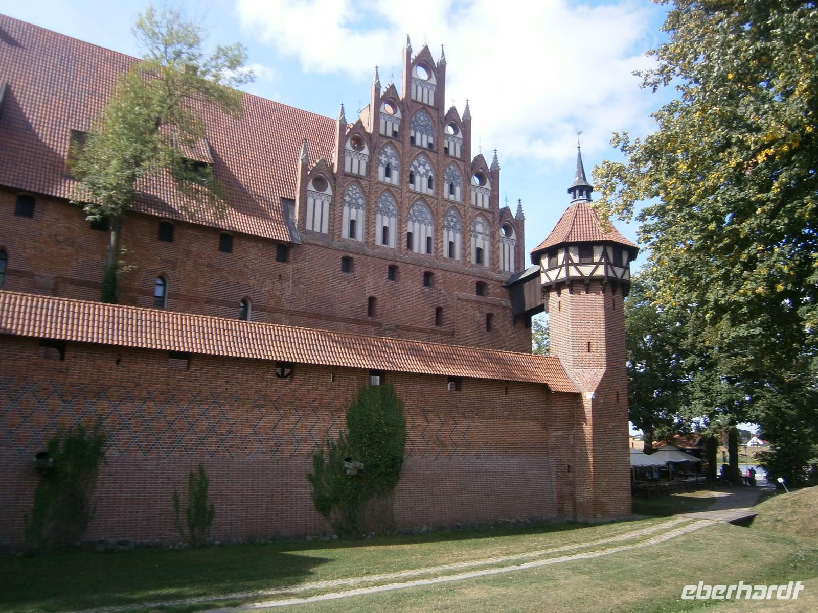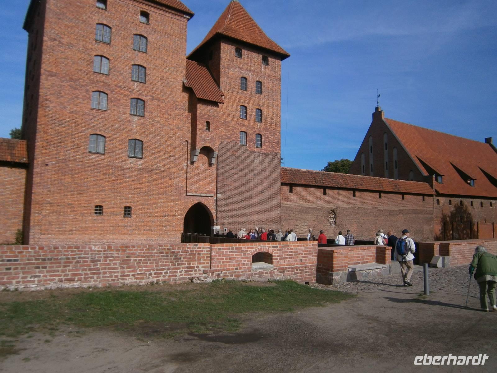 Auf unserer Reise in Richtung der Masuren statteten wir der größten Ordensritterburg in Polen einen Besuch ab. Die Marienburg, ein Kunstwerk der Wehr-und Residenzarchitektur des späten Mittelalters wurde von unserer Reisegruppe unter Leitung eines Burgführers in Augenschein genommen. Die weltgrößte gotische Schlossanlage nimmt eine Fläche von 21 ha ein, der Rauminhalt der Gebäude beträgt insgesamt über 250.000 Kubikmeter. Sie gilt als größtes von Menschenhand errichtetes Backsteinbauwerk.