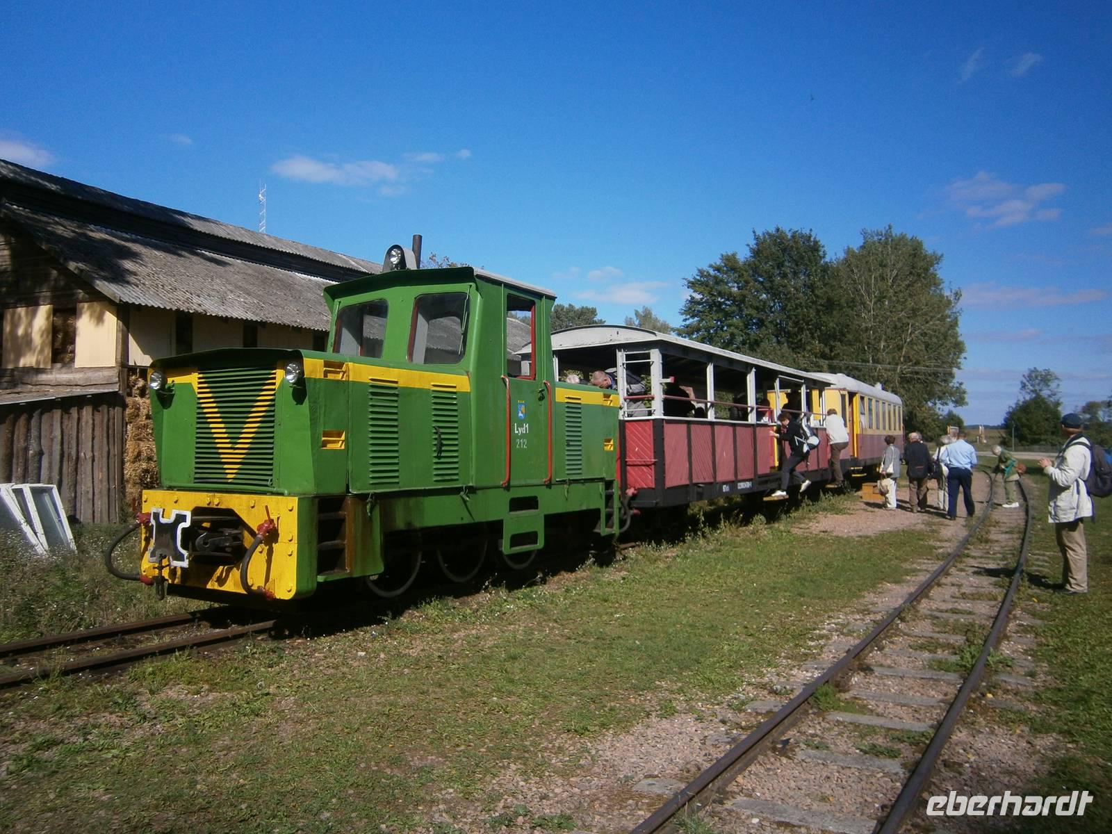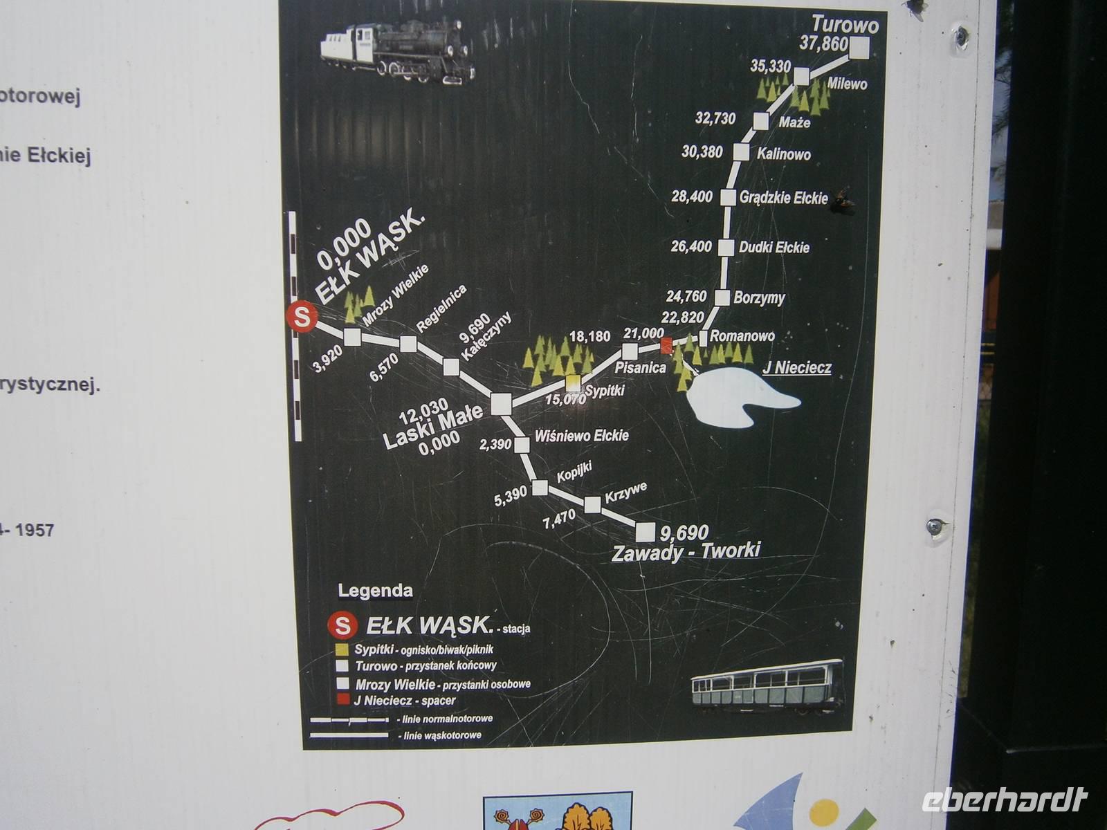 Der nächste Tag begann mit einer längeren Busfahrt nach Elk. Mit einem, von einer Diesellok gezogenen Zug, begaben wir uns auf eine Fahrt durch die sog. „Buckelmasuren" nach Sypitki, wo im Wald ein Picknick für uns vorbereitet war. Bei Akkordeonklängen, verspeisten wir das polnische Nationalgericht Bigos und jeder Gast bereitete sich am Lagerfeuer eine leckere Wurst zu. Dazu gab es Bier, Wodka, alkoholfreie Getränke und Kaffee. Nach der Rückkehr nach Elk besichtigte unsere Gruppe noch das kleine Eisenbahnmuseum im ehemaligen Bahnhof.