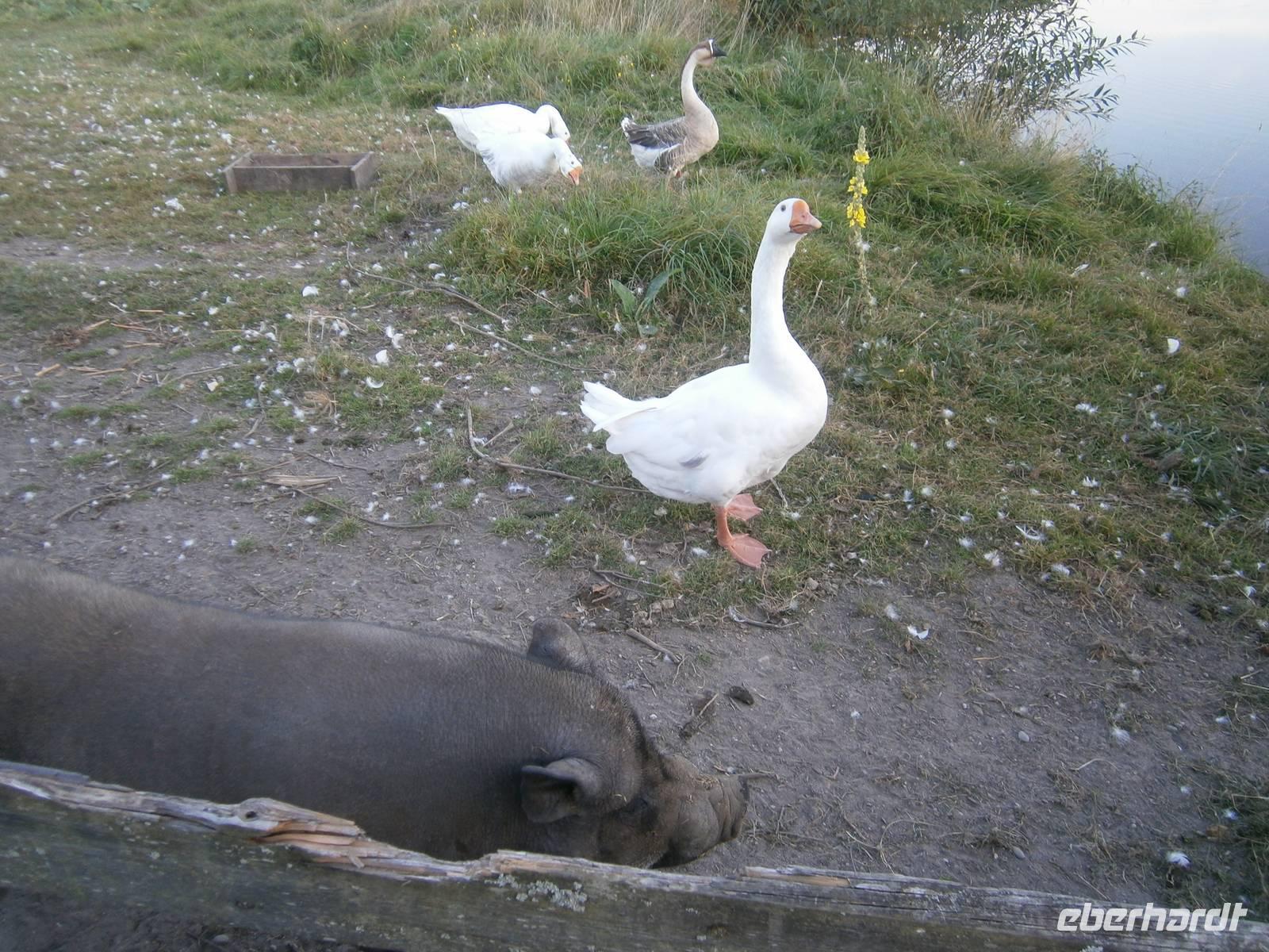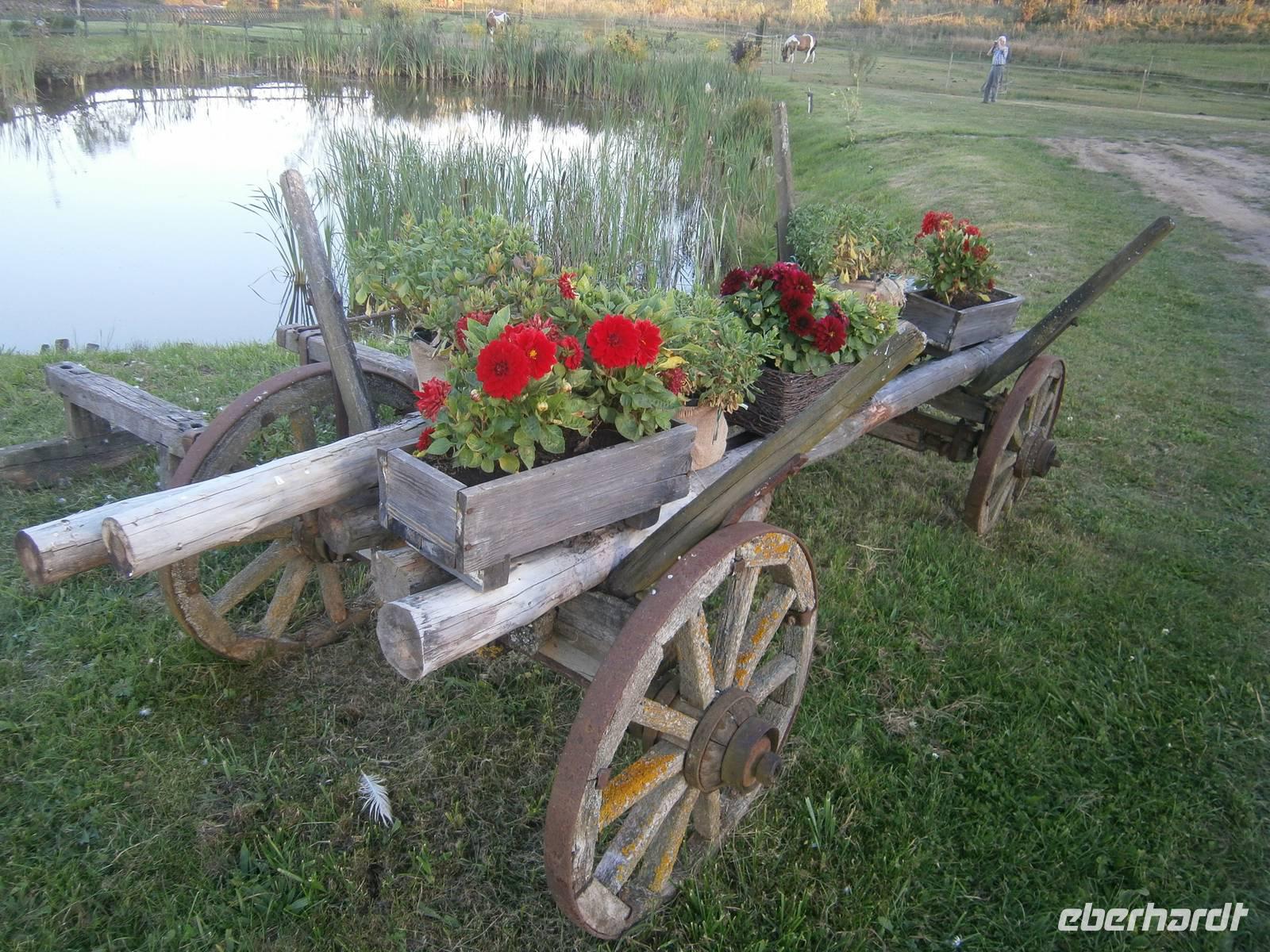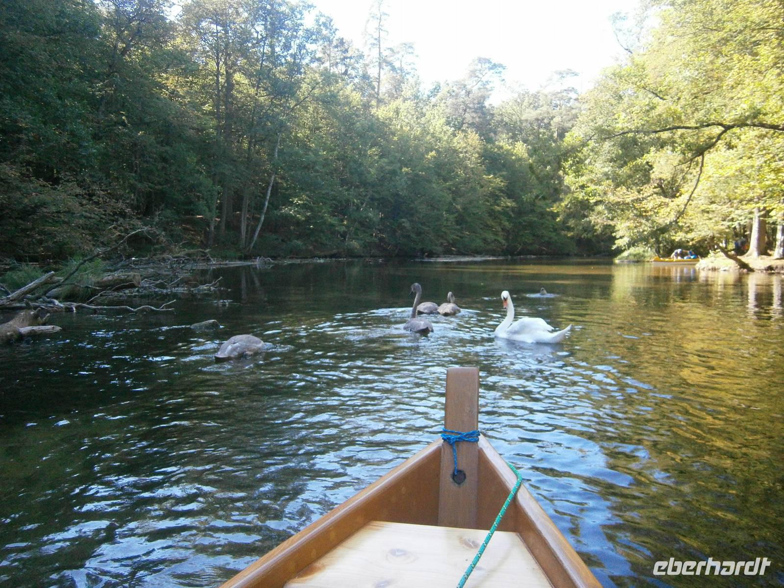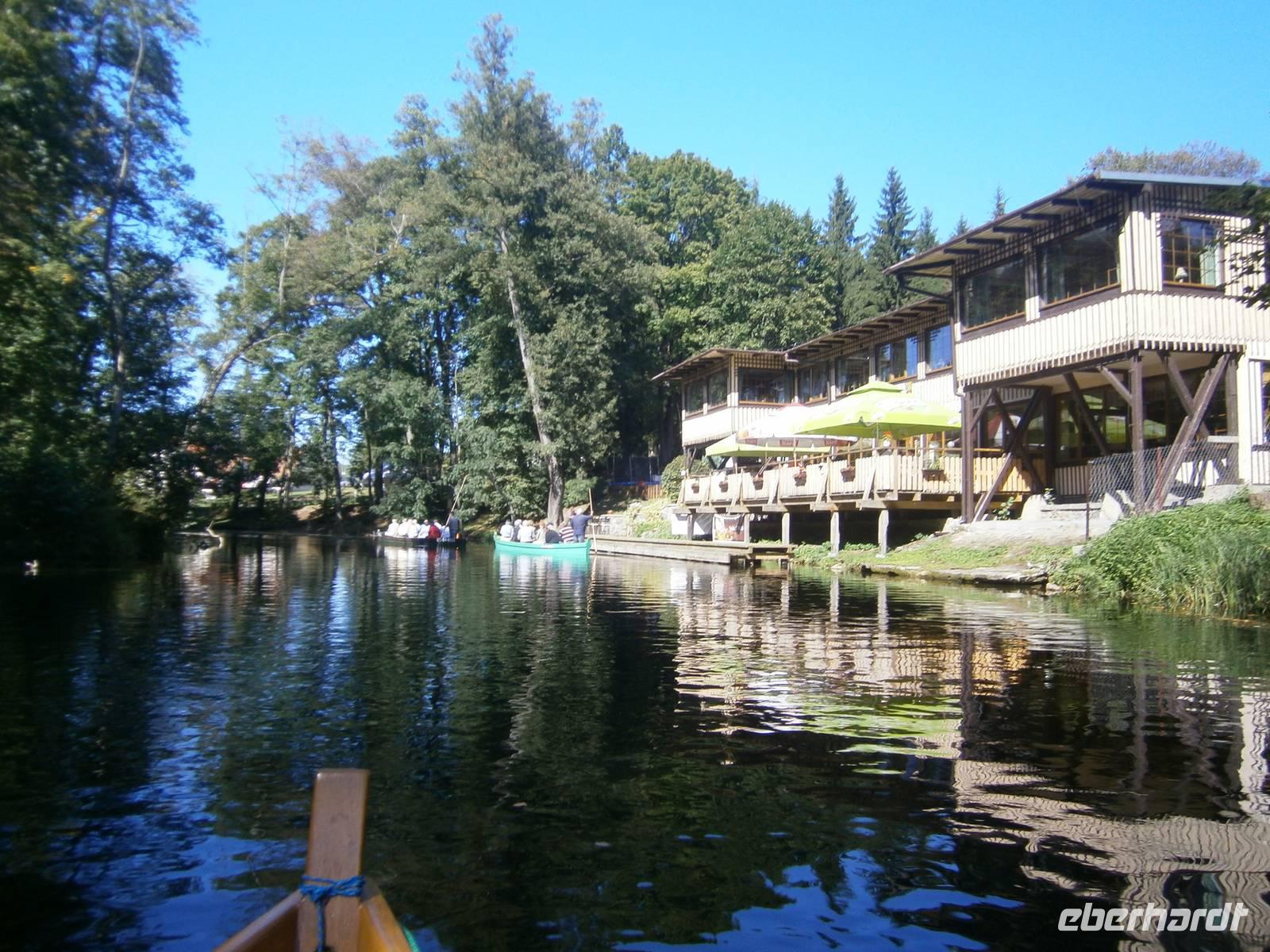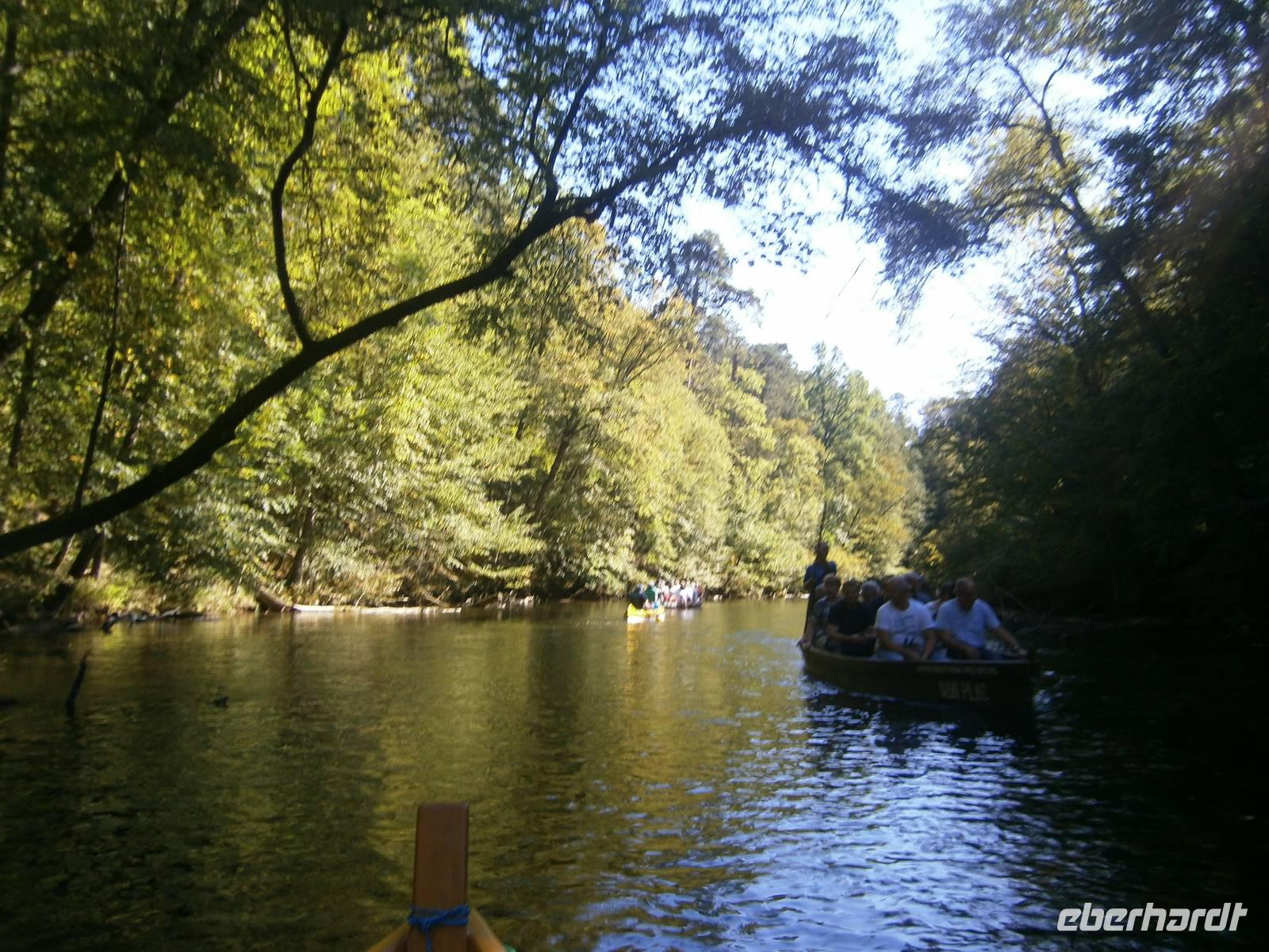 Der letzte Tag in dieser Region gehörte den südlichen Masuren. Bevor wir dorthin fuhren konnten sich unsere Gäste bei einer Führung durch Mragowo einen Eindruck von diesen Städtchen machen. Im Anschluss begaben wir uns in Richtung der „Johannisburger Heide". Wir besuchten in Kleinort das Geburtshaus des Schriftstellers Ernst Wiechert. Danach erreichten wir Krutynen, einen kleinen Ort an der Ktrutyna. Ein zünftiges Zanderessen in der Gaststätte „Mazuria" gehörte hier ebenso dazu, wie eine einstündige Staakenbootsfahrt auf dem 99 km langen Flüßchen Krutyna. Zuerst ging es durch unberührte Natur flußaufwärts anschließend mit der Strömung flussabwärts. Die verbleibende Zeit bis zum Beginn der Bauernhochzeit nutzten wir für einen Spaziergang durch den nahen Wald, wo Bäume, die bestimmte Namen tragen, zu sehen sind.