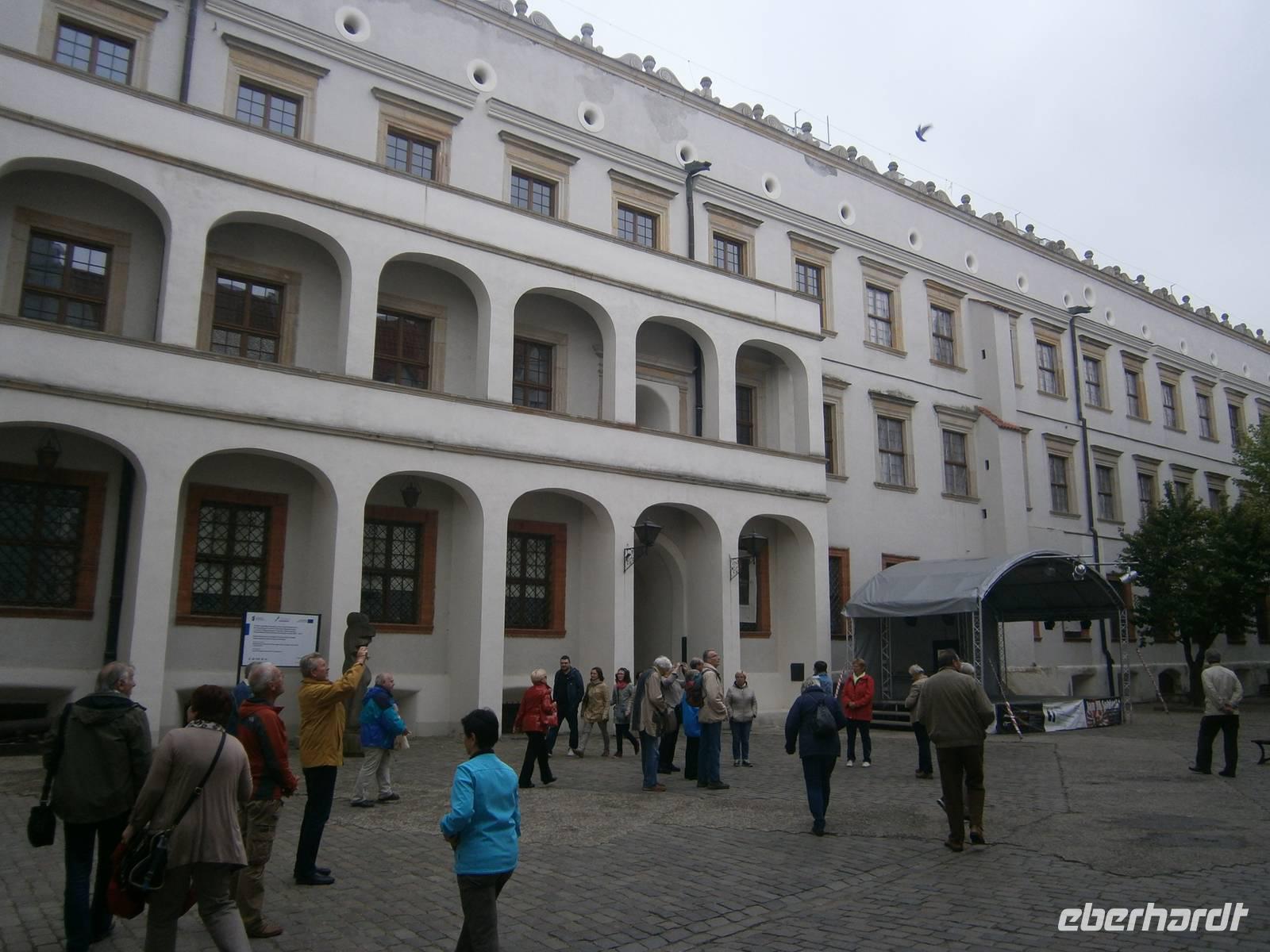 Unsere Heimfahrt erfolgte in Richtung Poznan. Unsere erste Pause machten wir in Gniezno, der ersten Hauptstadt Polens. Die Kathedrale von Gniezno ist eines der schönsten und wertvollsten Denkmäler in Polen. Hier befindet sich die letzte Ruhestätte des Hl. Adalberts und es ist der Platz, wo die ersten polnischen Könige gekrönt wurden. Vom Parkplatz aus ist der Dom gut zu sehen und zu fotografieren. Die zur Verfügung stehende Zeit nutzten viele unserer Gäste um in den Dom, obwohl Messe war, hineinzuschauen.