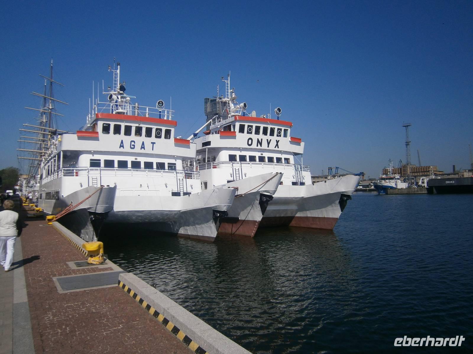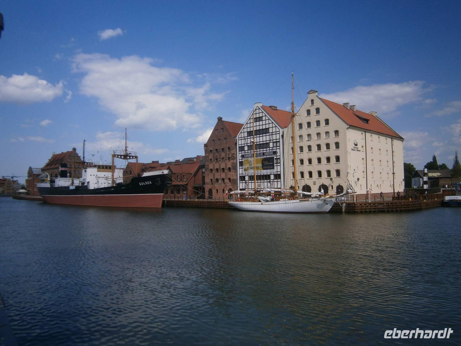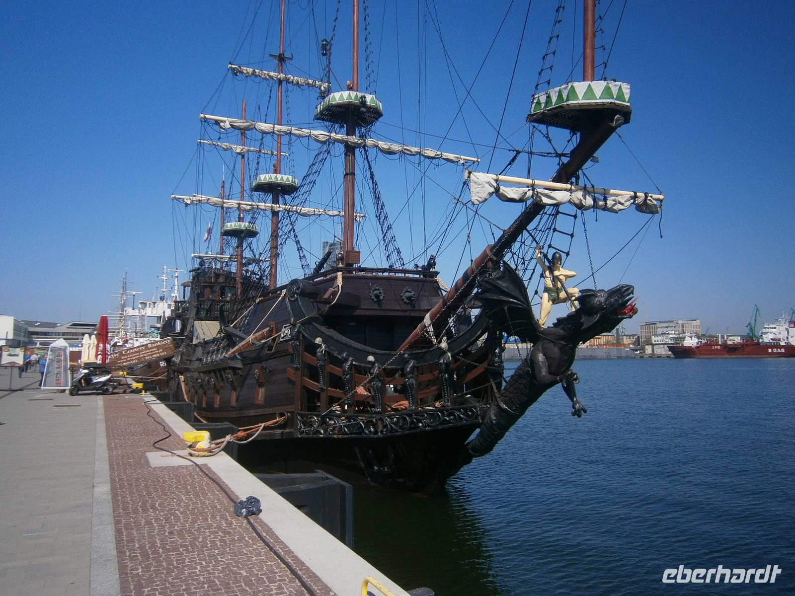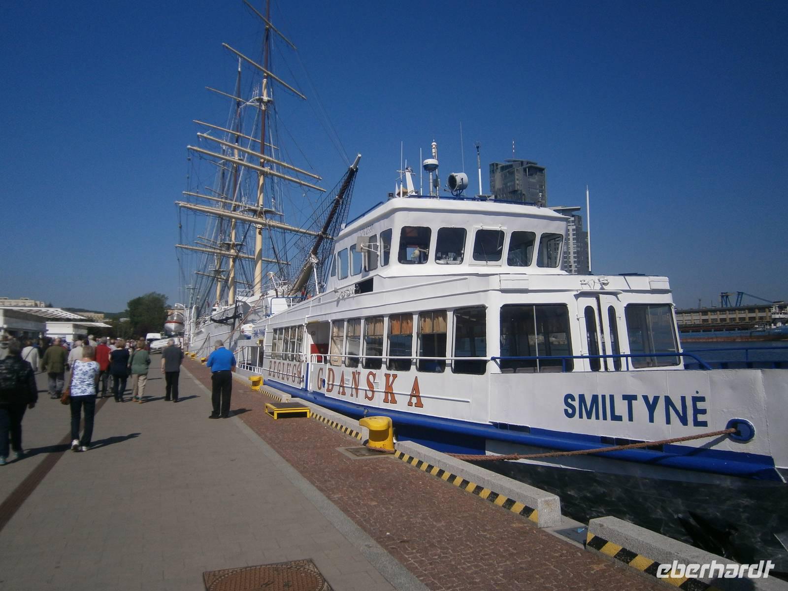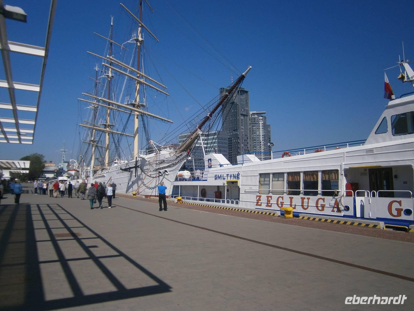 In Gdansk fuhren wir zuerst ab Hotel mit dem Bus über Sopot nach Gdynia, wo wir einen Fotostop im Hafen machten. Die zwei, dort vor Anker liegenden Museumsschiffe, waren begehrte Fotoobjekte. Auf der Fahrt dorthin erzählte uns unser Stadtführer Krysztow einiges zur Geschichte der Dreistadt Gdansk, Sopot und Gdynia.