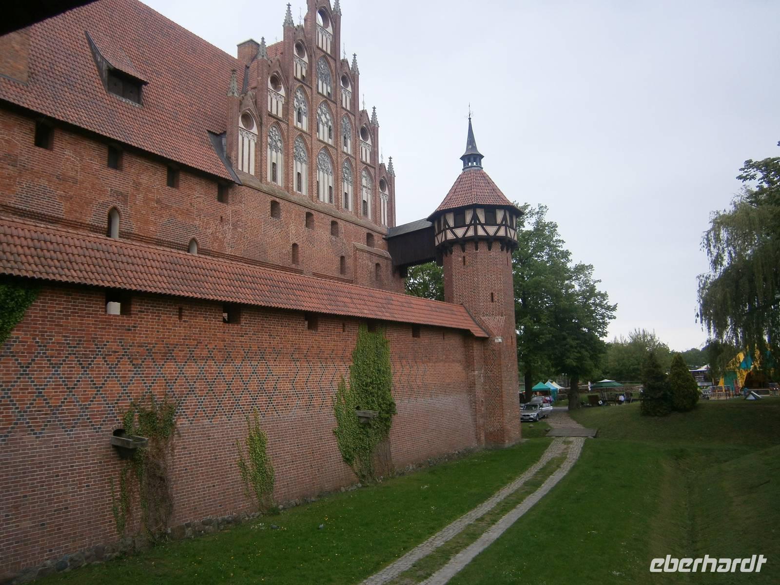 Auf unserer Reise in Richtung der Masuren statteten wir der größten Ordensritterburg in Polen einen Besuch ab. Die Marienburg, ein Kunstwerk der Wehr-und Residenzarchitektur des späten Mittelalters wurde von unserer Reisegruppe unter Leitung eines Burgführers in Augenschein genommen. Die weltgrößte gotische Schlossanlage nimmt eine Fläche von 21 ha ein, der Rauminhalt der Gebäude beträgt insgesamt über 250.000 Kubikmeter. Sie gilt als größtes von Menschenhand errichtetes Backsteinbauwerk.
