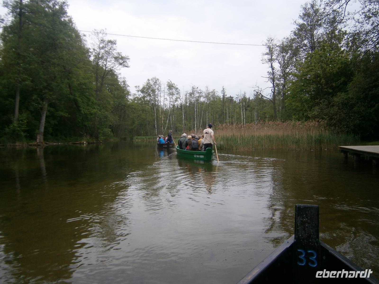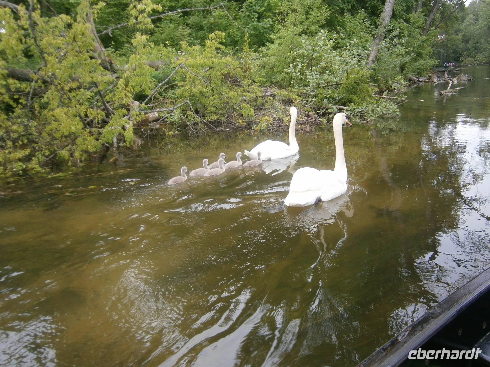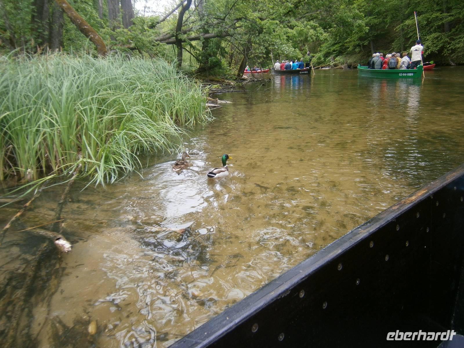 Der letzte Tag in dieser Region gehörte den südlichen Masuren. Zuerst besuchten wir in Kleinort das Geburtshaus des deutschen Schriftstellers Ernst Wiechert in der „Johannisburger Heide". Im Gedenkraum hörten wir mittels CD in deutscher Sprache Erklärungen zu seinem Leben und der Liebe zu seiner Heimat. Danach erreichten wir Krutynen, einen kleinen Ort an der Ktrutyna. Ein zünftiges Zanderessen in der Gaststätte „Mazuria" gehörte hier ebenso dazu, wie eine einstündige Staakenbootsfahrt auf dem 99 km langen Flüßchen Krutyna. Zuerst ging es durch unberührte Natur flußaufwärts anschließend mit der Strömung flussabwärts. Uns begegneten Kajakfahrer, Enten und ein Schwanenpaar mit sechs niedlichen Jungen. Im Wasser sahen wir zahlreiche Fische und „Blutsteine", zu denen uns Lukas die entsprechende Legende erzählte. Ein kleines Museum mit präparierten Tieren dieser Region und ein kleiner Markt rundeten den Besuch ab.