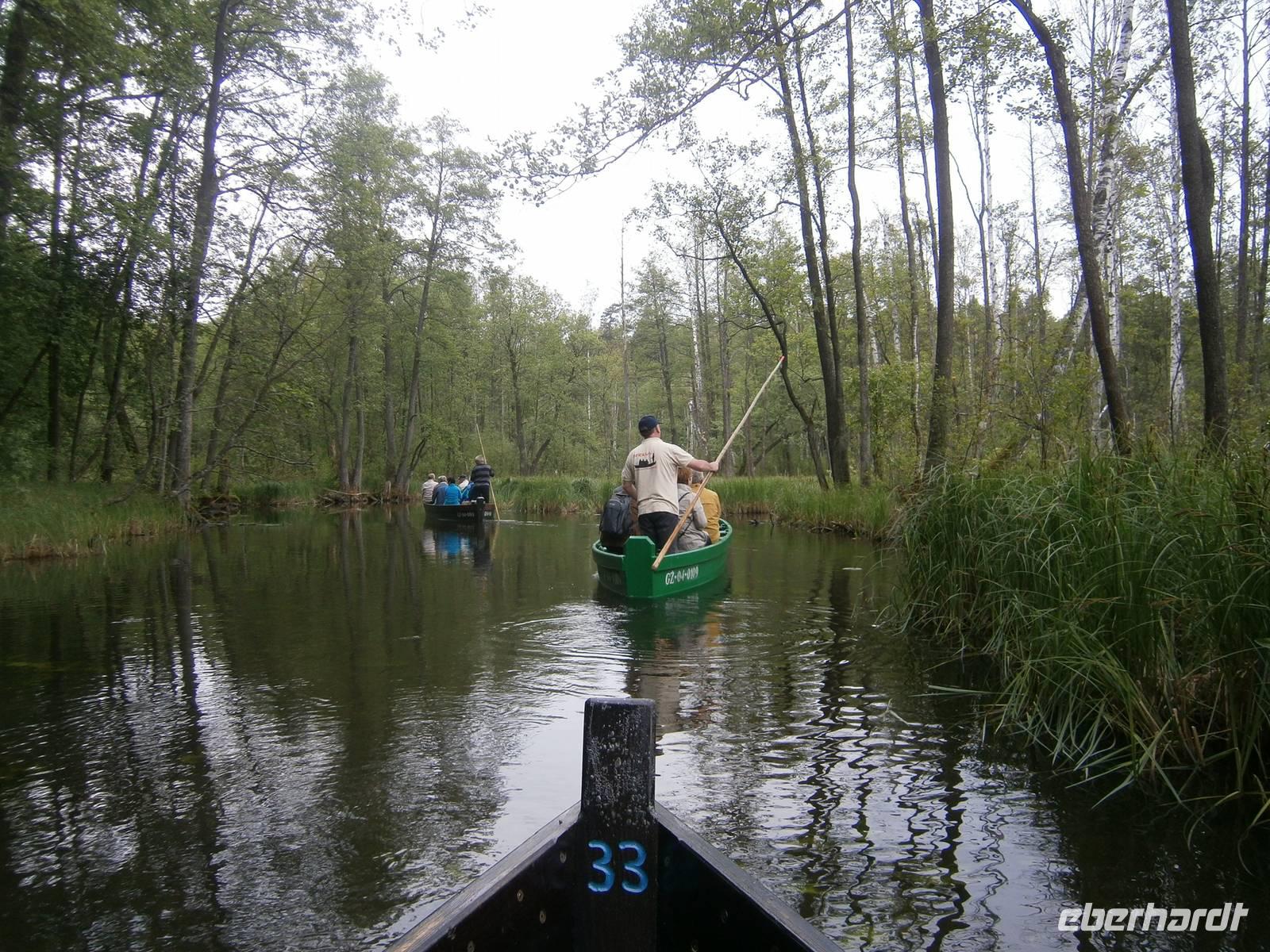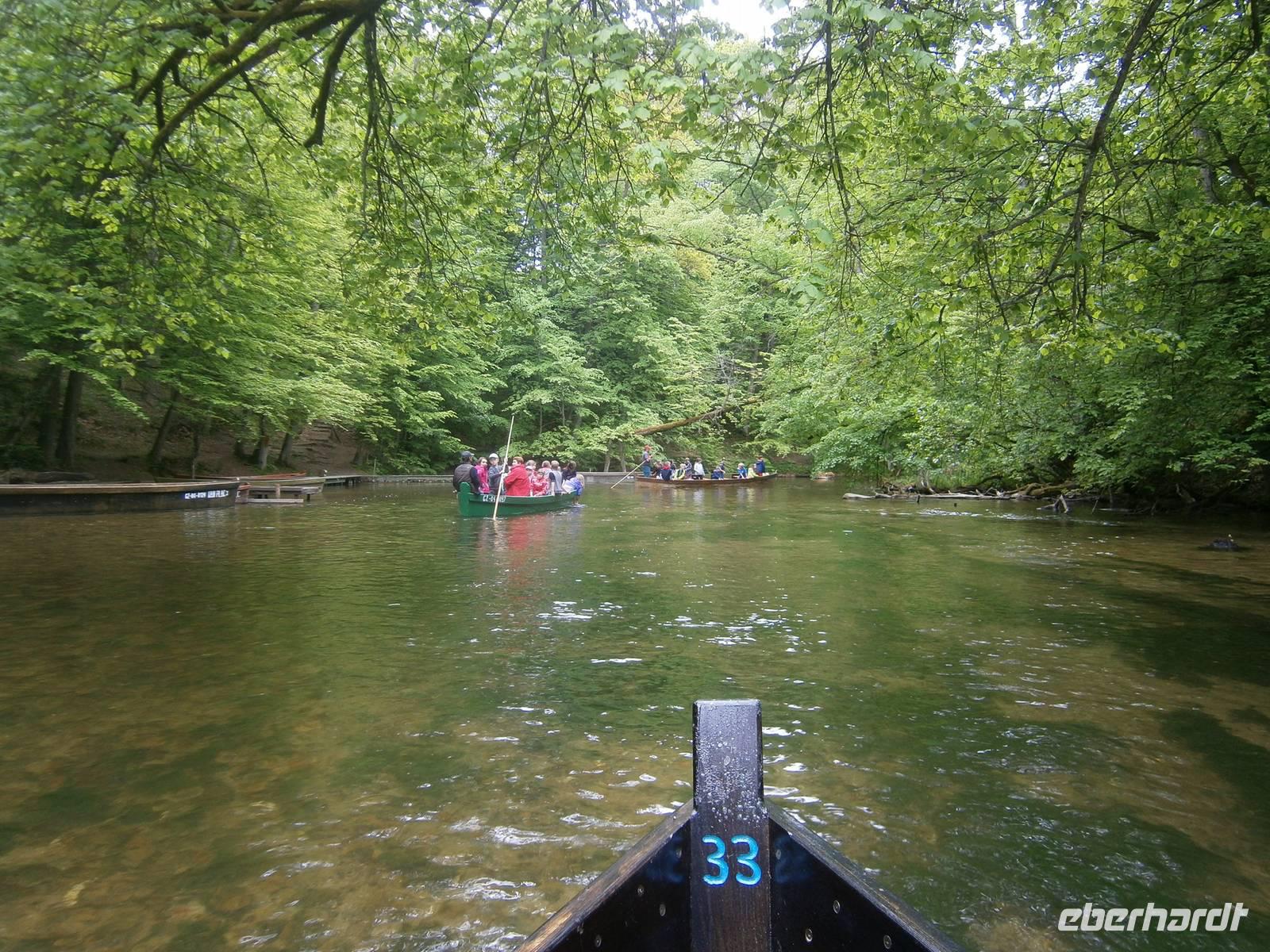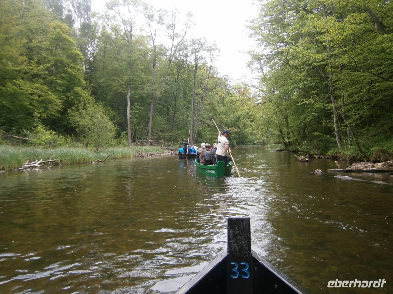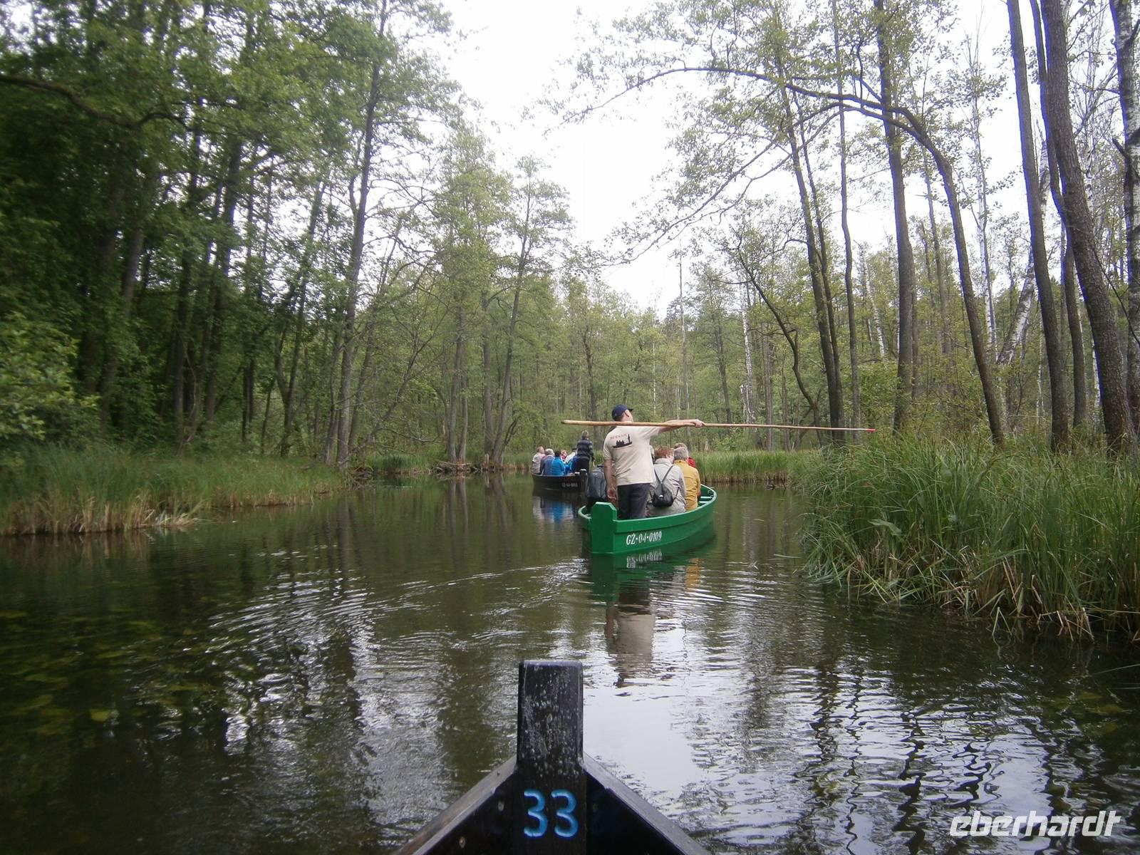 Der letzte Tag in dieser Region gehörte den südlichen Masuren. Zuerst besuchten wir in Kleinort das Geburtshaus des deutschen Schriftstellers Ernst Wiechert in der „Johannisburger Heide". Im Gedenkraum hörten wir mittels CD in deutscher Sprache Erklärungen zu seinem Leben und der Liebe zu seiner Heimat. Danach erreichten wir Krutynen, einen kleinen Ort an der Ktrutyna. Ein zünftiges Zanderessen in der Gaststätte „Mazuria" gehörte hier ebenso dazu, wie eine einstündige Staakenbootsfahrt auf dem 99 km langen Flüßchen Krutyna. Zuerst ging es durch unberührte Natur flußaufwärts anschließend mit der Strömung flussabwärts. Uns begegneten Kajakfahrer, Enten und ein Schwanenpaar mit sechs niedlichen Jungen. Im Wasser sahen wir zahlreiche Fische und „Blutsteine", zu denen uns Lukas die entsprechende Legende erzählte. Ein kleines Museum mit präparierten Tieren dieser Region und ein kleiner Markt rundeten den Besuch ab.
