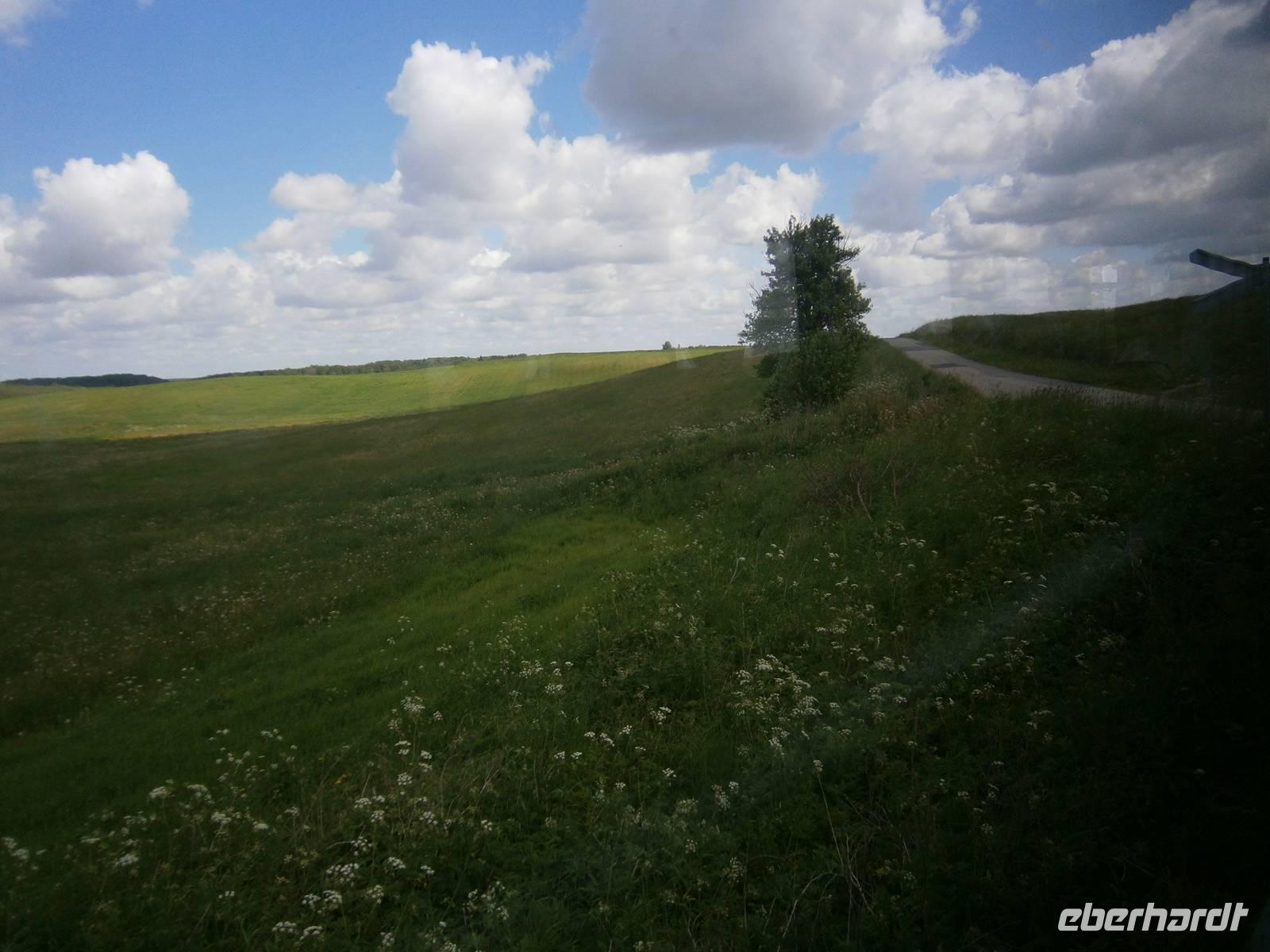 Bei all unseren Fahrten sahen die Mitglieder unserer Reisegruppe die wunderbare Landschaft dieser Region, die durch die letzte Eiszeit geschaffen wurde. Unzählige Seen begleiteten uns. Wellige Landschaften, kleine liebliche Dörfer, Gebiete, wo der Biber seine Spuren hinterlassen hat und viele Storchennester, die jetzt besetzt sind. Bei den Fahrten durch diese Gegend erzählte uns Lukas viel über seine Heimat und die Lebenssituation der Menschen im Land.