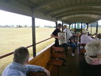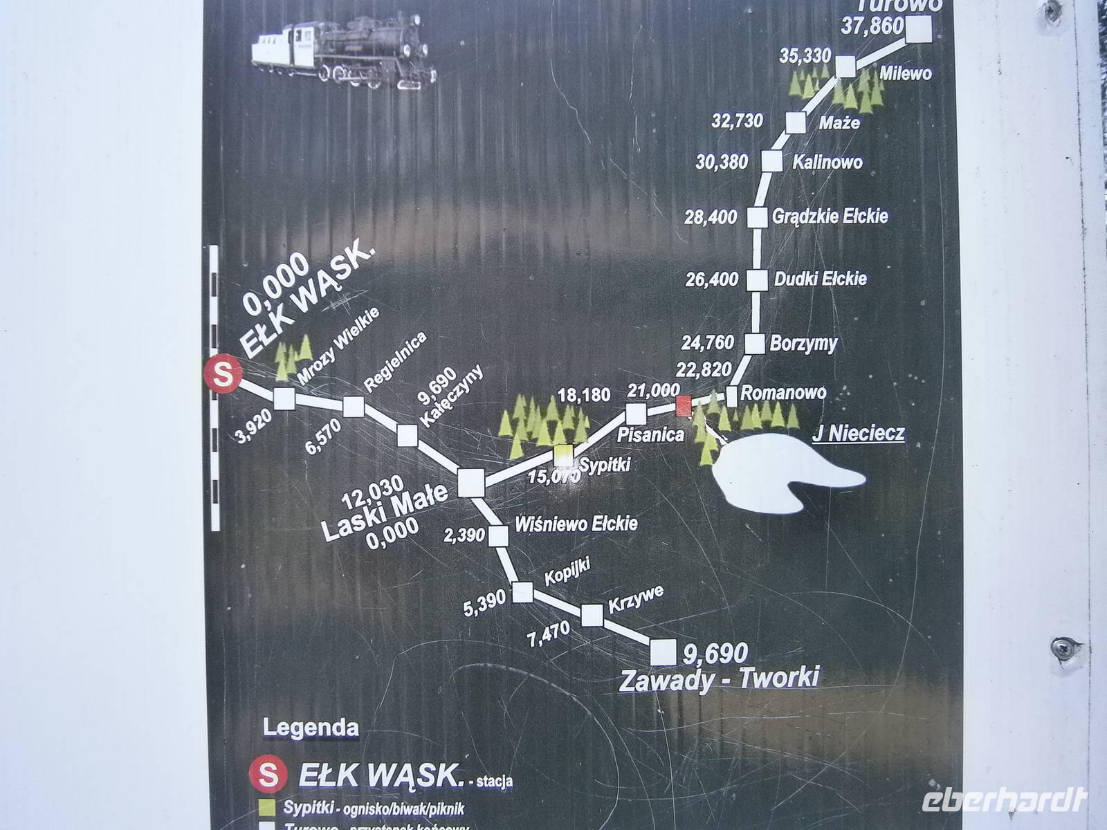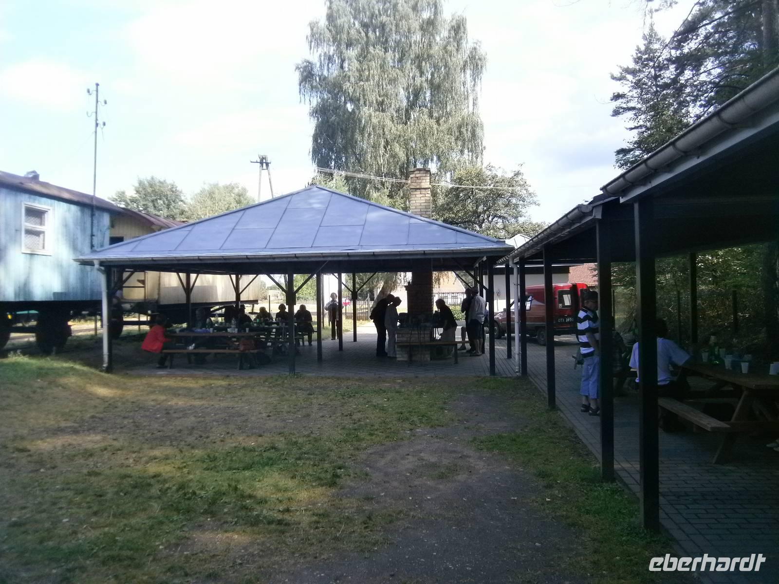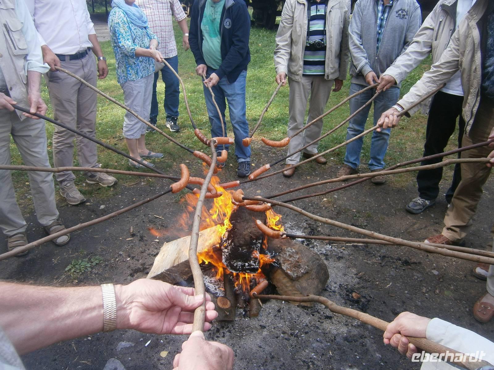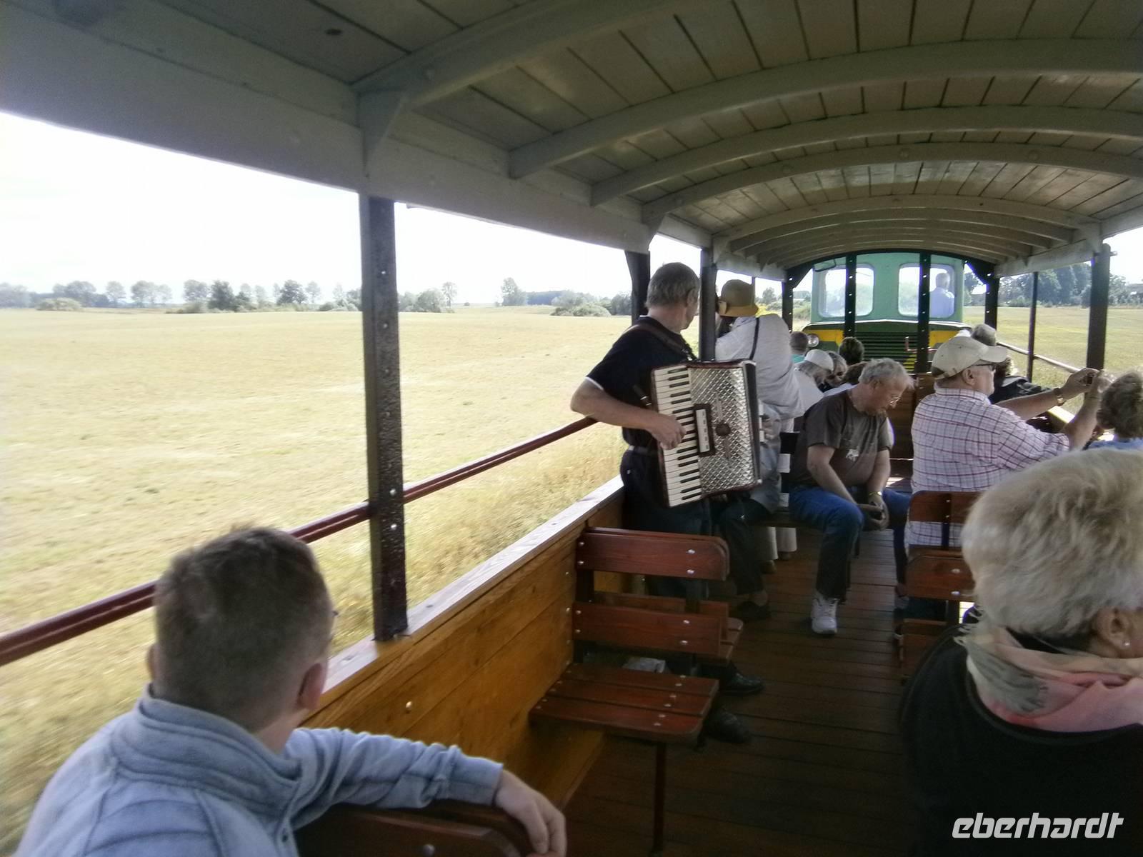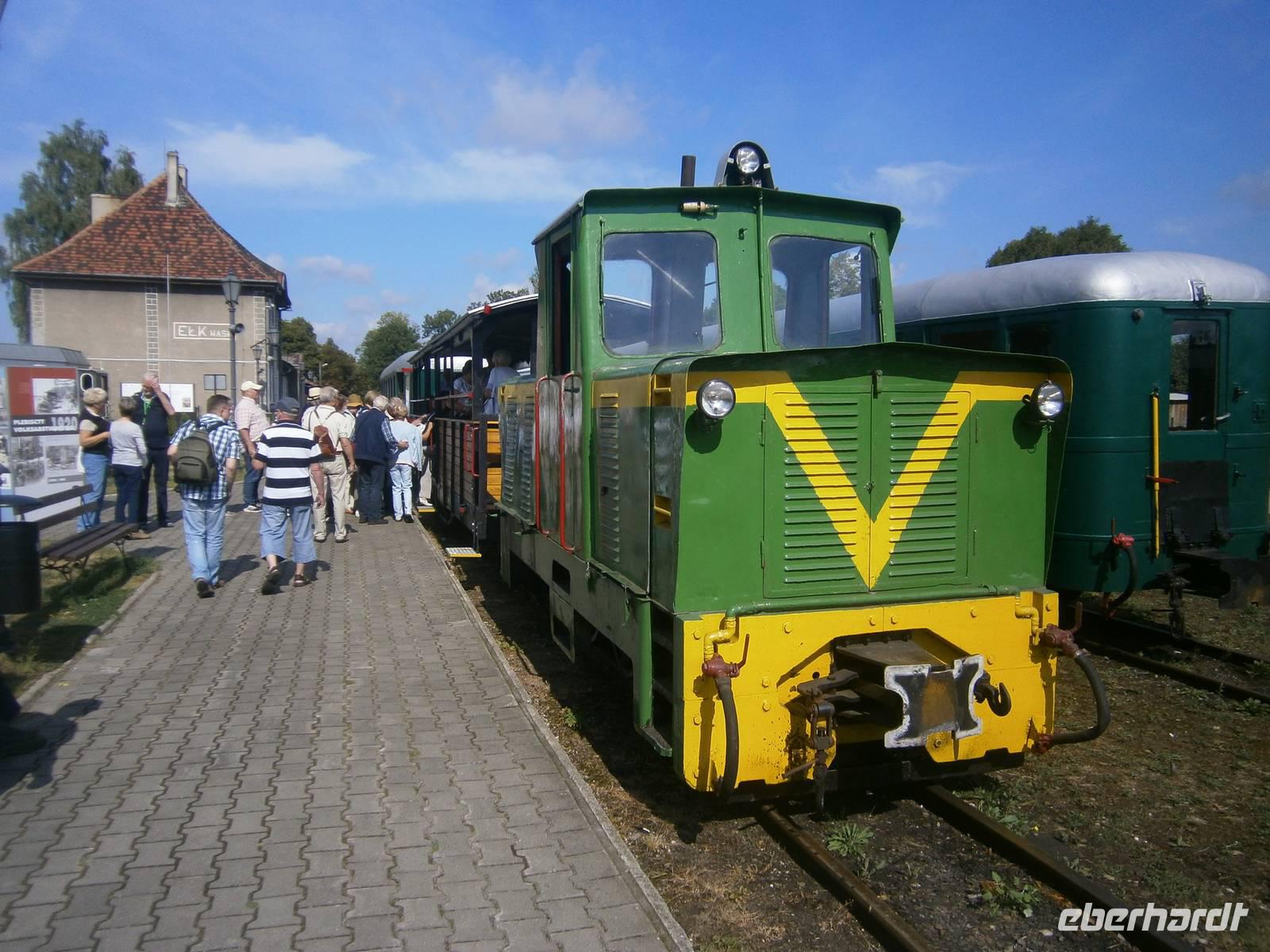 Der nächste Tag begann mit einer längeren Busfahrt nach Elk. Mit einem, von einer Diesellok gezogenen Zug, begaben wir uns auf eine Fahrt durch die sog. „Buckelmasuren" nach Sypitki, wo im Wald ein Picknick für uns vorbereitet war. Wir verspeisten das polnische Nationalgericht Bigos und jeder Gast bereitete sich am Lagerfeuer eine leckere Wurst zu. Dazu gab es Bier, Wodka, alkoholfreie Getränke und Kaffee. Nach der Rückkehr nach Elk besichtigte unsere Gruppe noch das kleine Eisenbahnmuseum im ehemaligen Lokschuppen und die neu eingerichtete Galerie im ehemaligen Bahnhofsgebäude.
