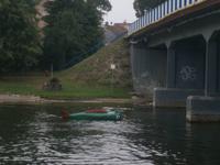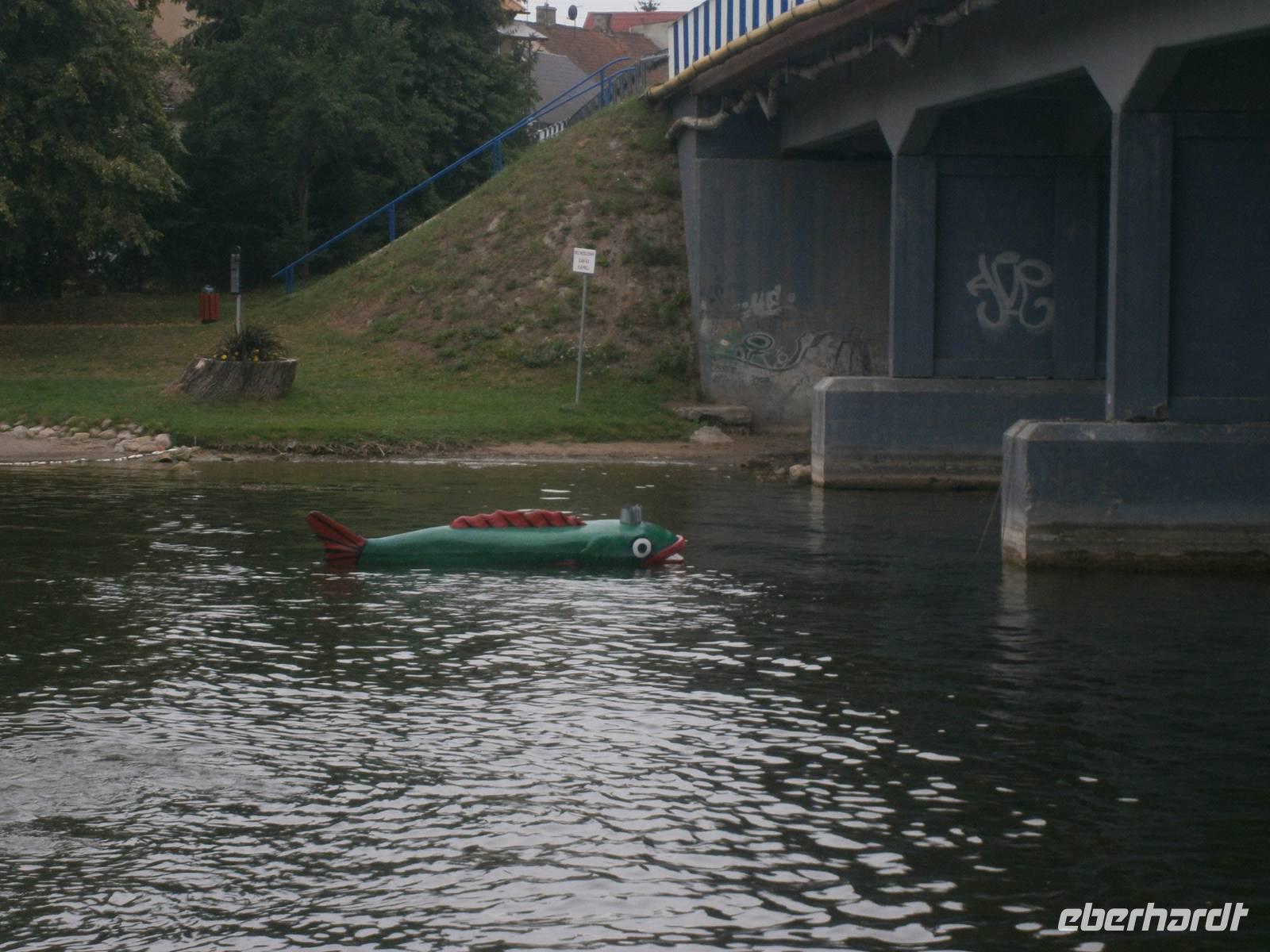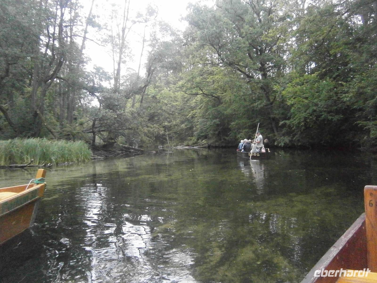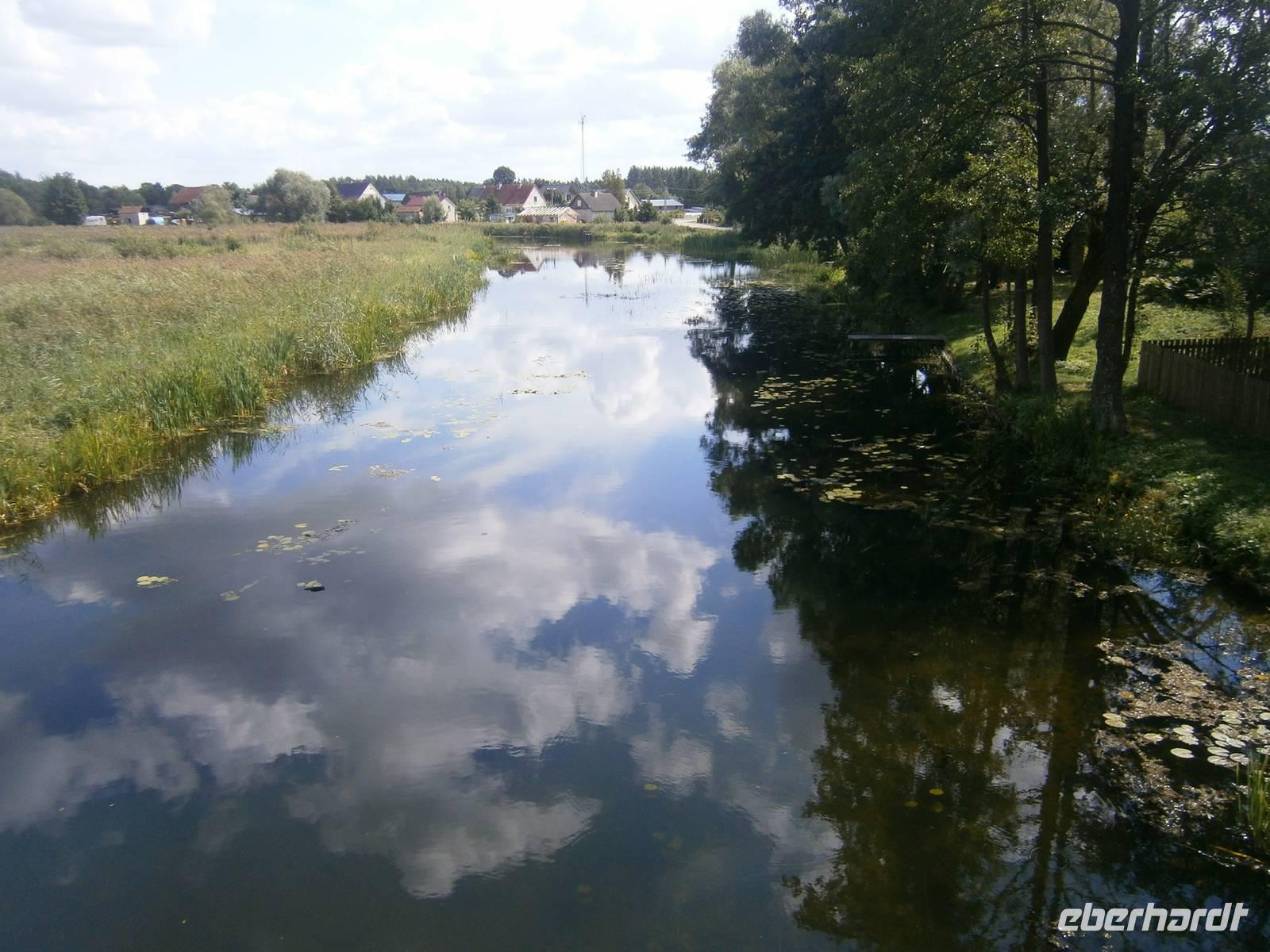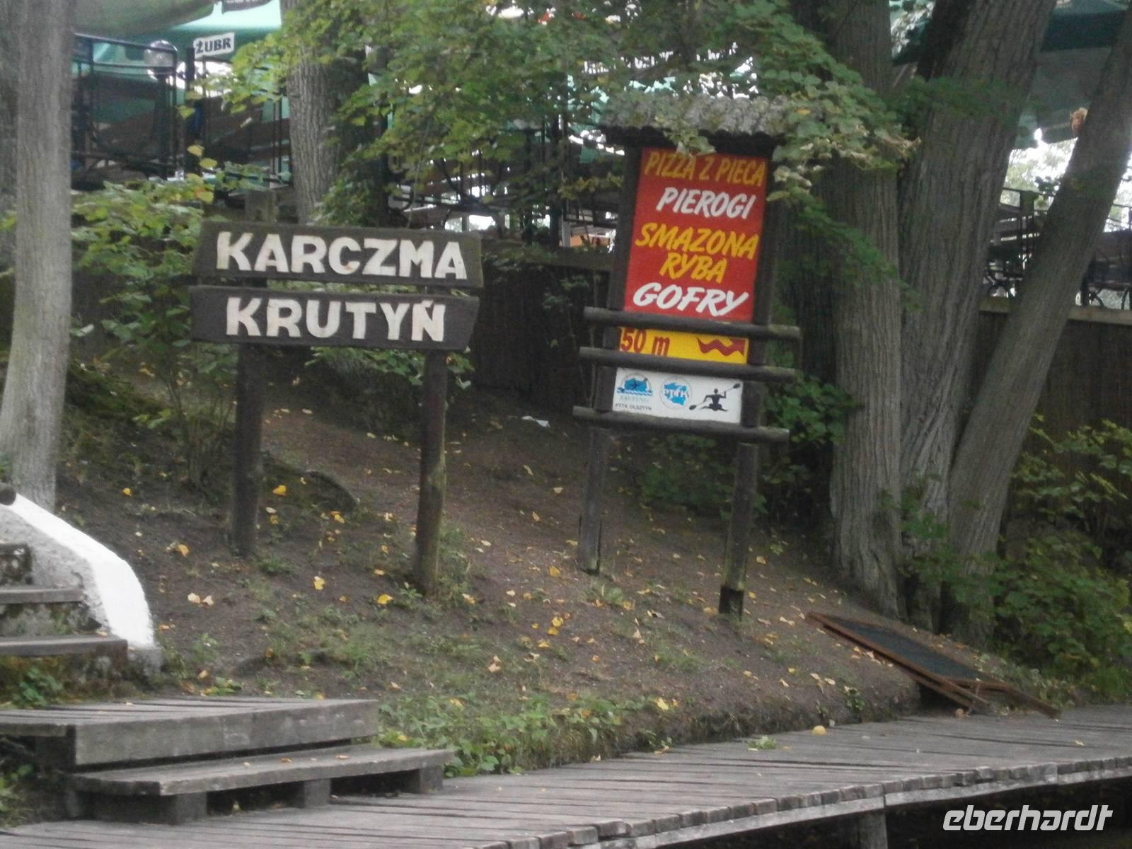 Gut gestärkt fuhren wir in die „Johannesburger Heide", nach Krutynen, einen kleinen Ort an der Krutyna. Hier erfolgte eine Staakenbootsfahrt auf dem insgesamt 99 km langen Flüßchen. Zuerst ging es durch unberührte Natur flußaufwärts anschließend mit der Strömung flussabwärts. Uns begegneten Kajakfahrer, Enten und im Wasser sahen wir zahlreiche Fische und sog. „Blutsteine".