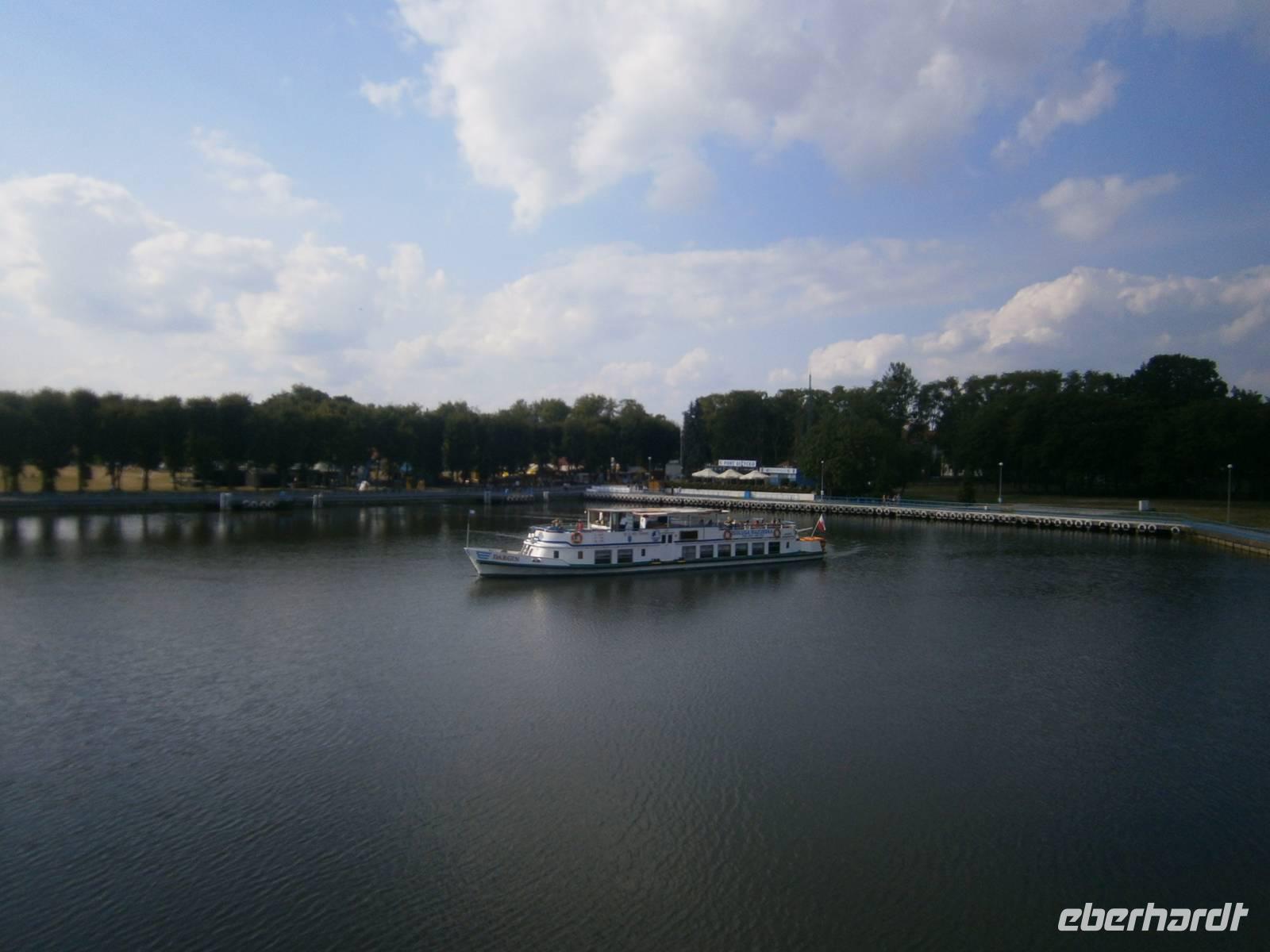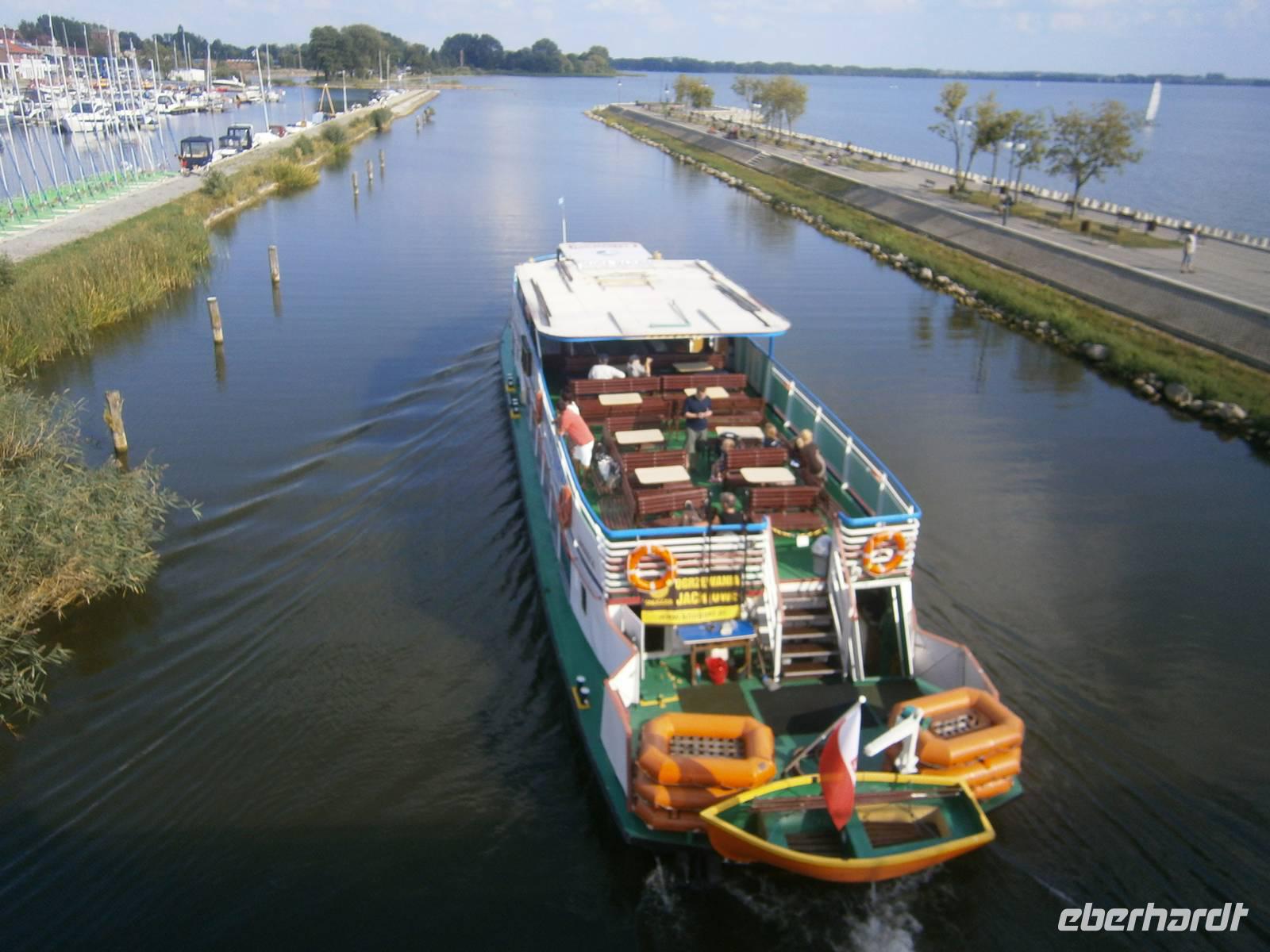 Der letzte Tag in dieser Region begann etwas zeitiger. Wir fuhren nach Mikolajki, dem „Venedig des Nordens". Wir bestiegen ein Motorschiff und schipperten über den Mikolajkener See zum Spirdingsee, dem größten der Masurischen Seen, und wieder zurück.