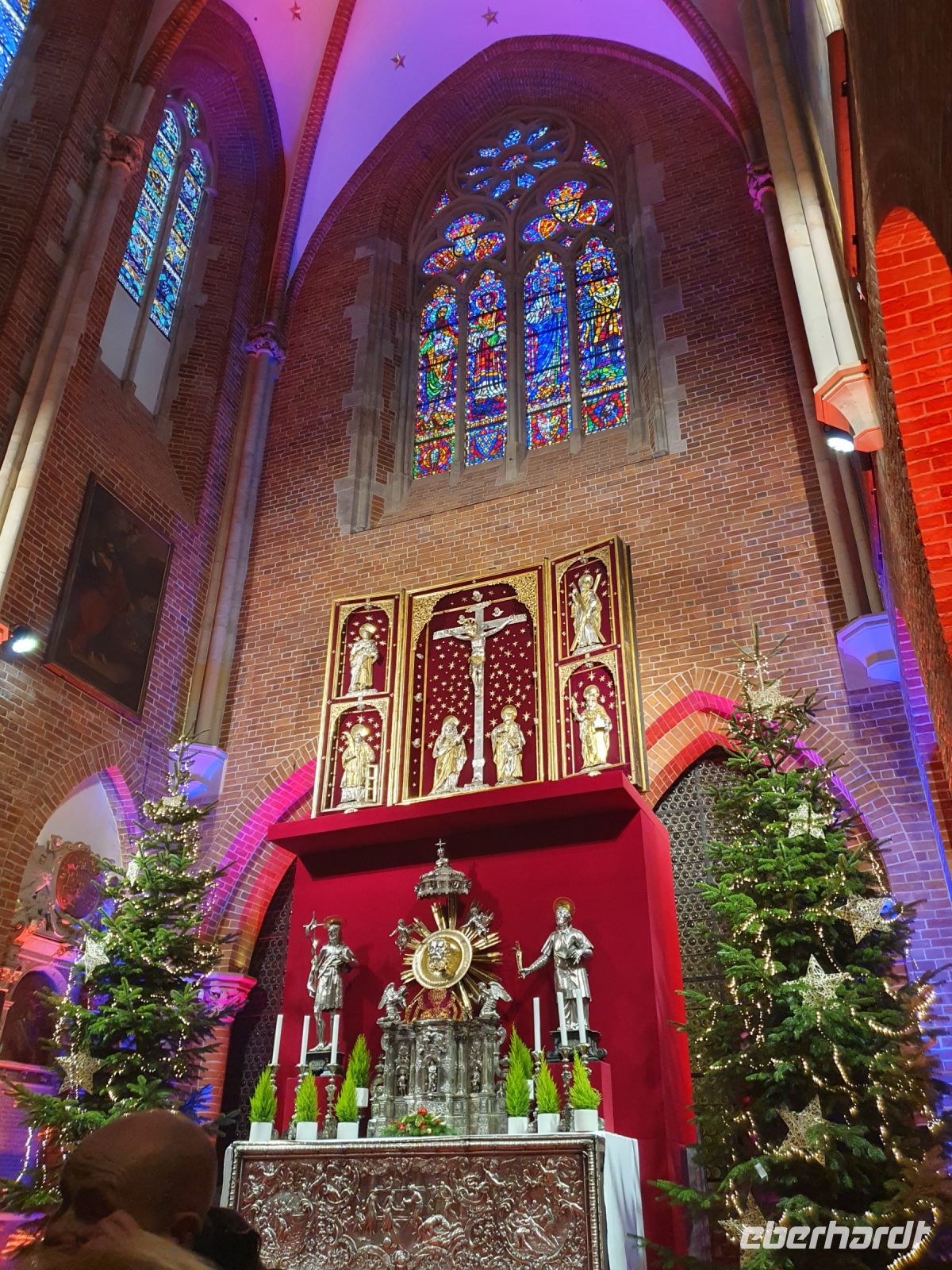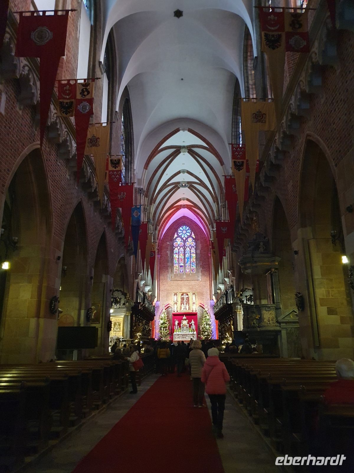 Anschließend fuhren wir auf die Dominsel. Nur hier findet sich noch die Berufsgruppe der „Laternenanzünder". Jeden Abend werden die Laternen auf der Insel per Hand angezündet und in der Morgendämmerung wieder ausgemacht. Auch Autos sucht man auf der Dominsel vergeblich. Mittelpunkt der Dominseln ist der Dom, der sofort an seinen beiden Türmen zu erkennen ist. Im zweiten Weltkrieg wurden der Dom stark zerstört. Die beiden Türme mit einer Höhe von 91 Metern waren erst im Jahr 1991 erst vollständig wiederhergestellt.