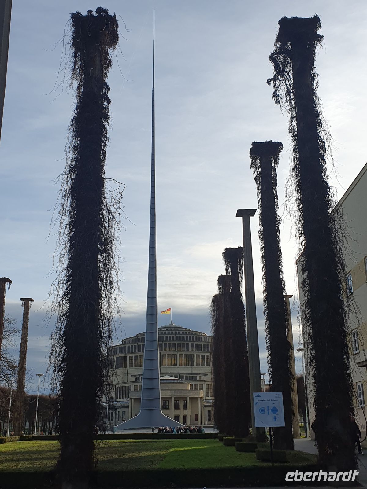 Unser erster Halt war die Jahrhunderthalle, die sich genau gegenüber dem Breslauer Zoo befindet. Bei der Jahrhunderthalle handelt es sich um das einzige Gebäude Breslaus, das als UNESCO Weltkulturerbe eingetragen ist. Die imposante Halle wurde 1913 für die Jahrhundertfeier zur Erinnerung an den Breslauer Aufruf des preußischen Königs Friedrich Wilhelm III in einer Rekordzeit von nur zwei Jahren aus Stahlbeton erbaut. Die Pläne des Baumeisters und Breslauer Stadtbaumeisters - Max Berg - sorgten damals für viel Furore. Die freitragende Kuppel erreicht eine Spannweite von 65 Metern. Darek erklärte uns, dass beim Bau dieser Kuppel sogar berücksichtig wurde, dass Beton sich ausdehnt und sie deswegen unter Rollen erbaut wurde. Vor der Jahrhunderthalle ragt die hundert Meter hohe Stahlkonstruktion „Iglica“ – zu deutsch die Nadel – in die Höhe.