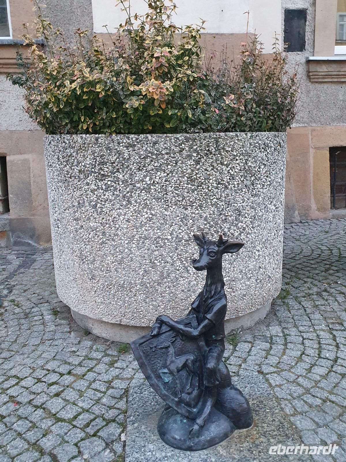 An mehreren Stellen des Marktplatzes findet sich natürlich auch der Hirsch vom Stadtwappen- selbst vor dem beleuchteten Tannebaum im Zentrum des Platzes.