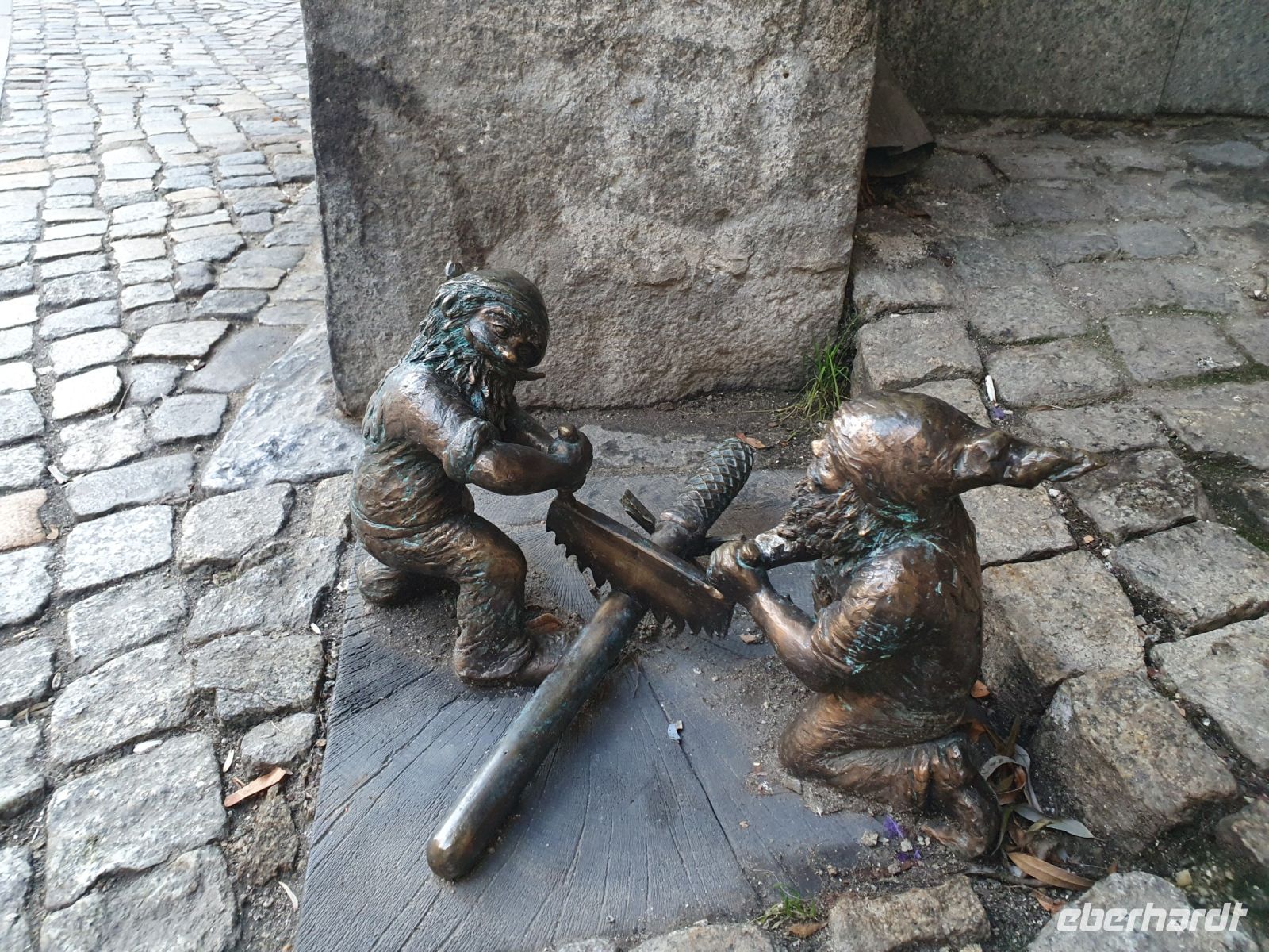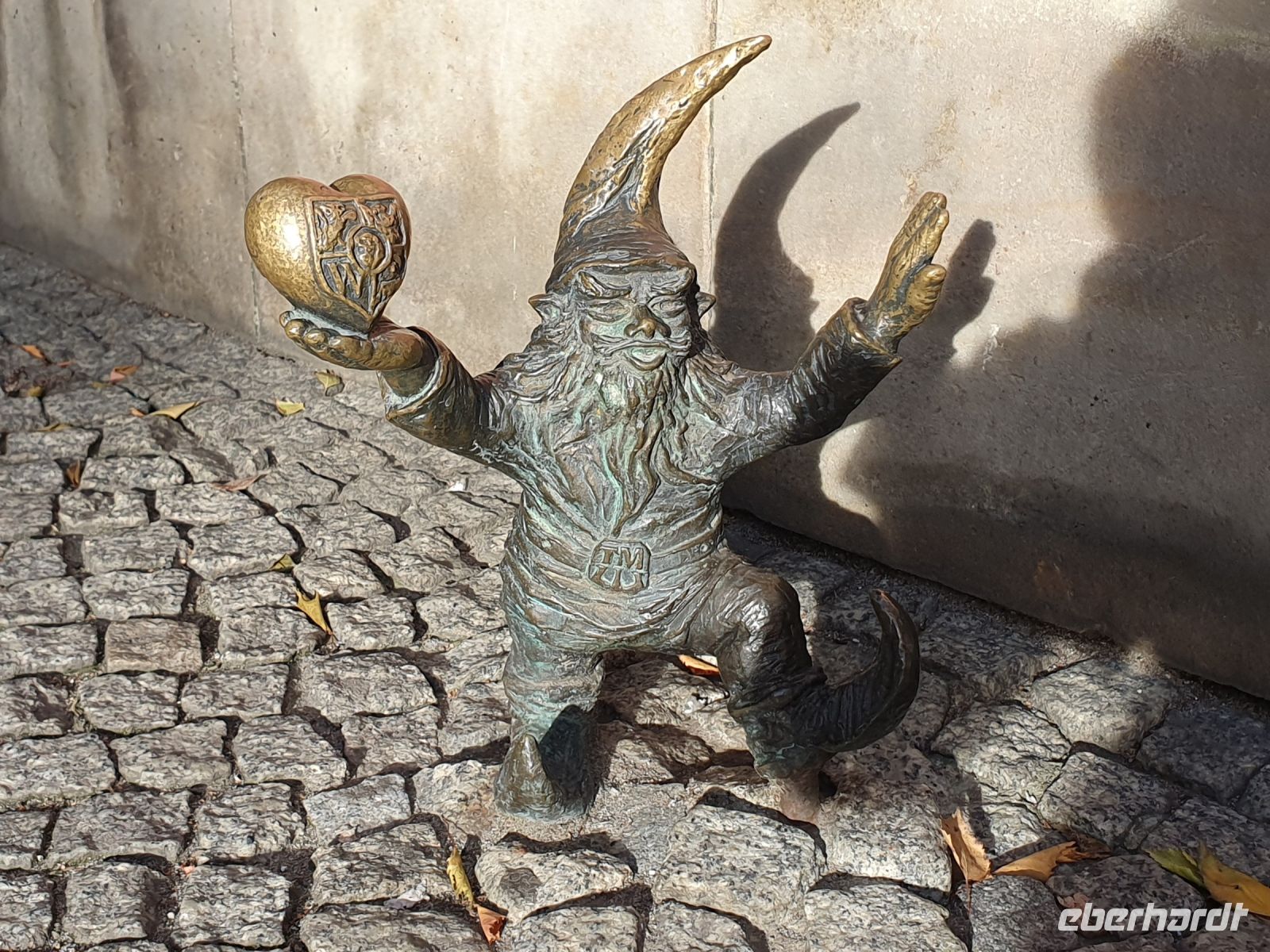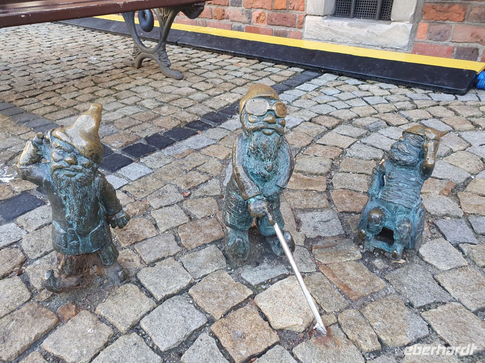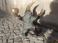 Während des Spaziergangs, fällt unser Blick immer wieder auf die Erde, wo sich die kleinsten Mitbewohner Breslaus verstecken – die Zwerge.