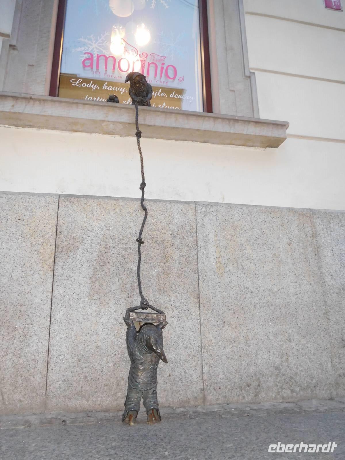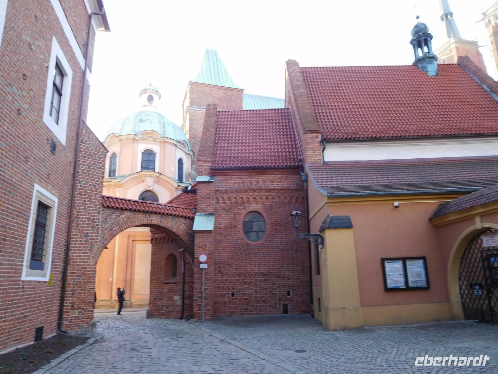 Ein wissenswerter Spaziergang über den Marktplatz folgte, bevor wir zum Mittagessen aufbrachen. In einem Durchgang hinter dem Plac Solny war unsere konspirative Gaststätte. Scheinbar hatten sie keinen Platz für uns - aber ich kannte schon den Trick. Meine Gäste stiegen durch den Schrank in der Wand und fanden sich in einem Hinterzimmer wieder, das vor Geschichte nur so strotzte. Pierogi, Zurek und Gulasz, typisch polnische Gerichte, ließen wir uns hier schmecken.