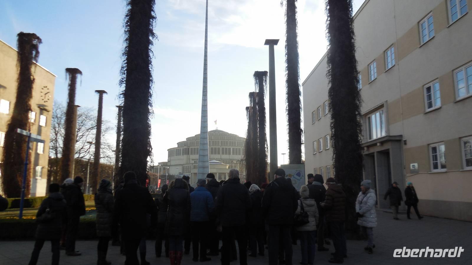 Der Tag beginnt schon früh am Morgen. Nach einem reichhaltigen Frühstück sind wir alle gestärkt für den zweiten Teil der Stadtführung. Krystian holt uns pünktlich im Hotel ab und auf geht's. Zuerst per Bus später zu Fuß. Wir fahren mit dem Bus zum ersten großen Highlight - der Jahrhunderthalle. Auf dem Weg dahin halten wir nochmal kurz am Panorama von Raclawice, da ein paar Gäste den Wunsch äußerten während der Freizeit dem Panorama von Raclawice einen Besuch abzustatten. Leider wurde dieser Wunsch aber nicht erfüllt, da es dort keine guten Öffnungszeiten mehr an diesem Tag im letzten Jahr gab. Wieder ein Grund nach Breslau zu kommen und es gibt noch zig andere Gründe dieser wunderschönen Stadt einen Besuch abzustatten.