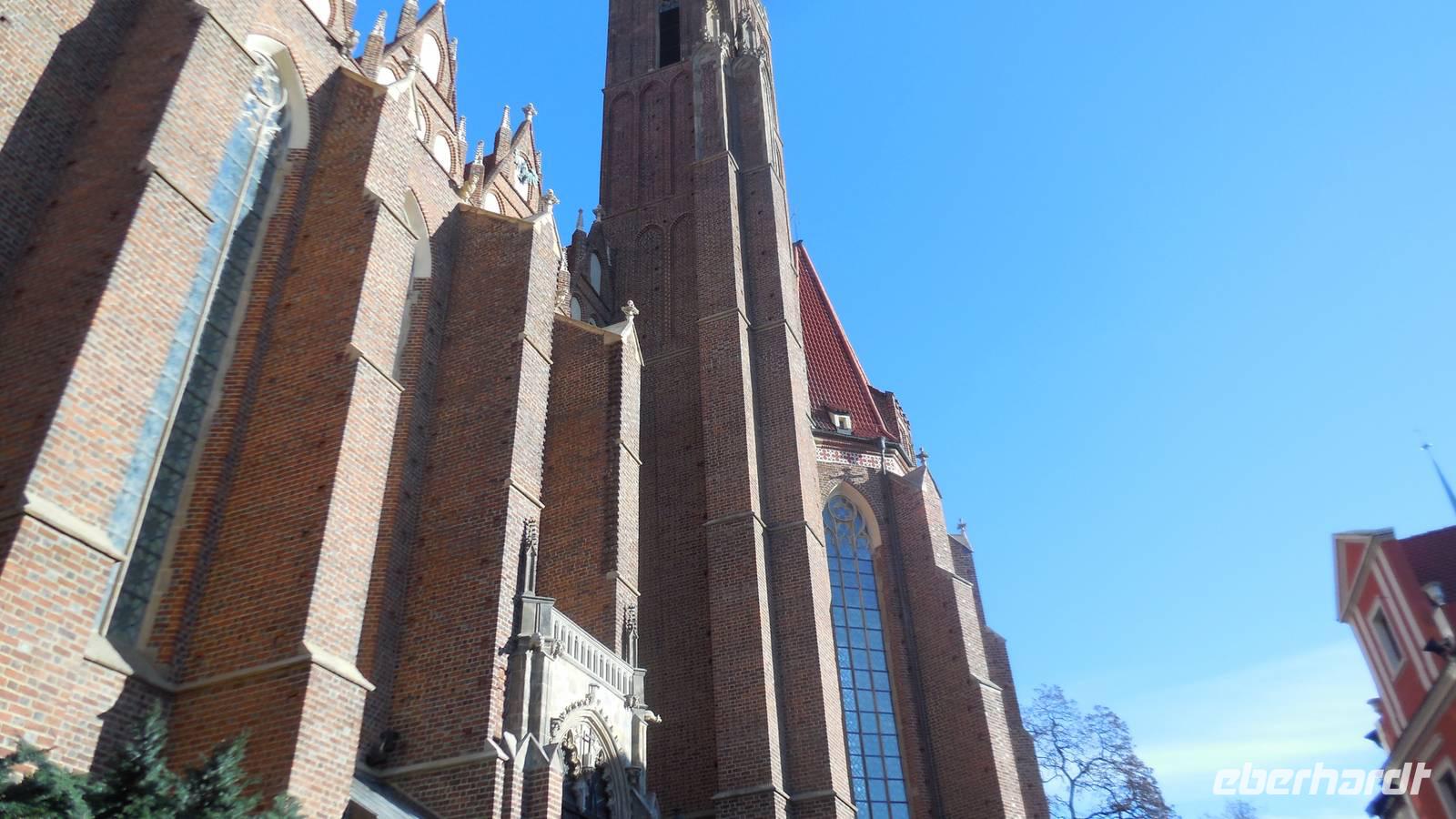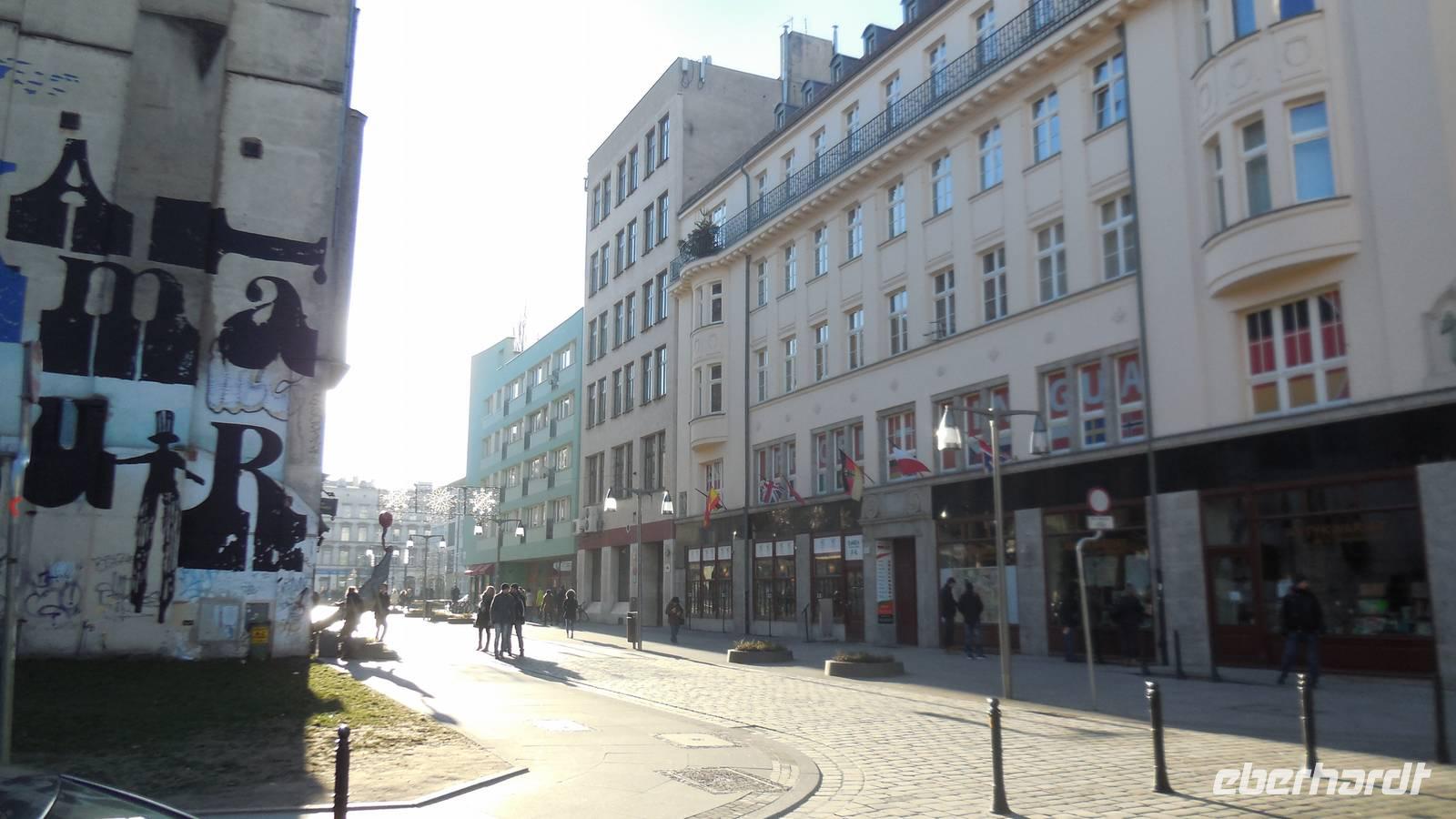 Weiter geht es mit dem Bus durch die Stadt. Wir sehen auch heute wieder alte, kunstvolle Gebäude gepaart mit Moderne. Breslau wirkt wie ein Theater, das ständig sein Bühnenbild ändert.